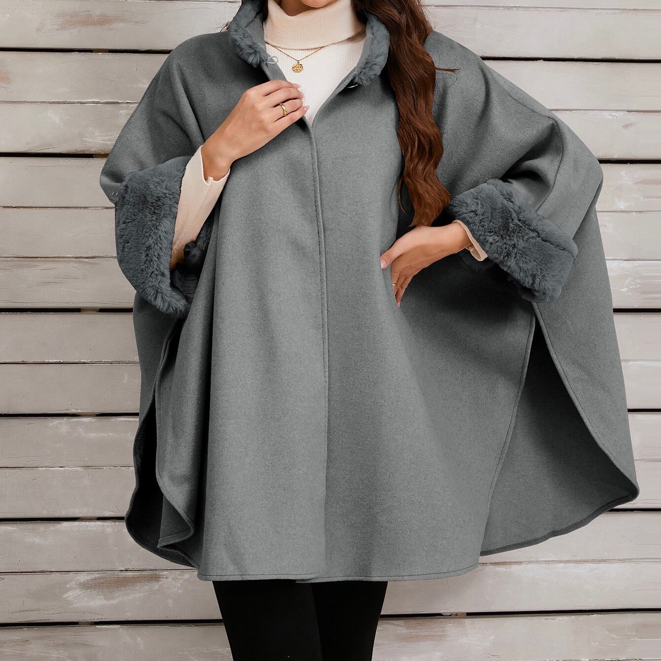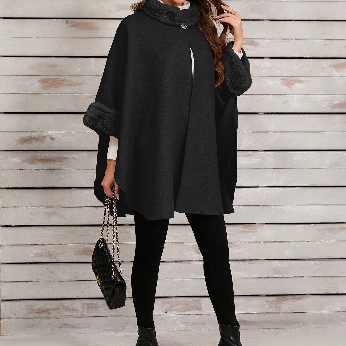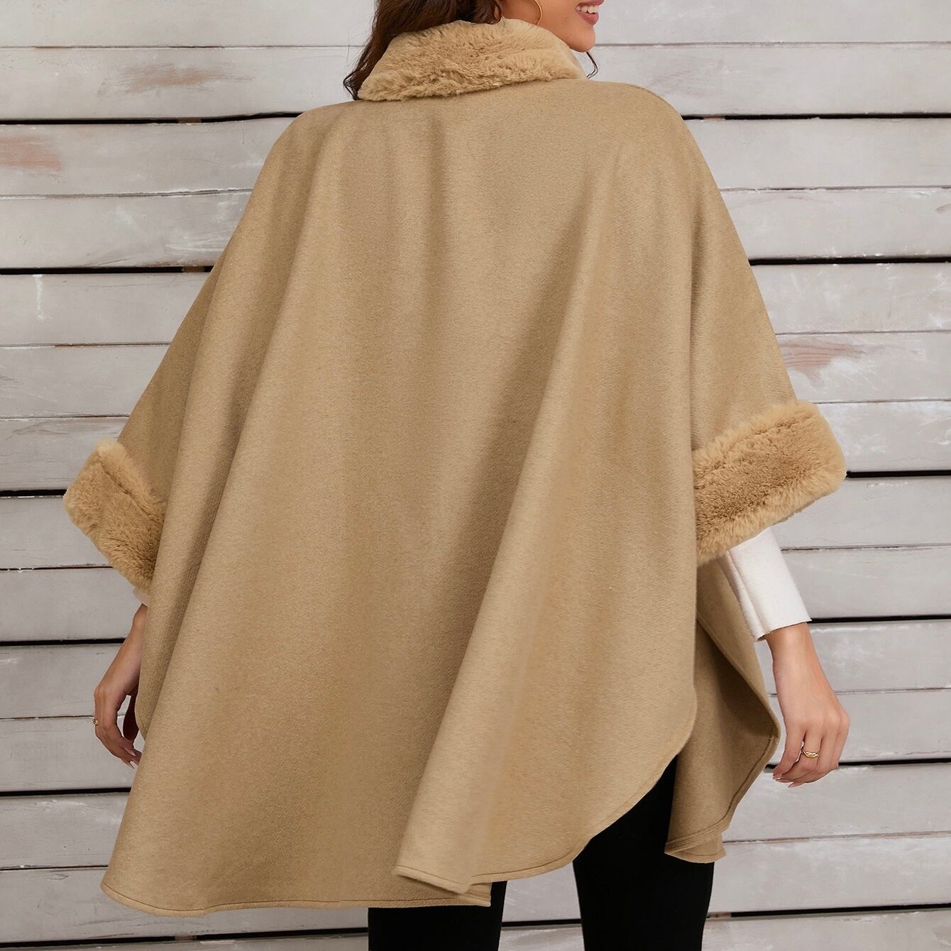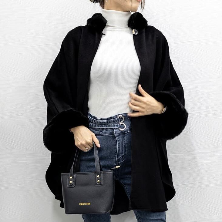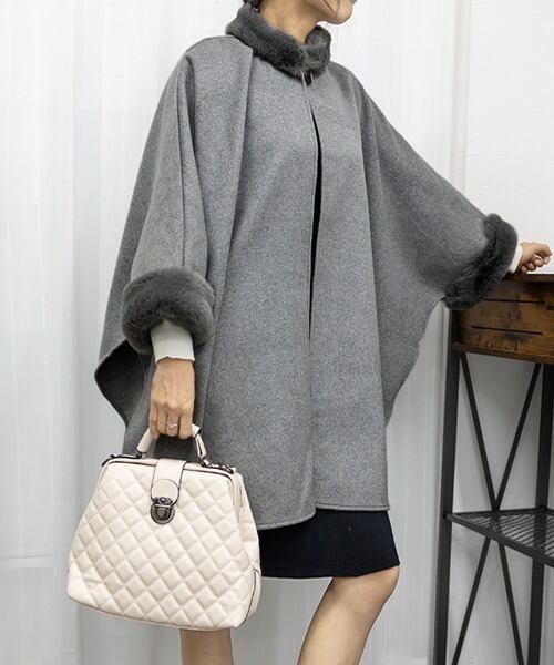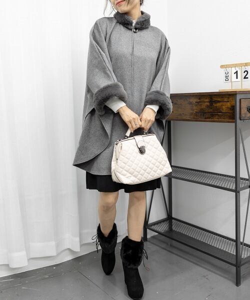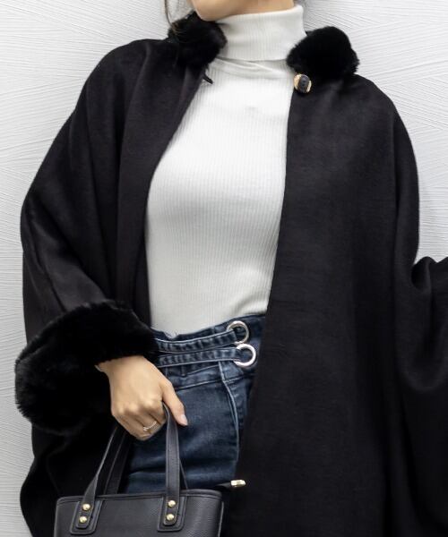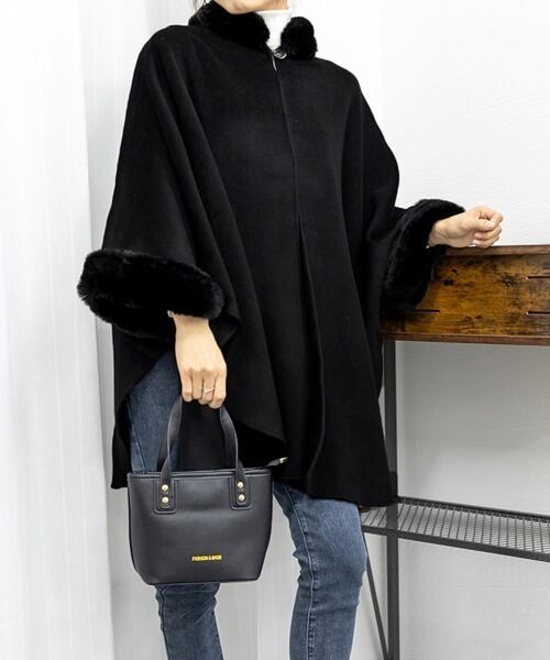 【outer】ファーポンチョコート3色 FQ0001