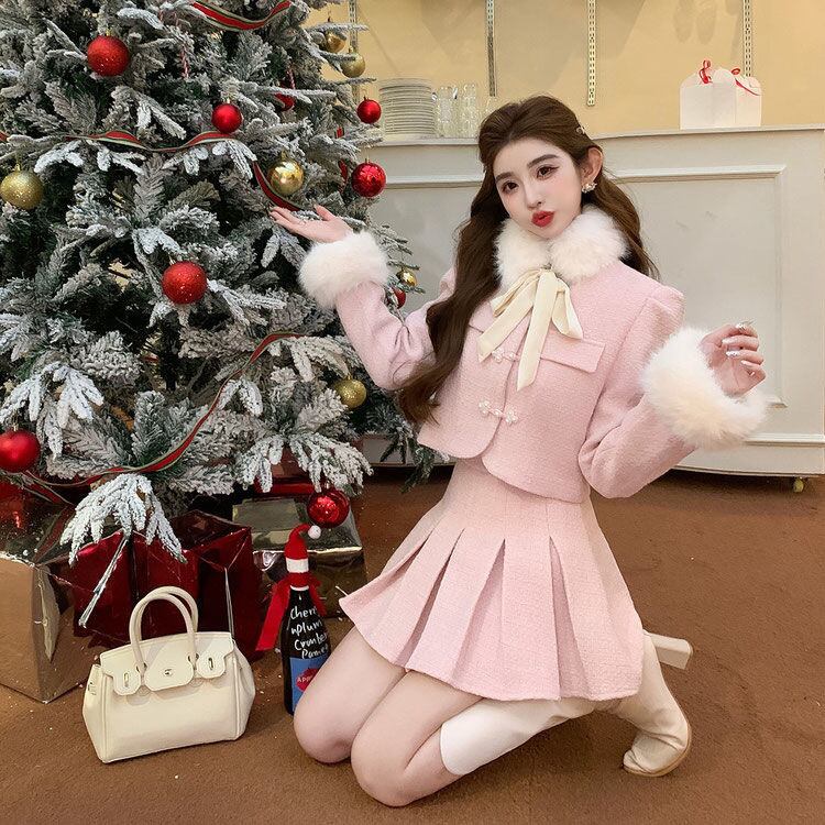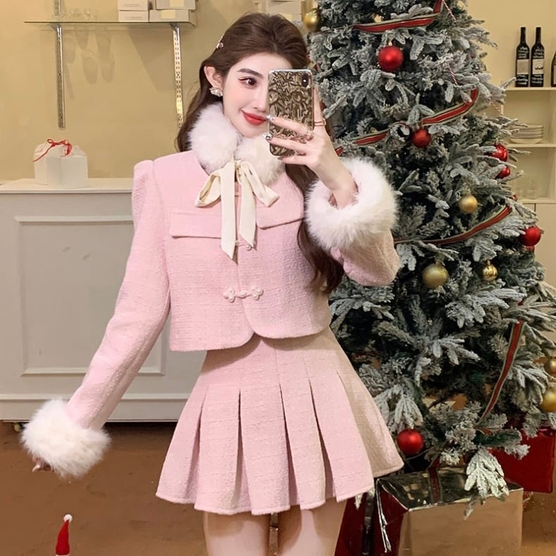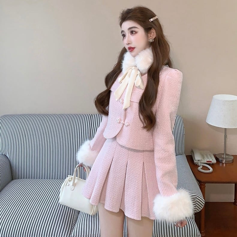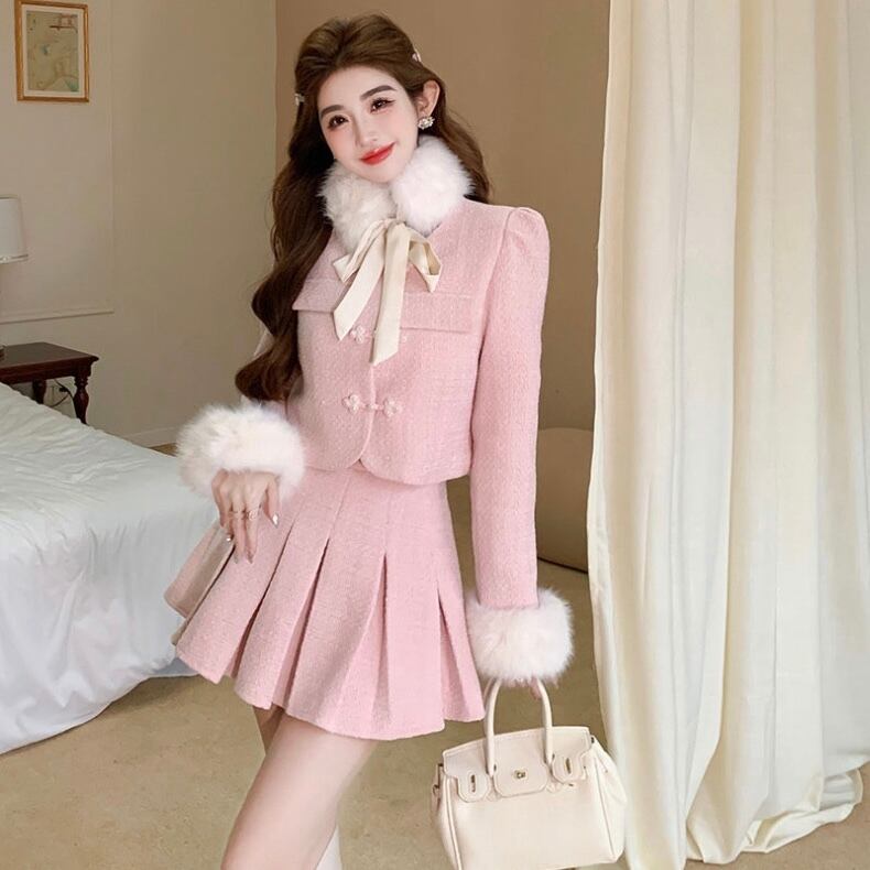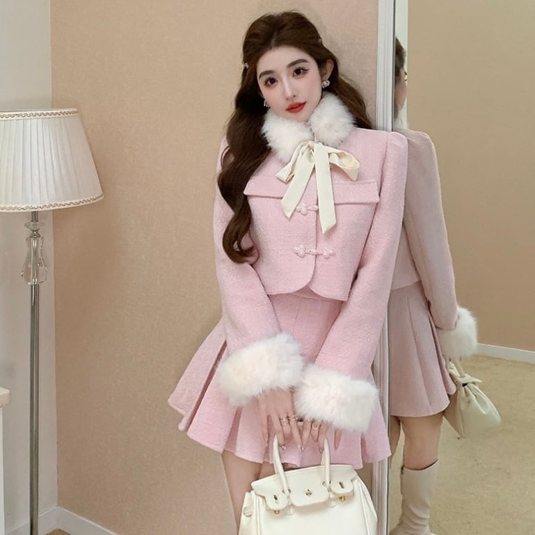 【set】ツイードファージャケットxミニスカート2色 SY11102