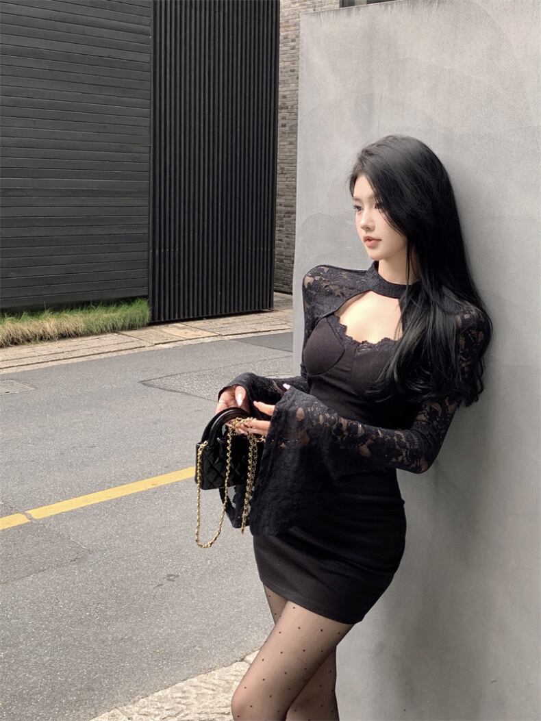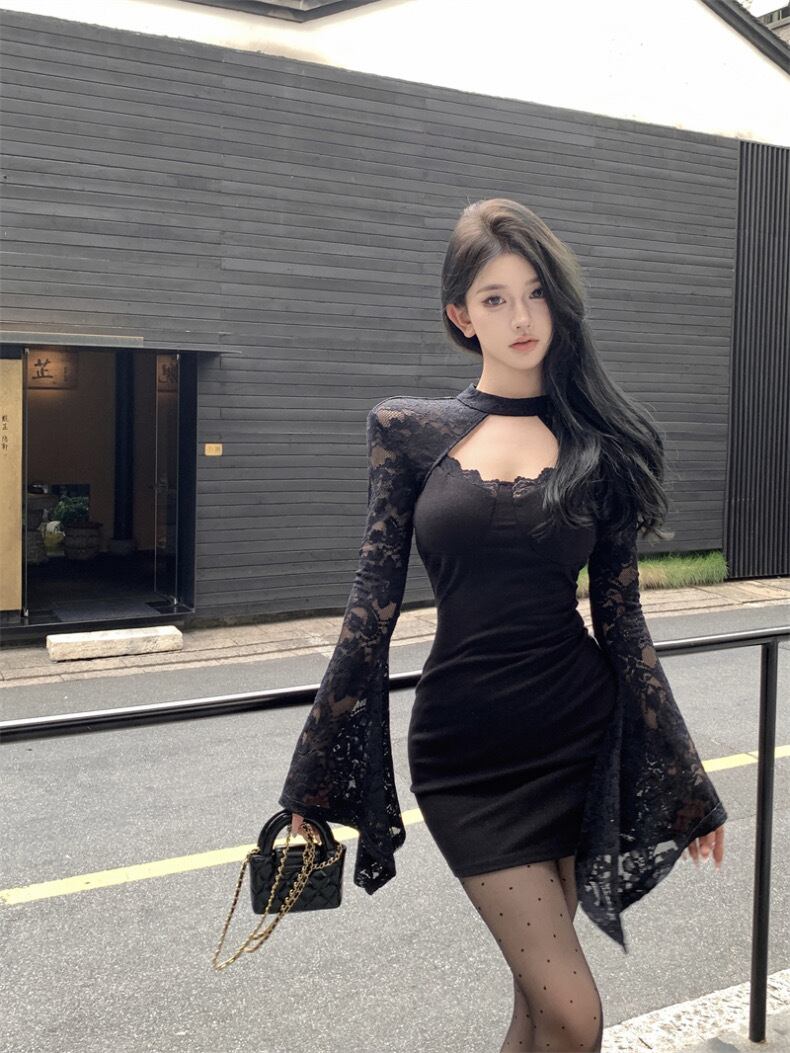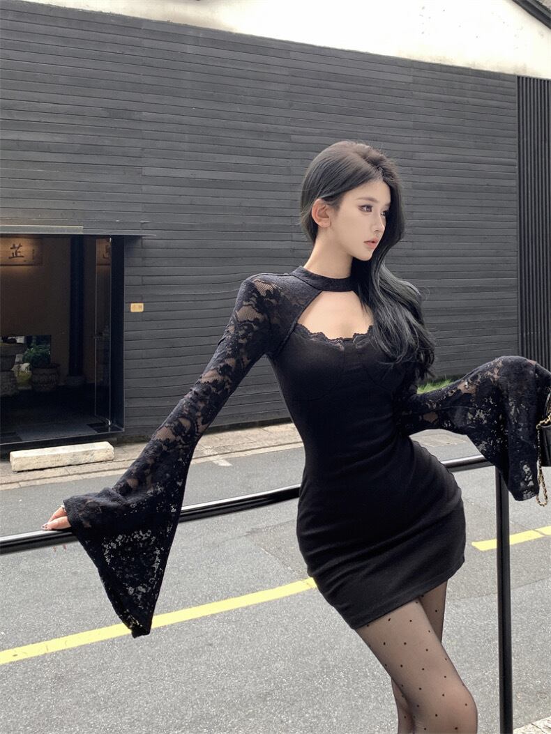 【dress】バックデザインフレアスリーブレースワンピース SY11110