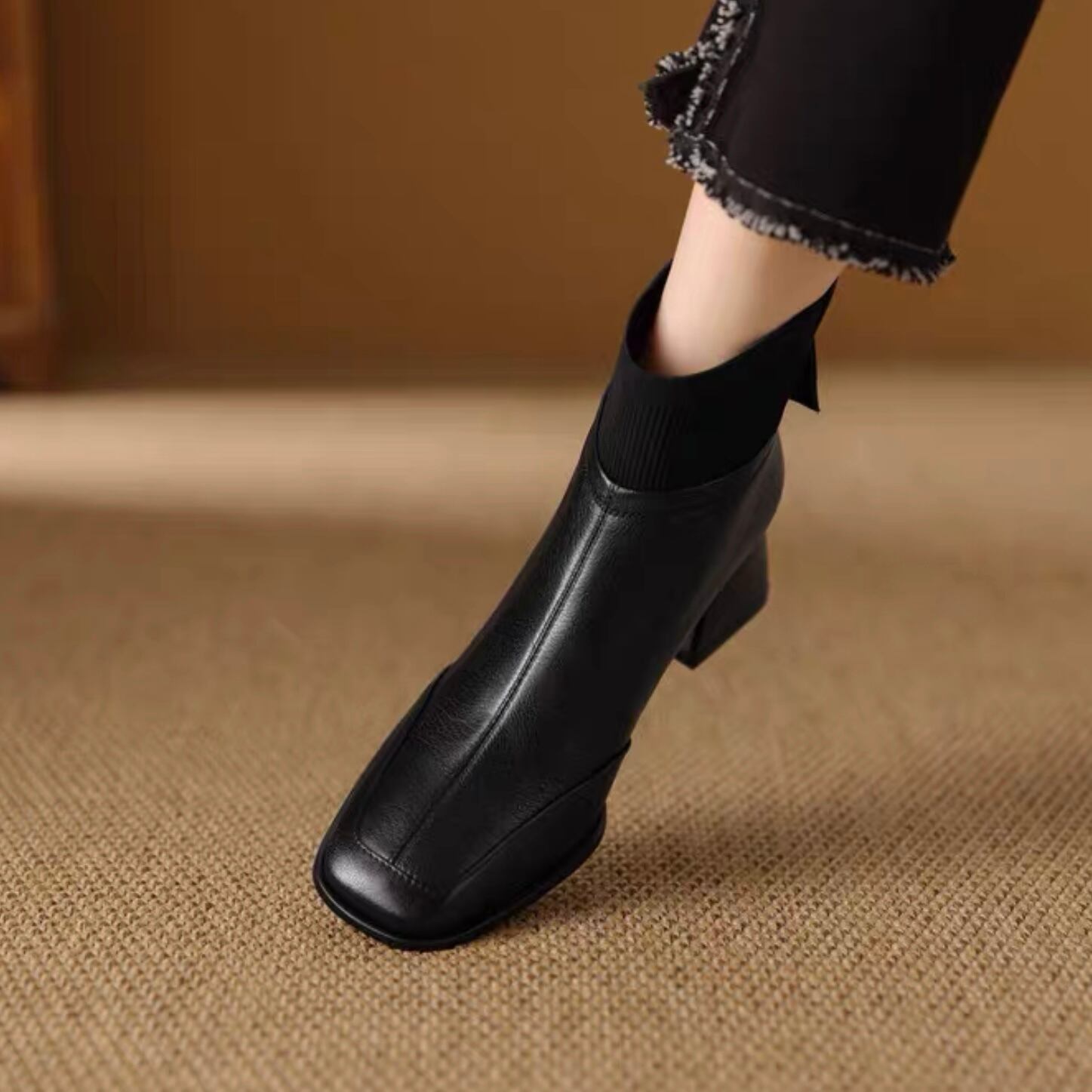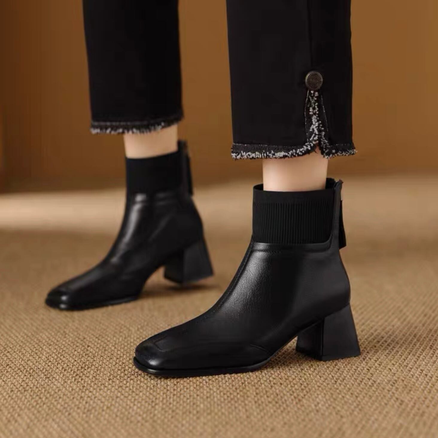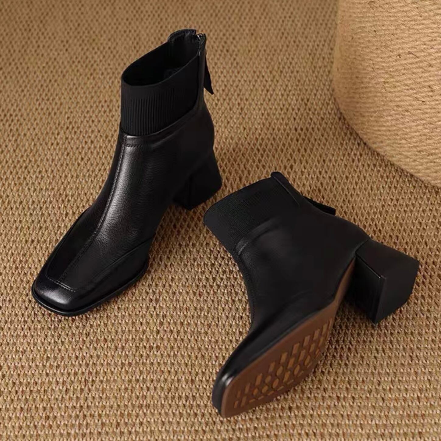 【shoes】リブ切り替えショートブーツ2色 YR0104