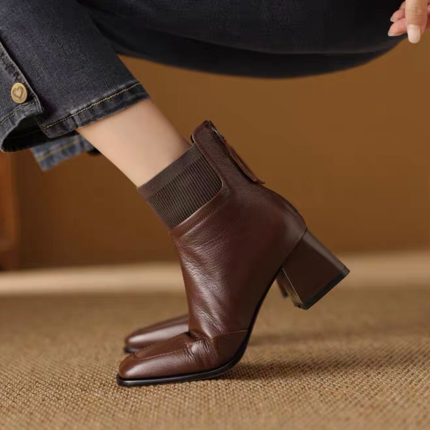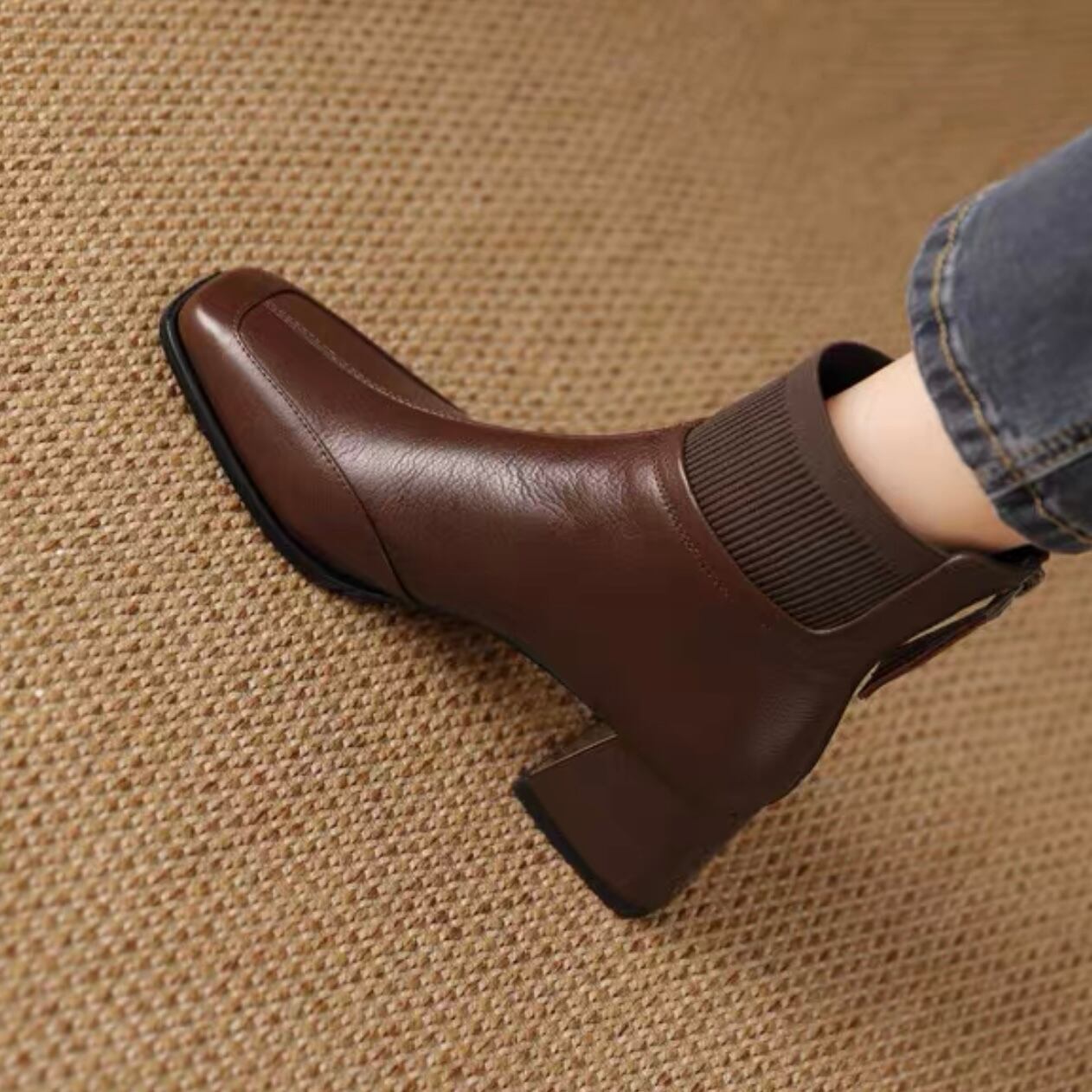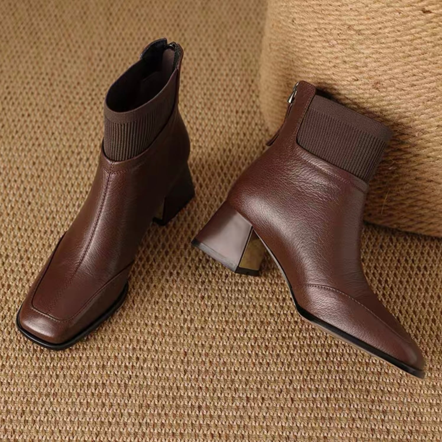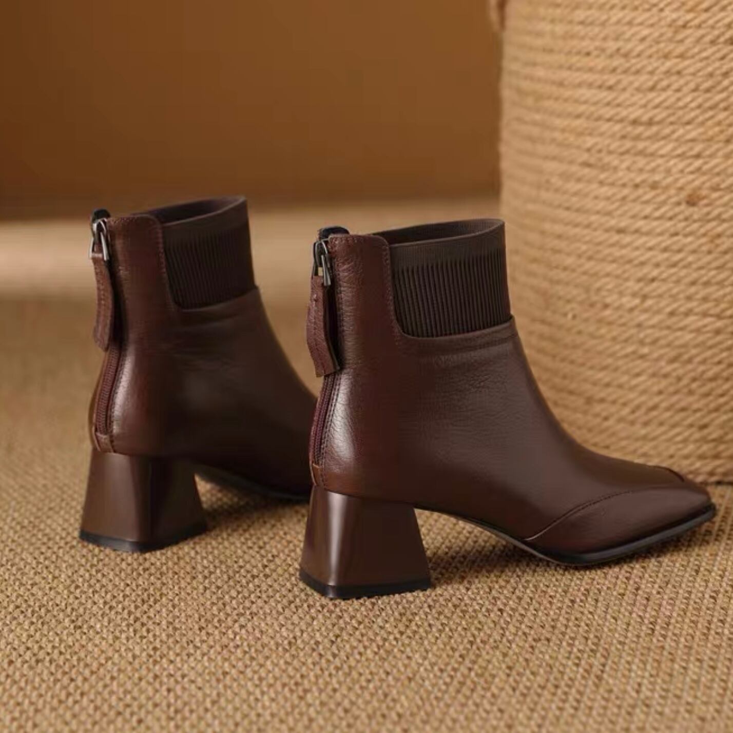【shoes】リブ切り替えショートブーツ2色 YR0104