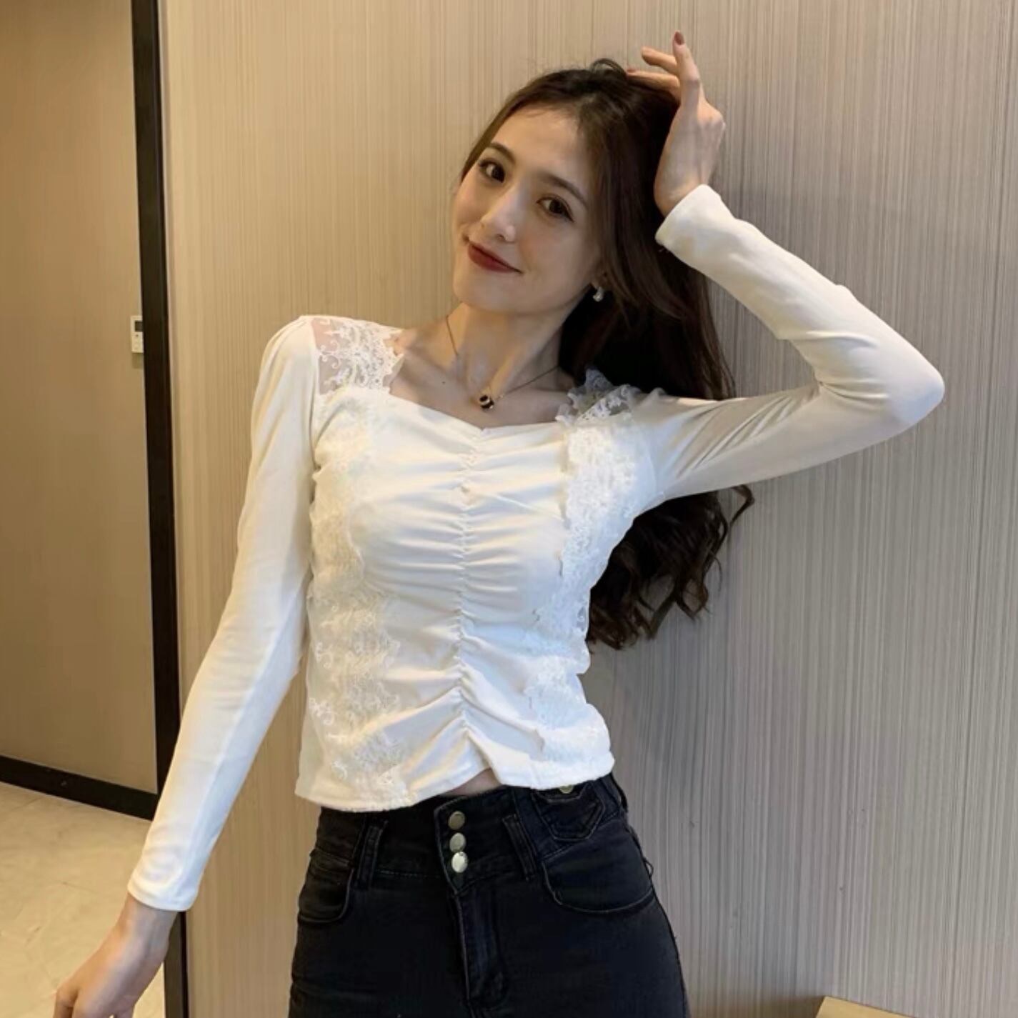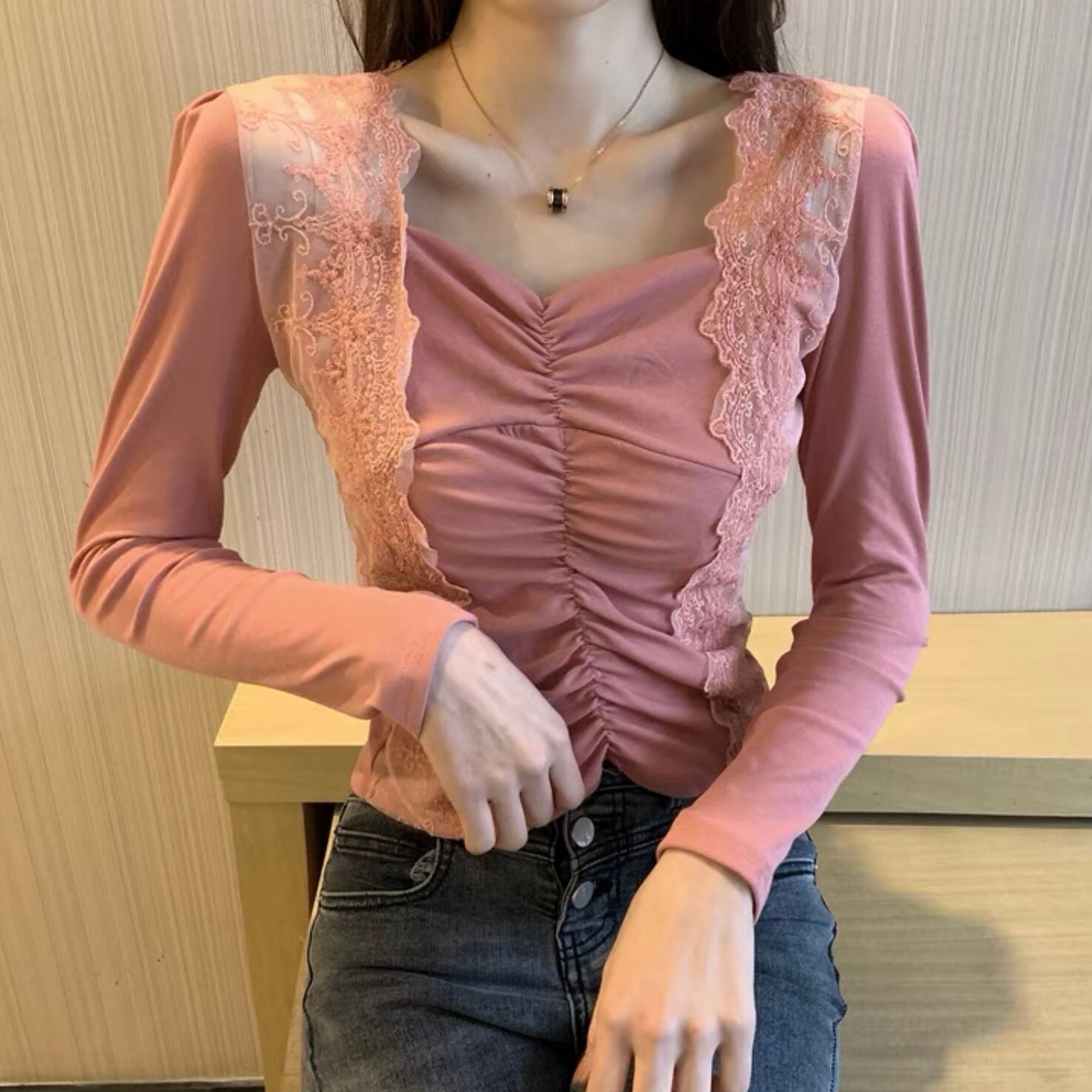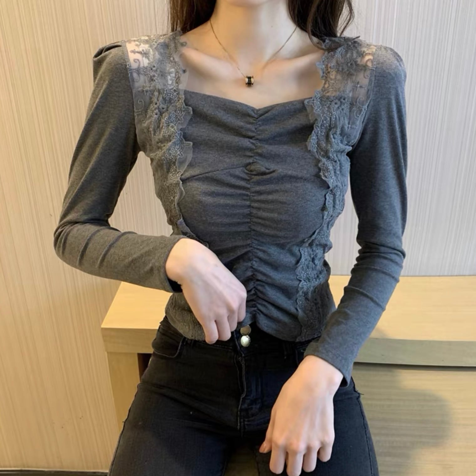 【tops】フロントギャザーレース切り替えトップス FQ0007