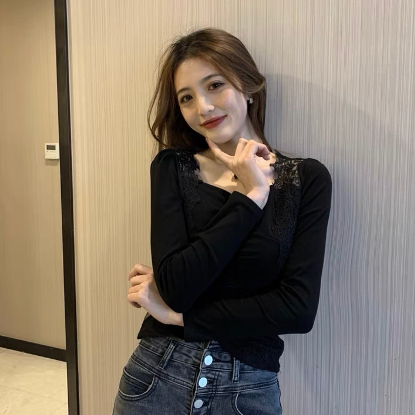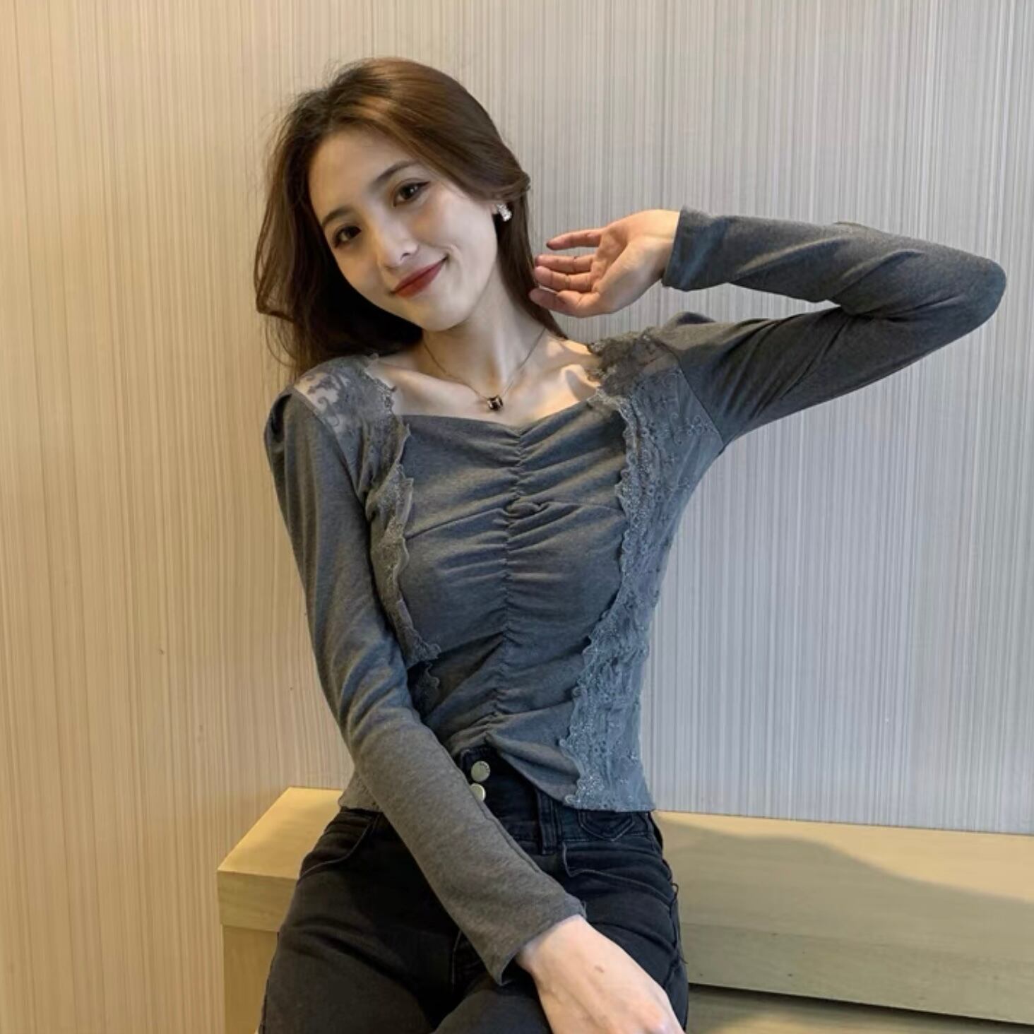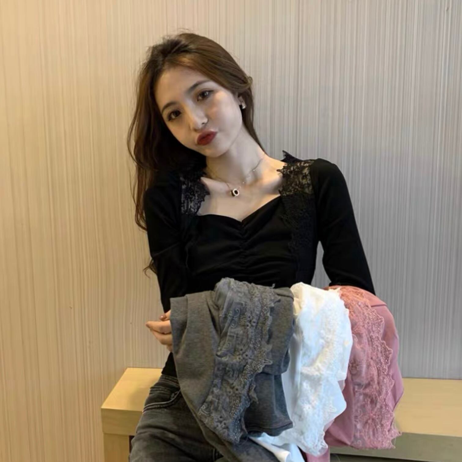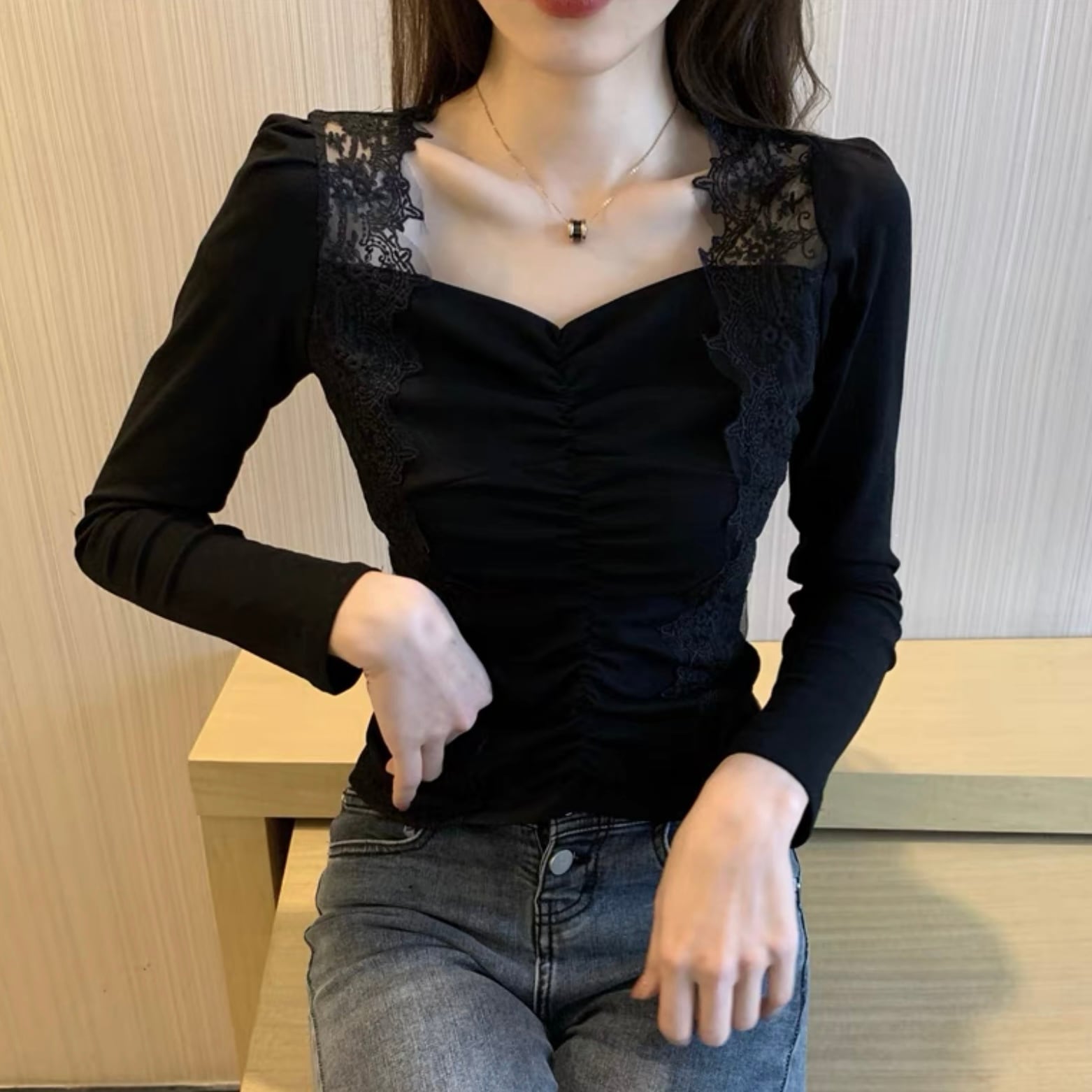 【tops】フロントギャザーレース切り替えトップス FQ0007
