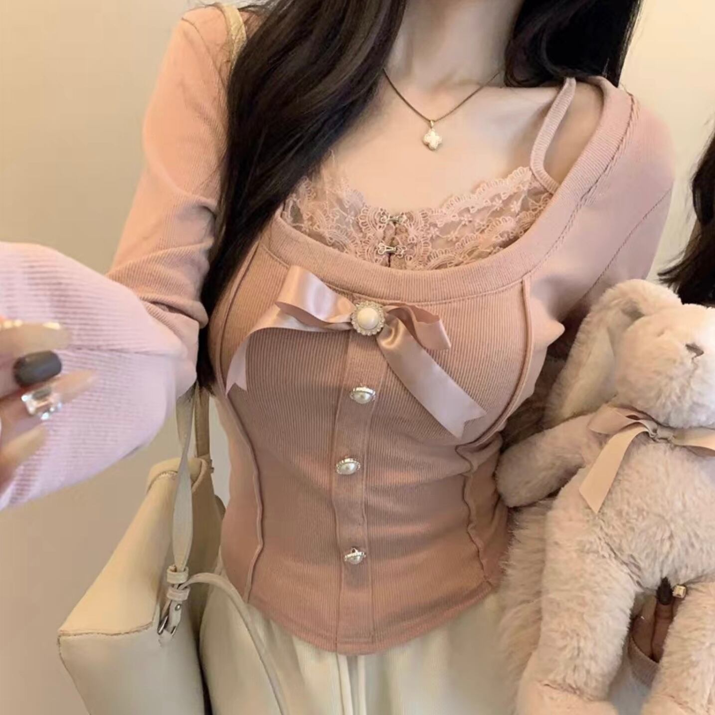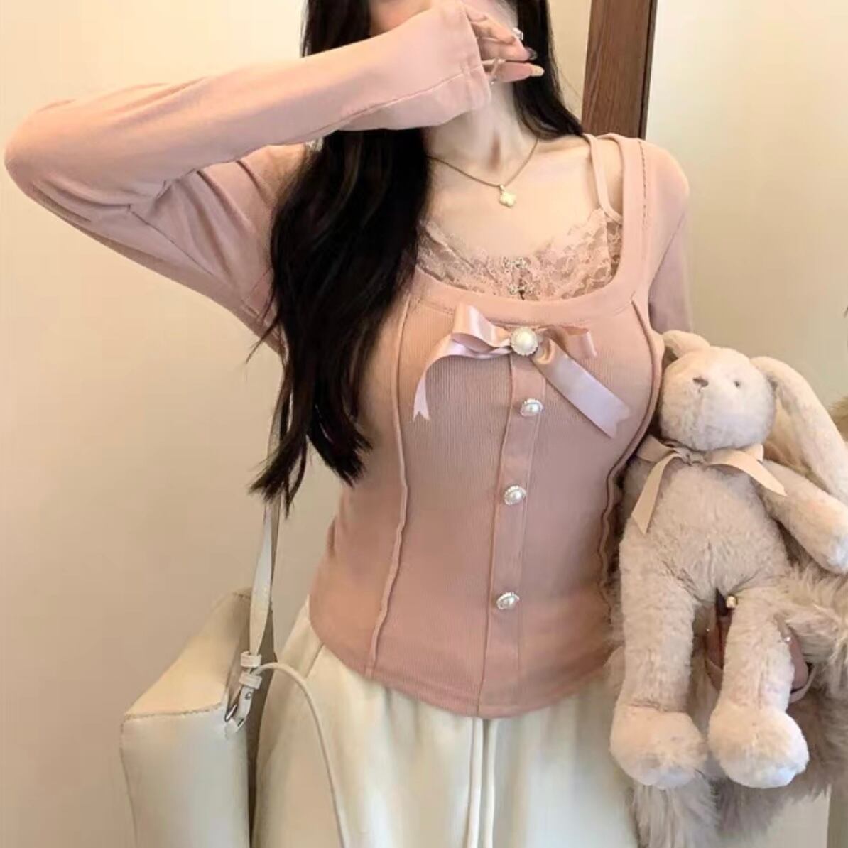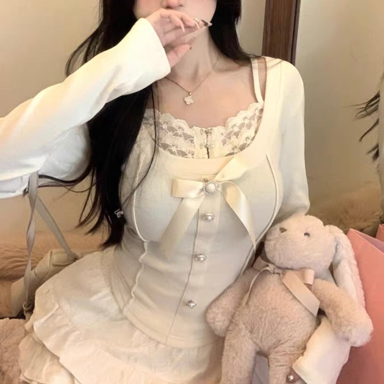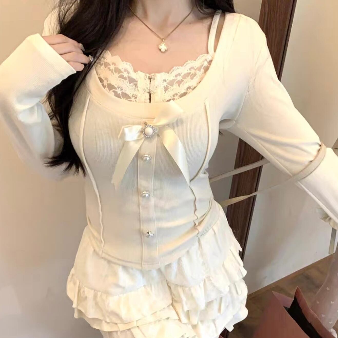 【tops】レースドッキングリボントップス2色 FQ0012