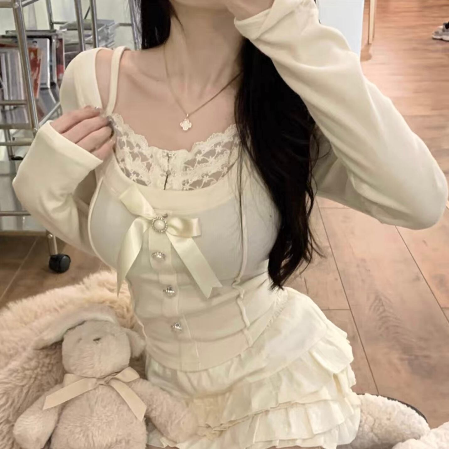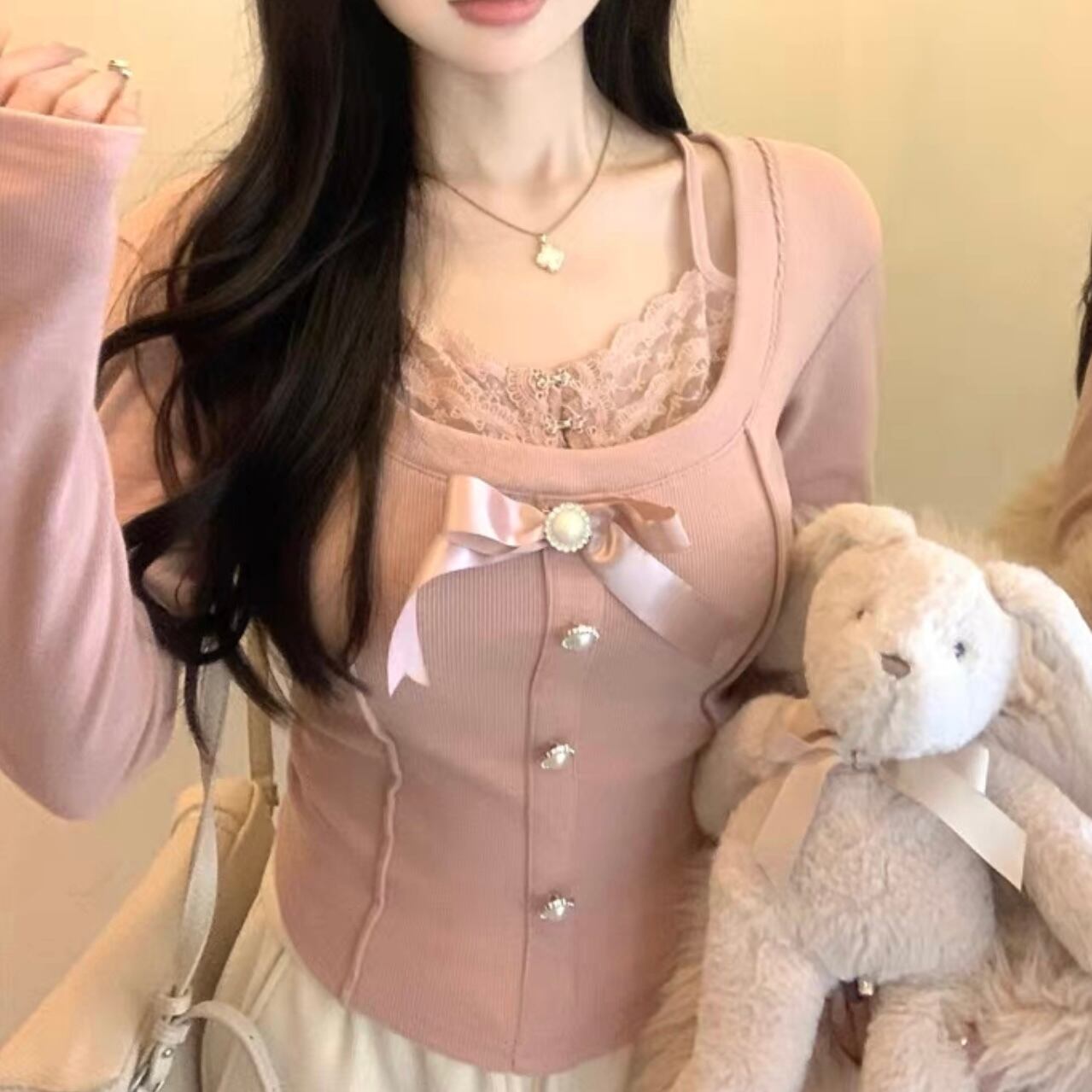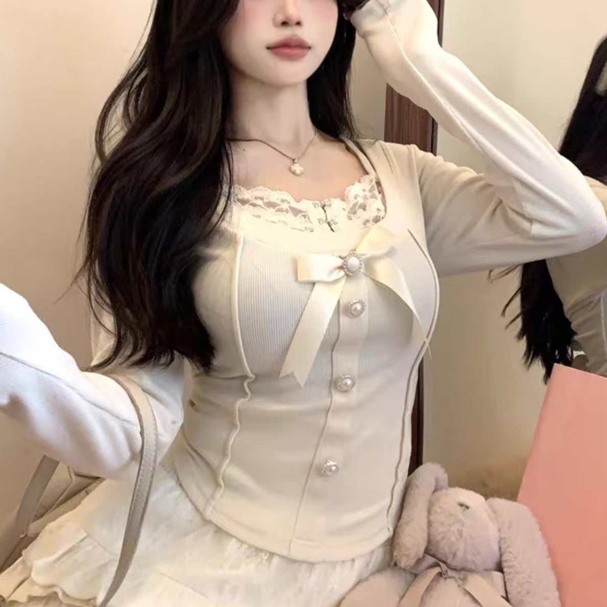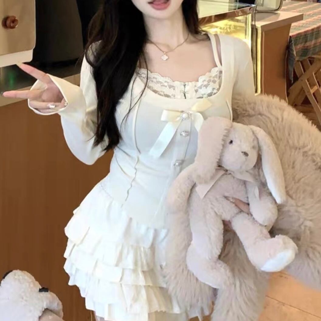 【tops】レースドッキングリボントップス2色 FQ0012
