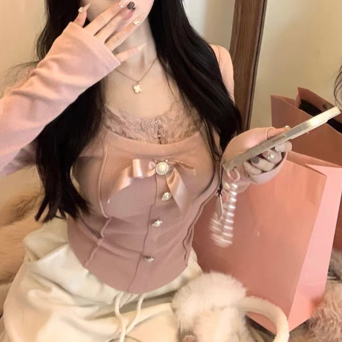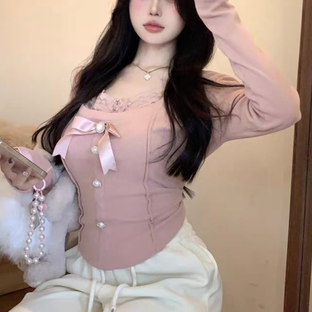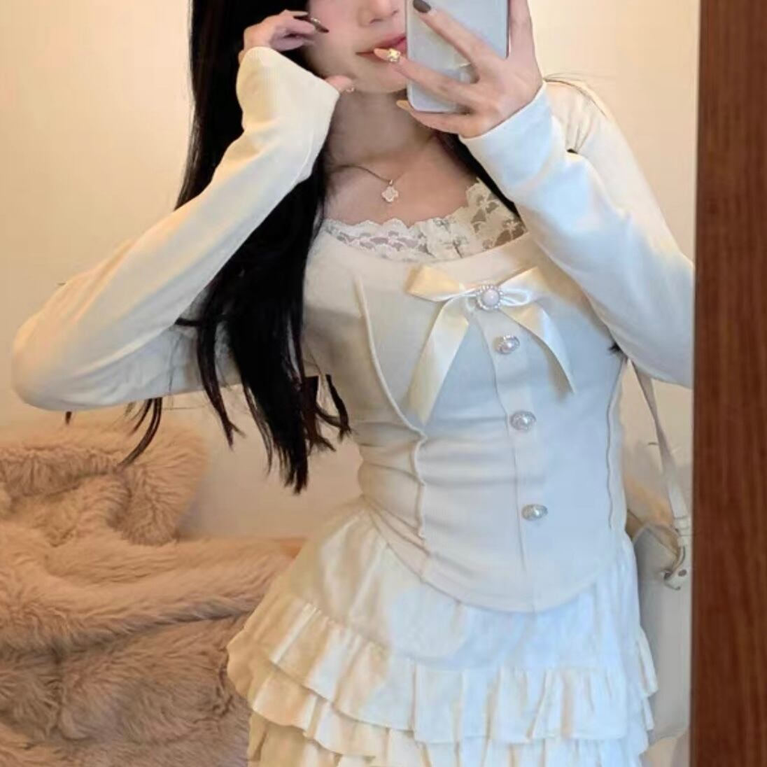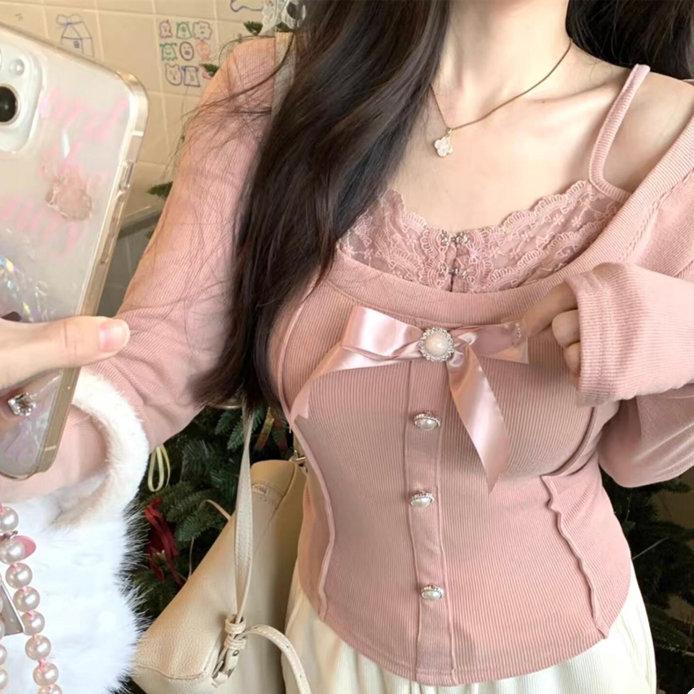 【tops】レースドッキングリボントップス2色 FQ0012
