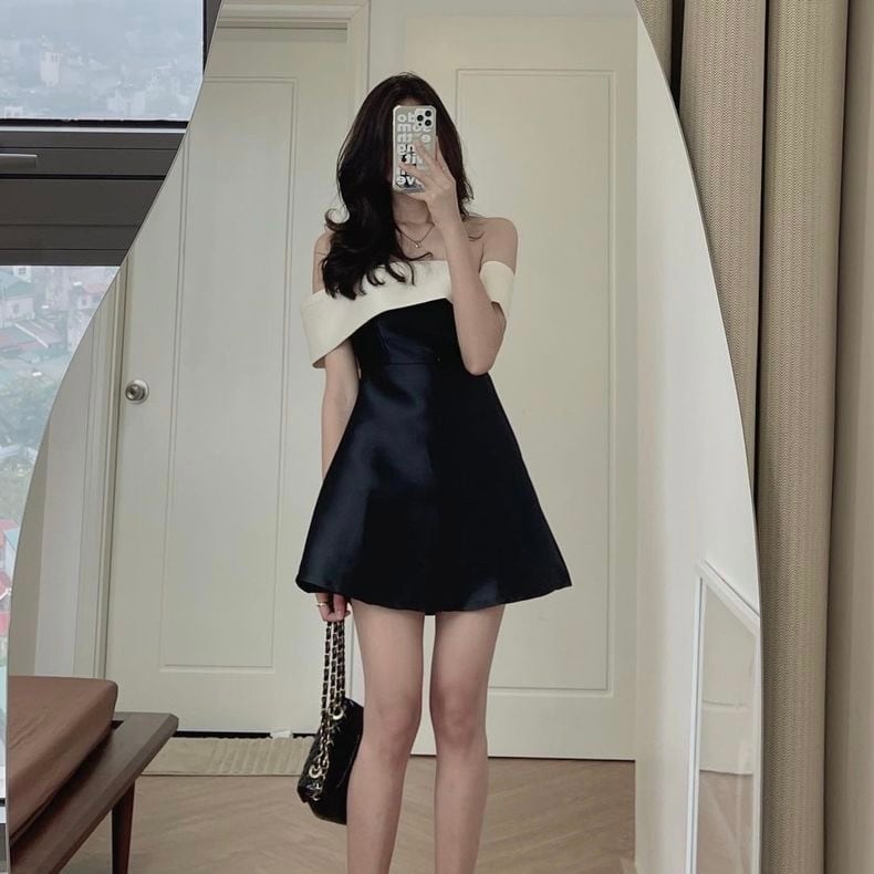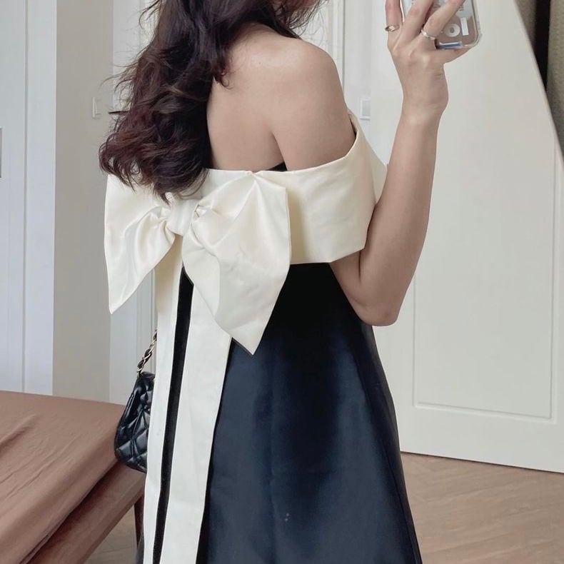 【dress】バックリボン配色ミニワンピース RR11153