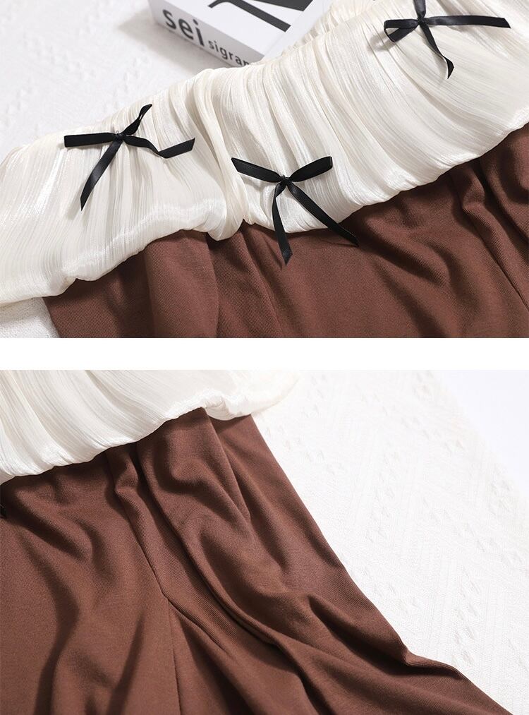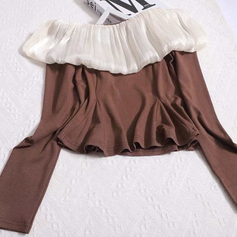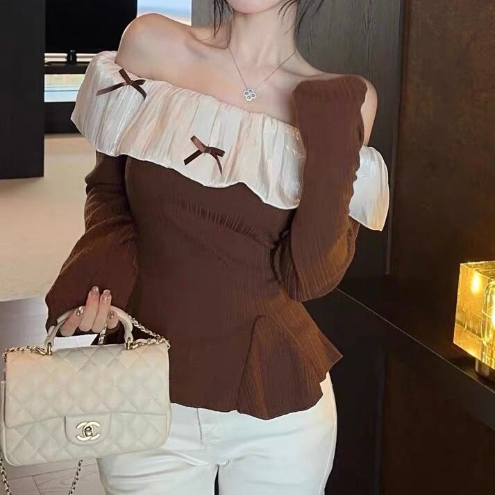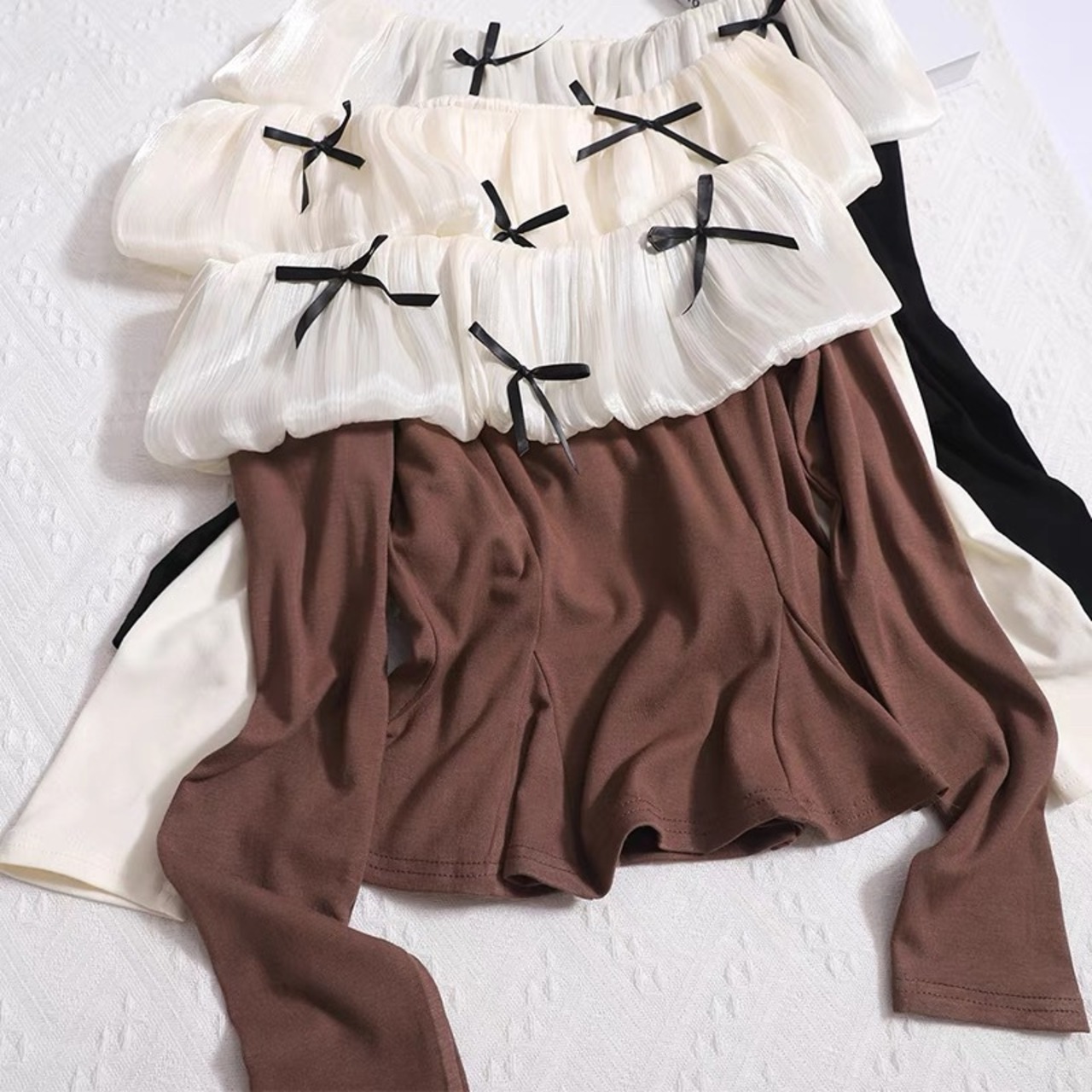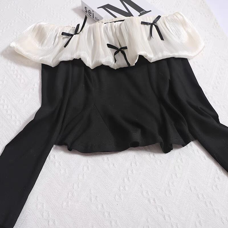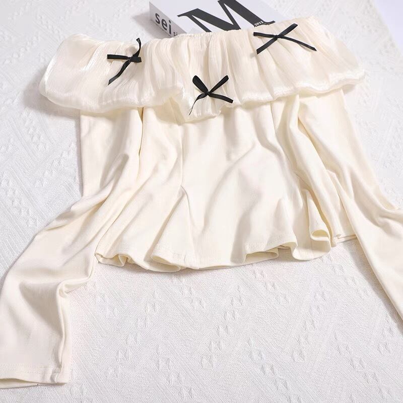 【tops】オフショルダーリボン長袖ショート丈トップス3色 KZ11161