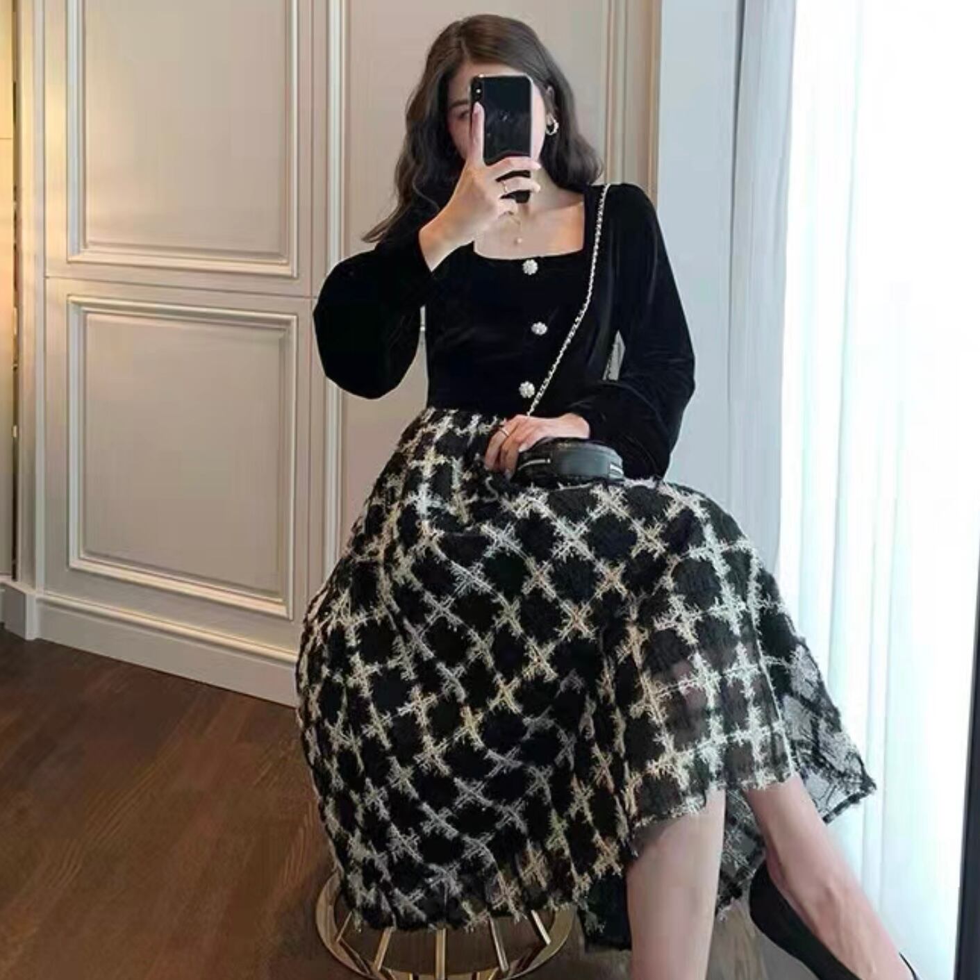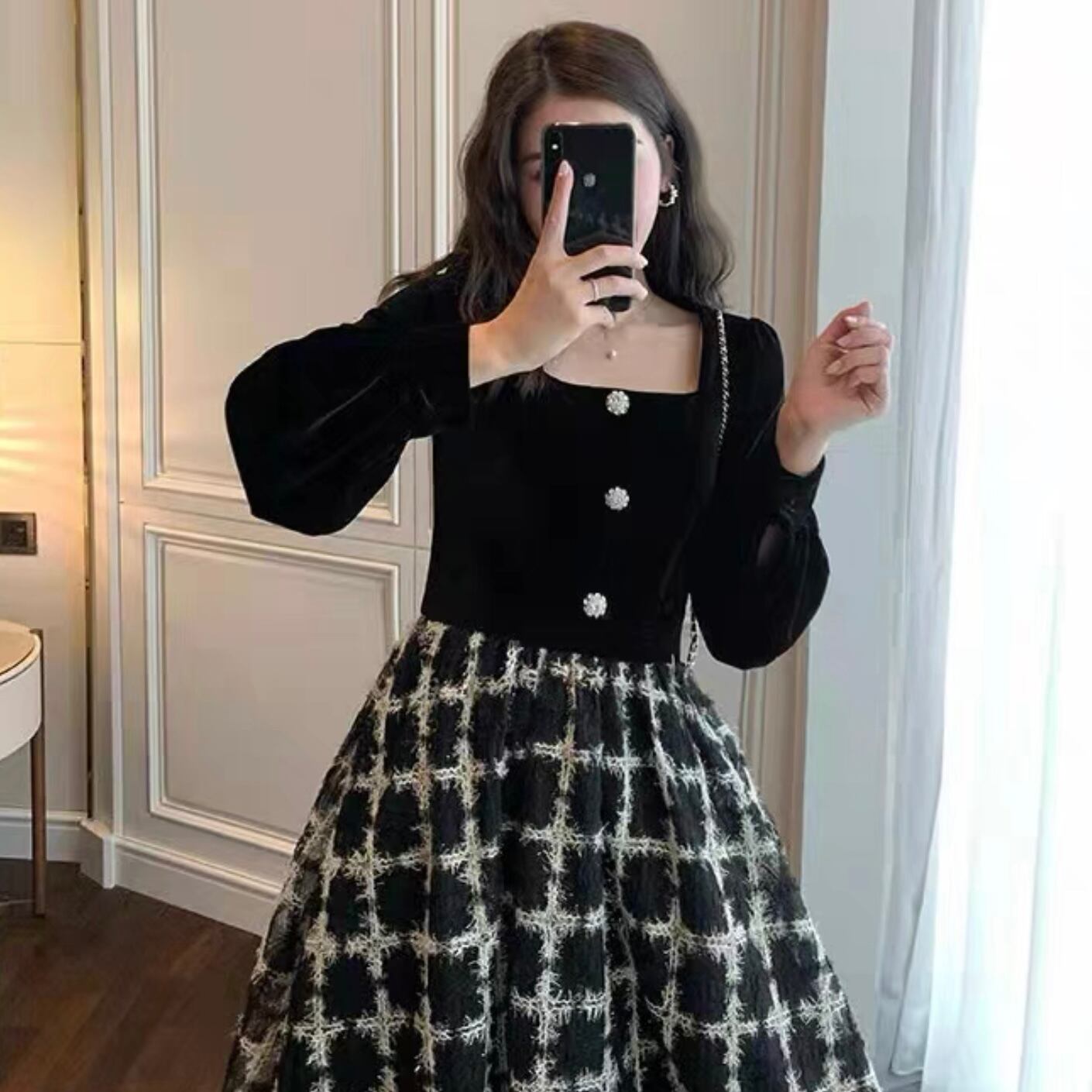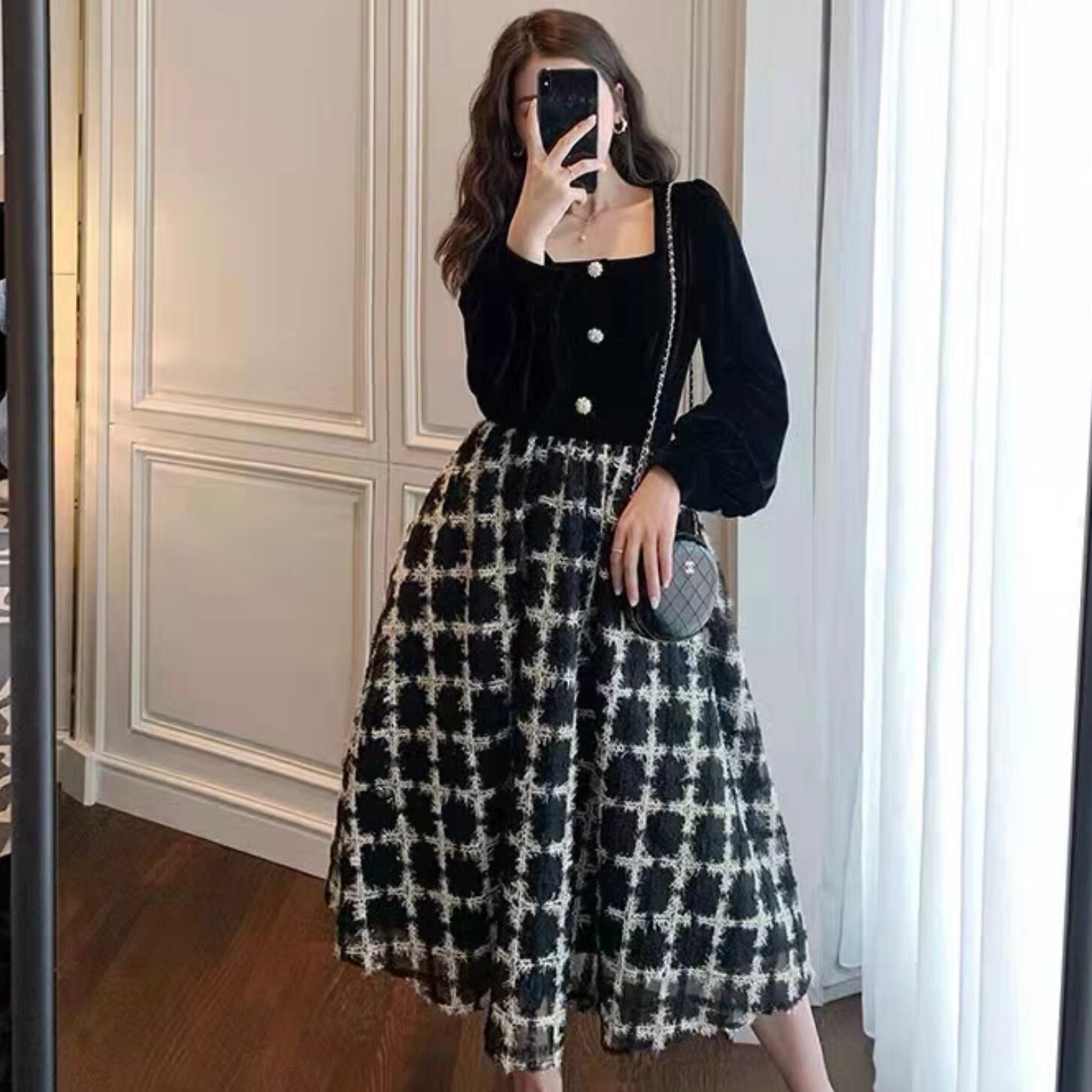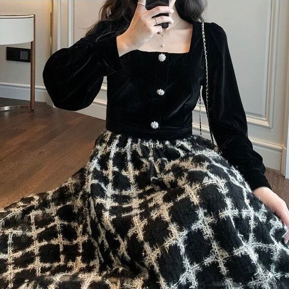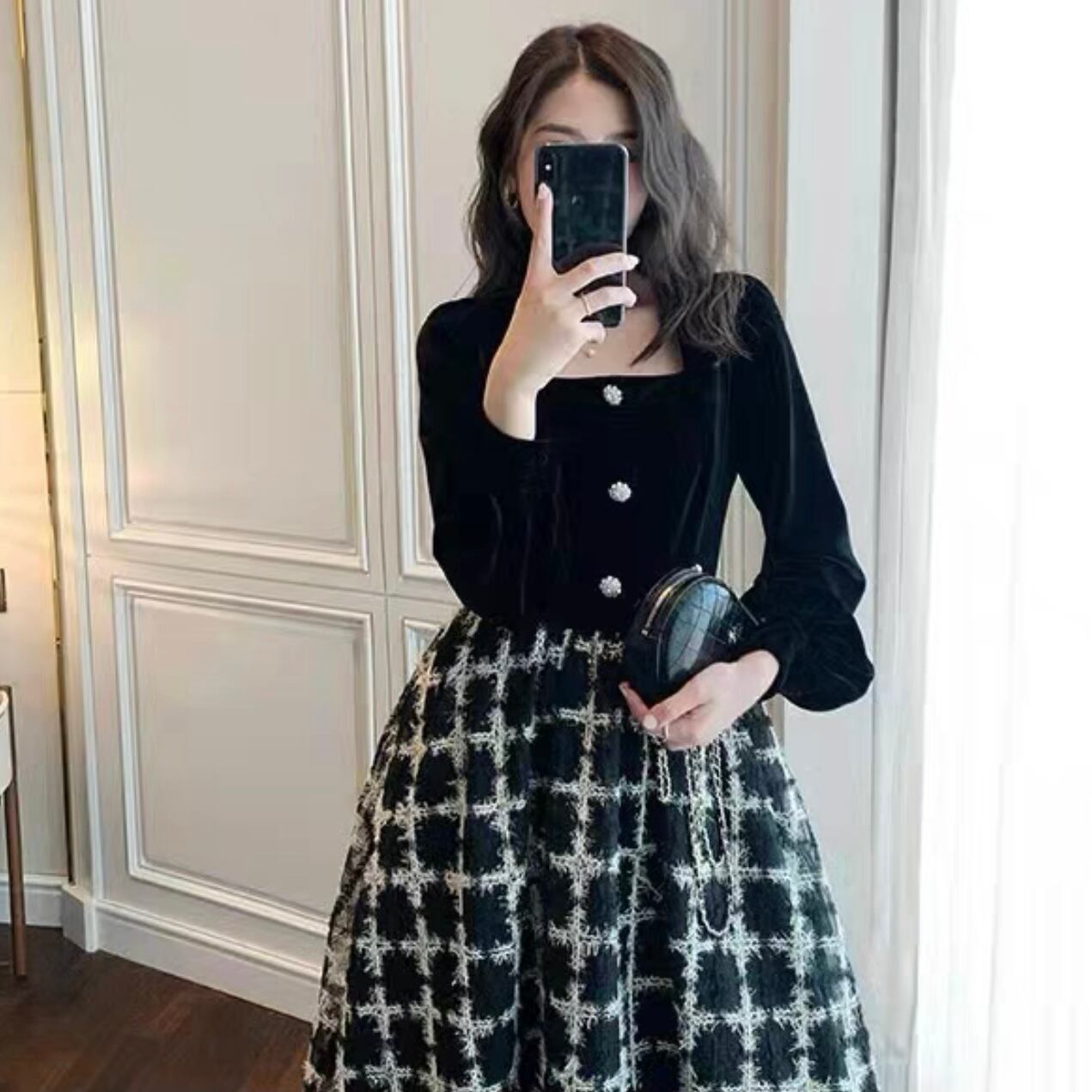 【dress】チェック柄ドッキングワンピース FQ0019