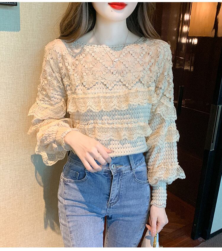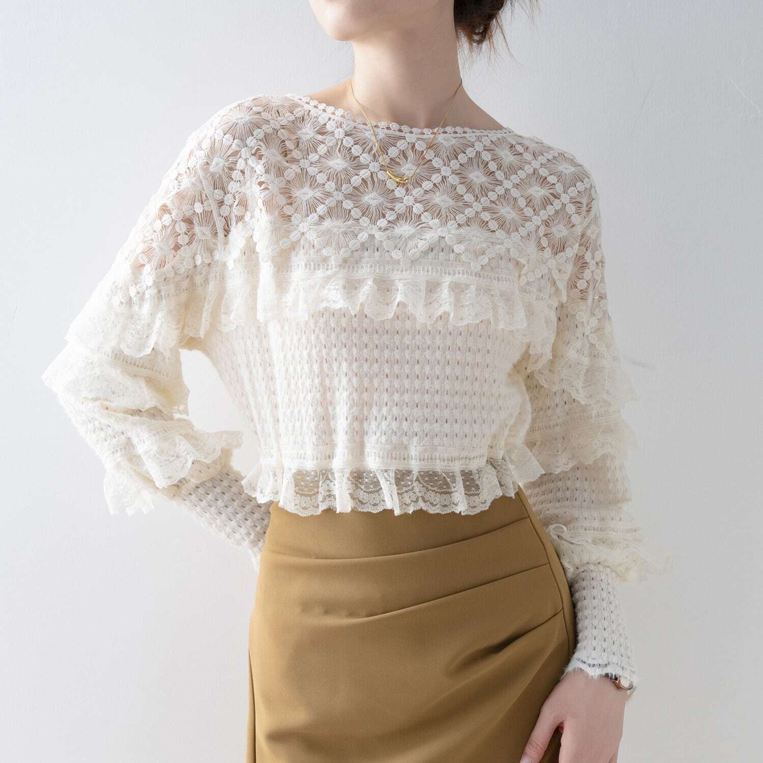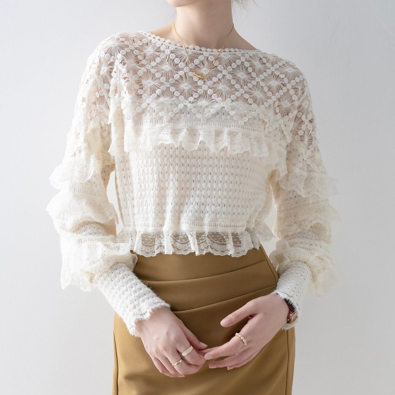 【tops】切り替えレースドロップショルダーカットソー2色 FQ0020
