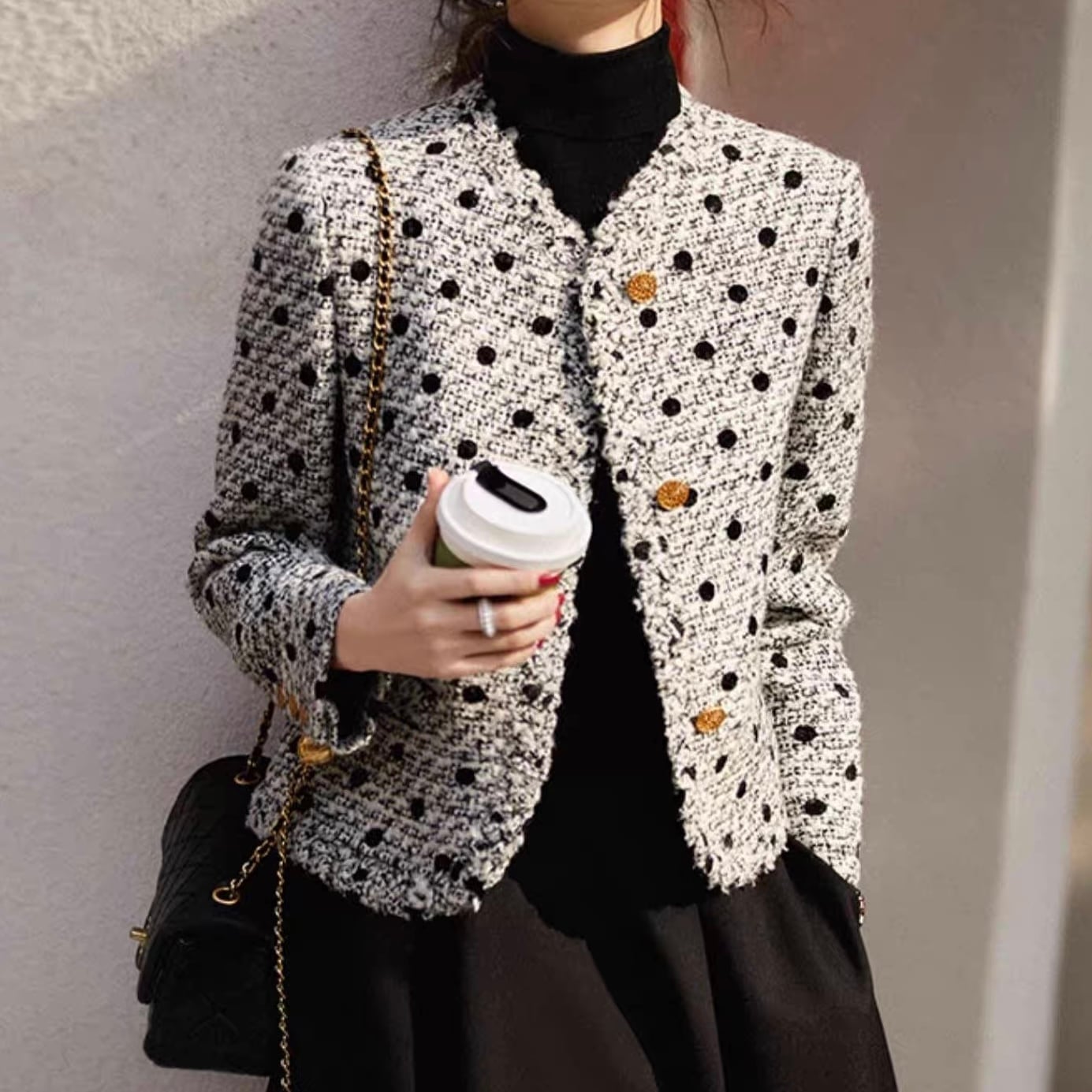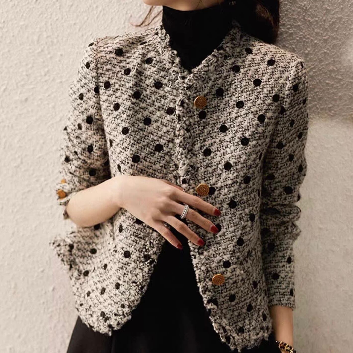 【outer】ツイードオンドット柄ジャケット FQ0022