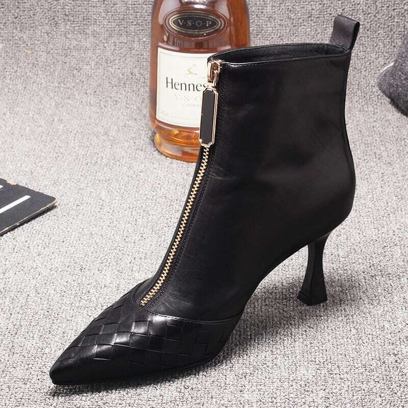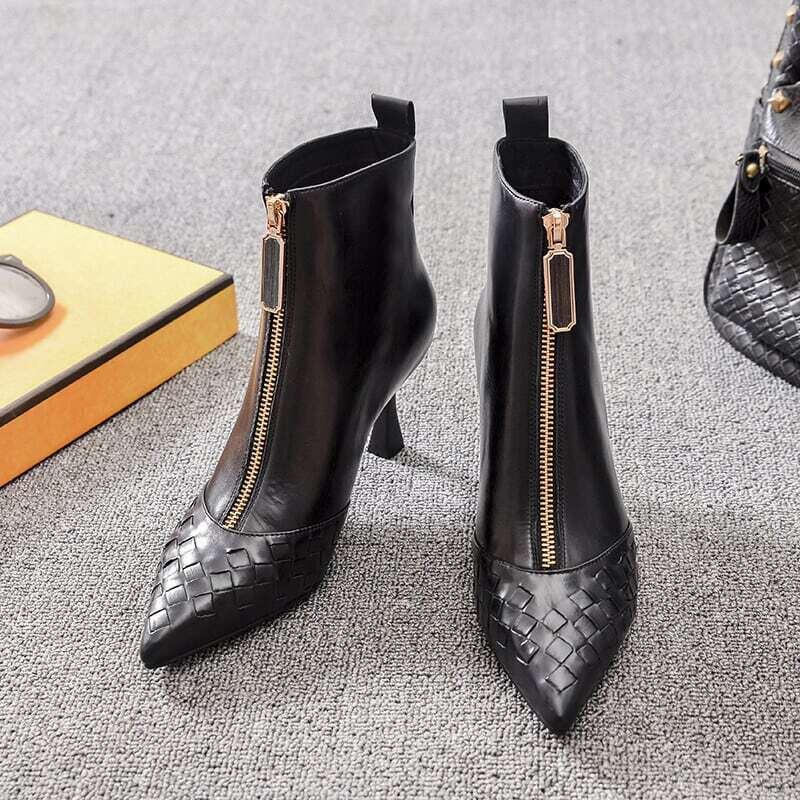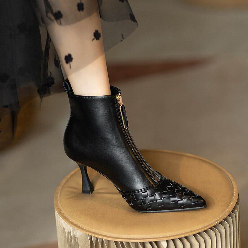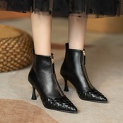 【shoes】ジップデザインポインテッドトゥショートブーツ YR0107