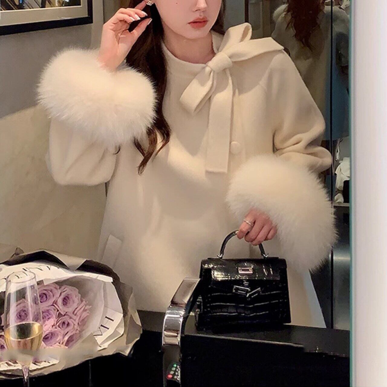 【outer】ファー袖リボンコート MC11181