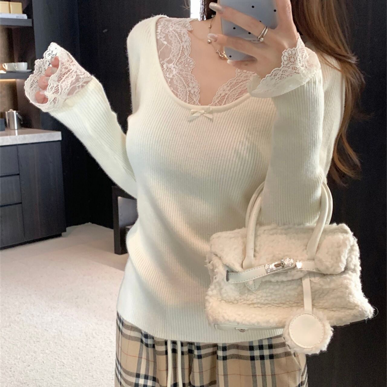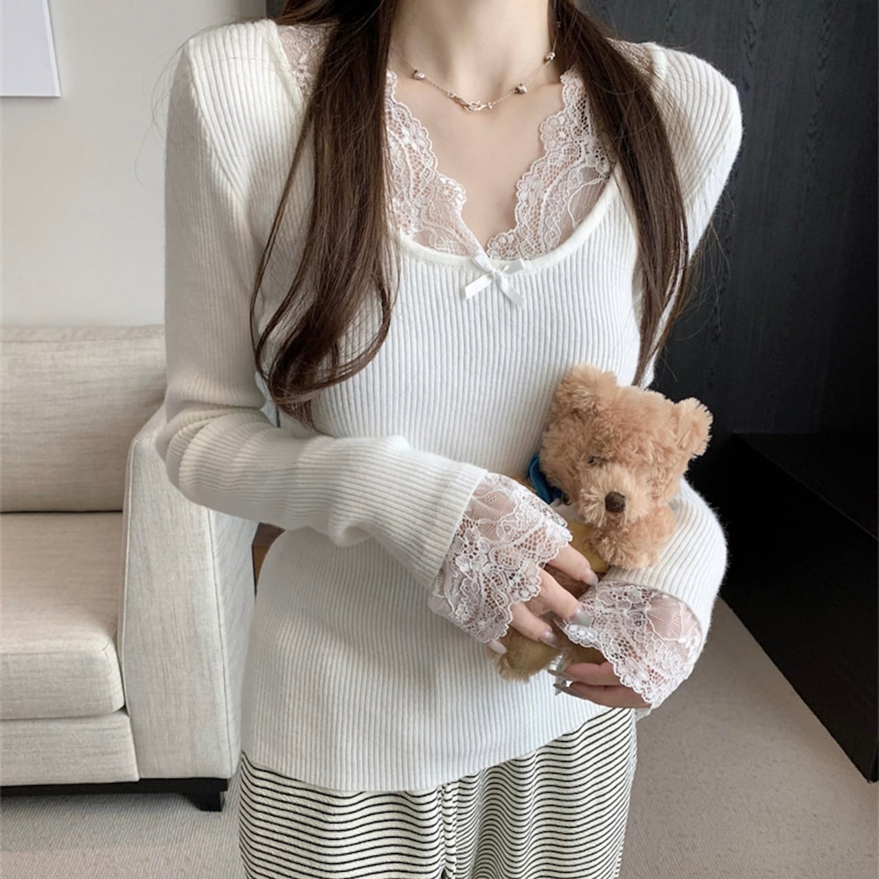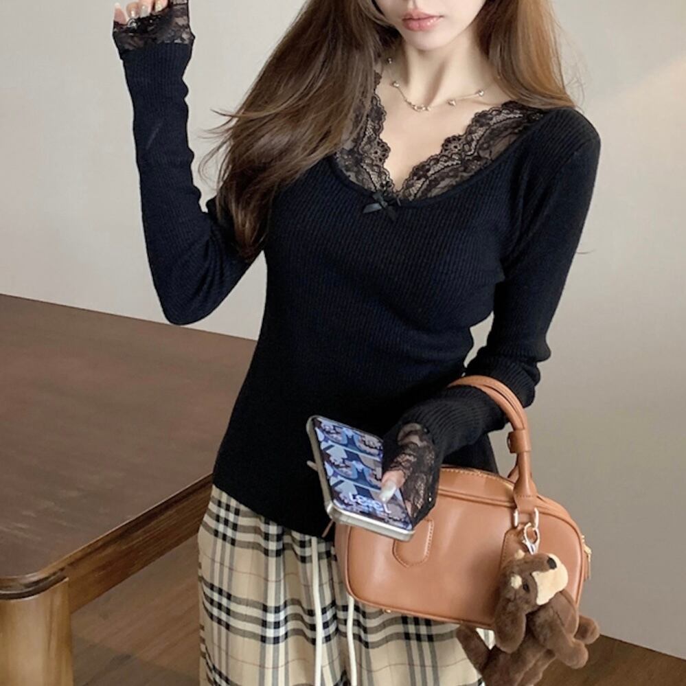 【tops】レースドッキング長袖ニットトップス4色 RC11230