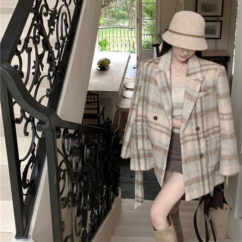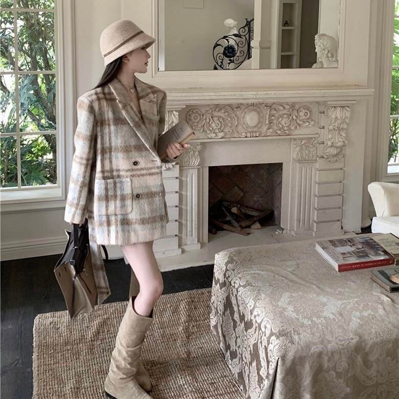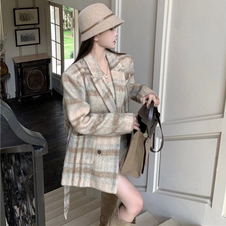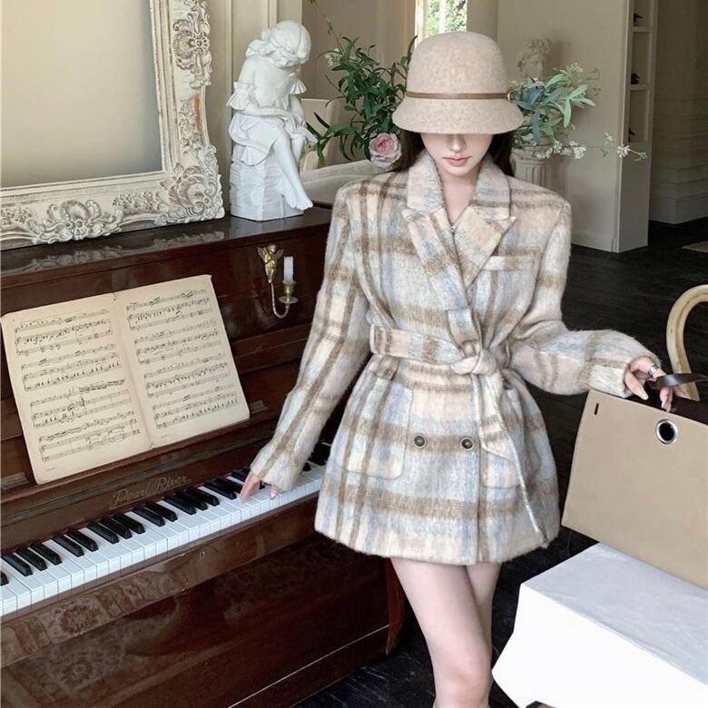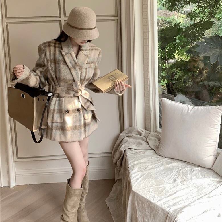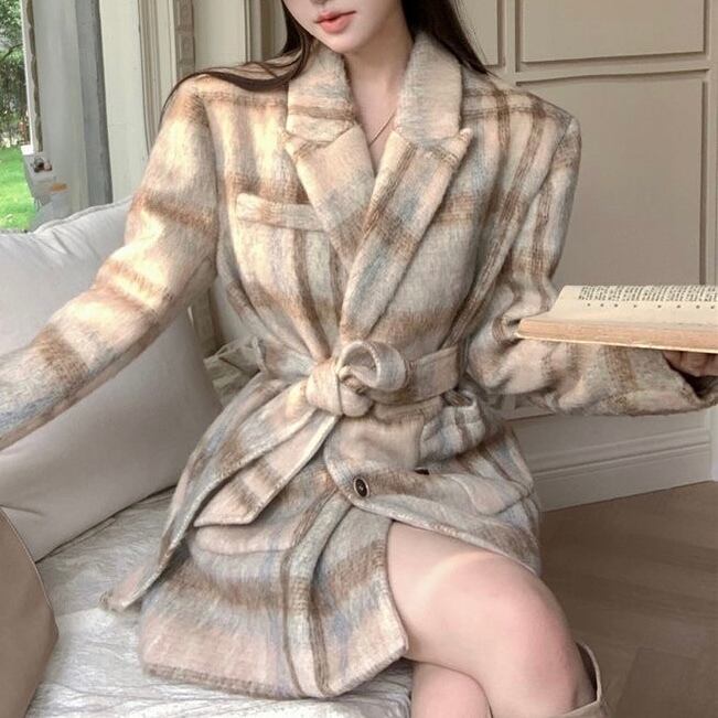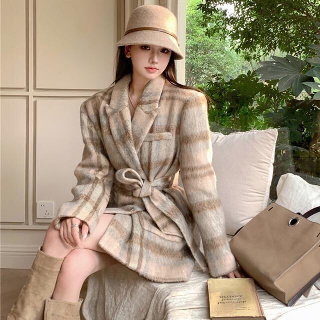 【outer】リボンベルト付きチェック柄コート PX11273