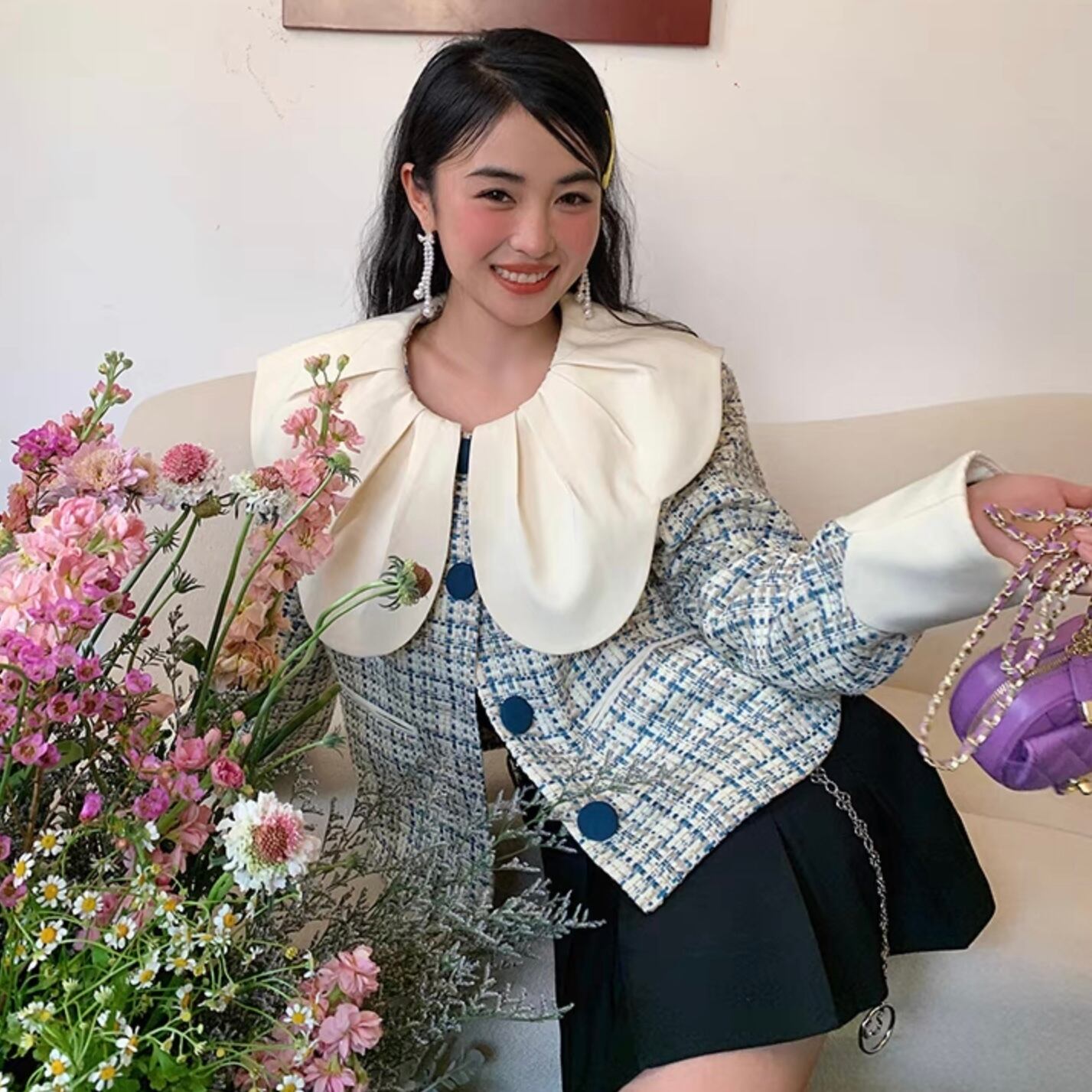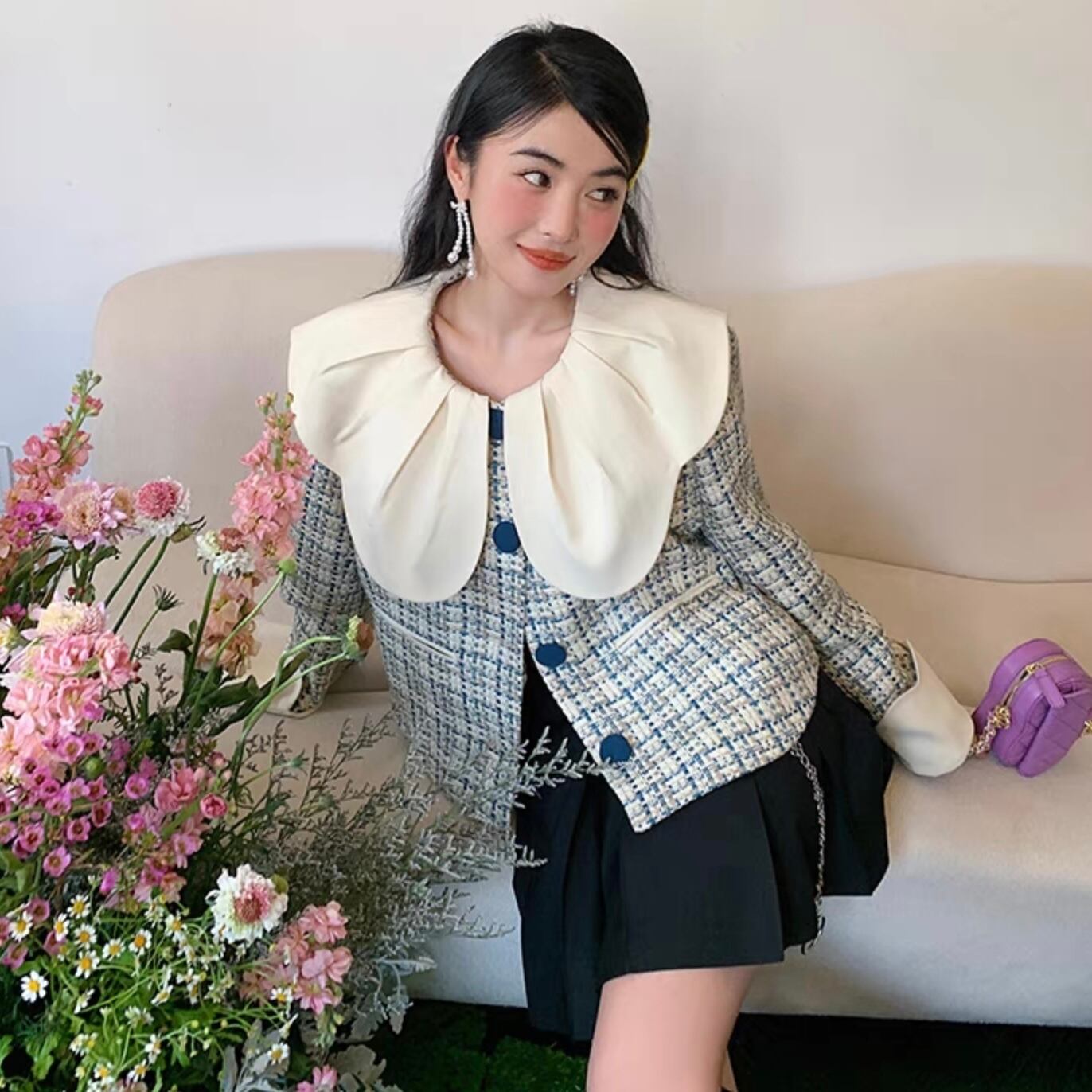 【outer】トリム襟ツイードジャケット FQ0044