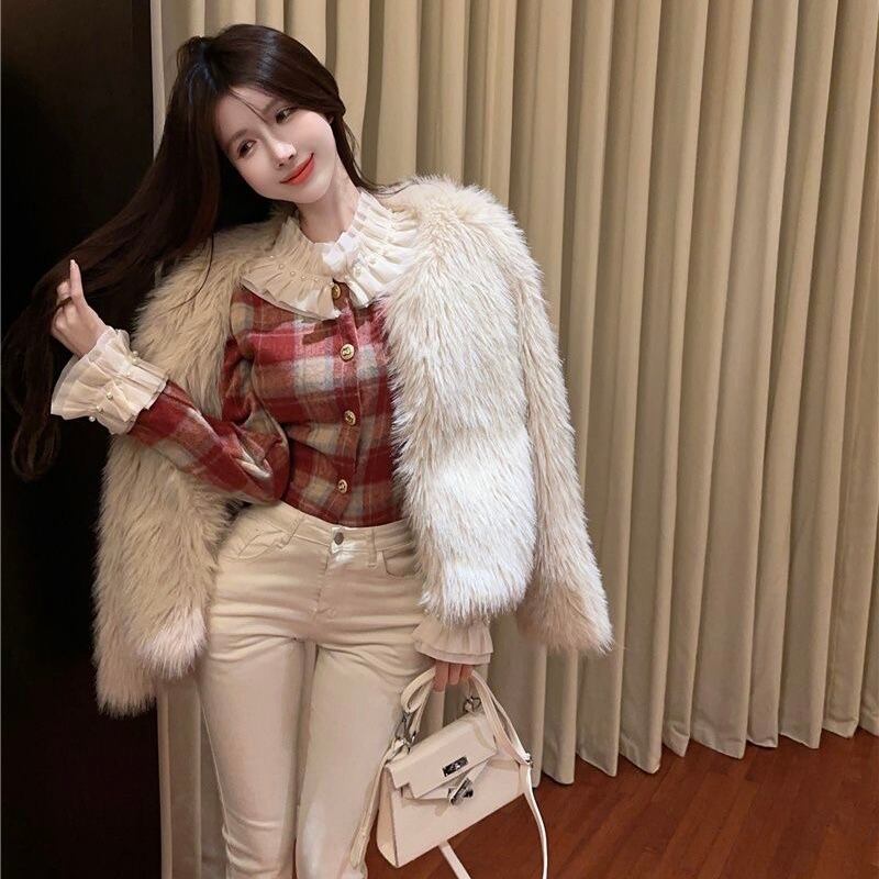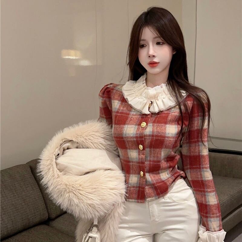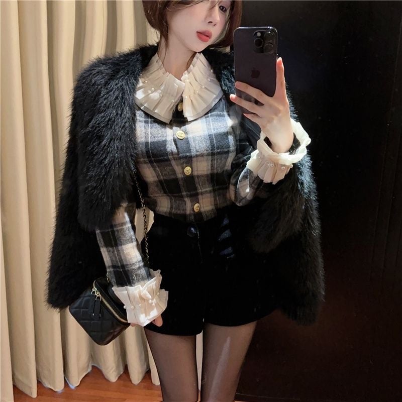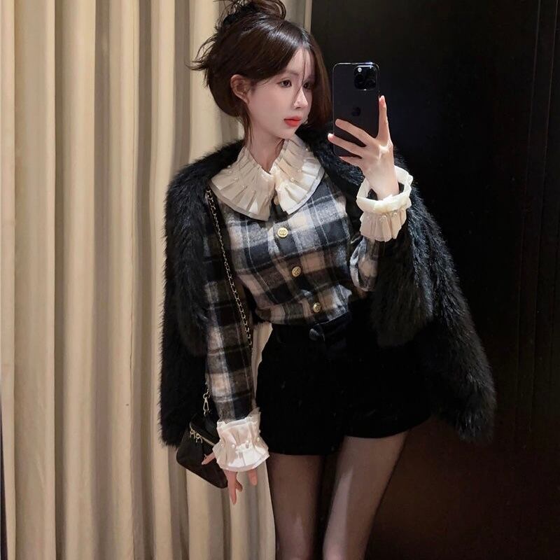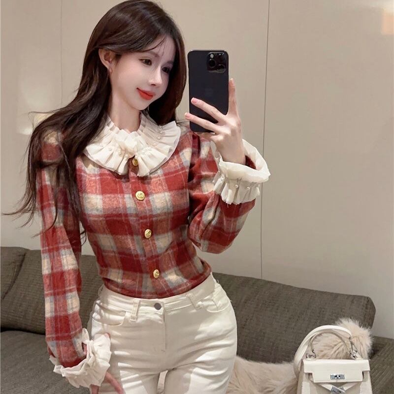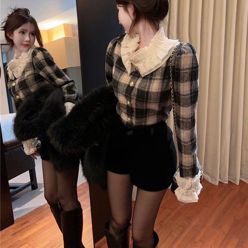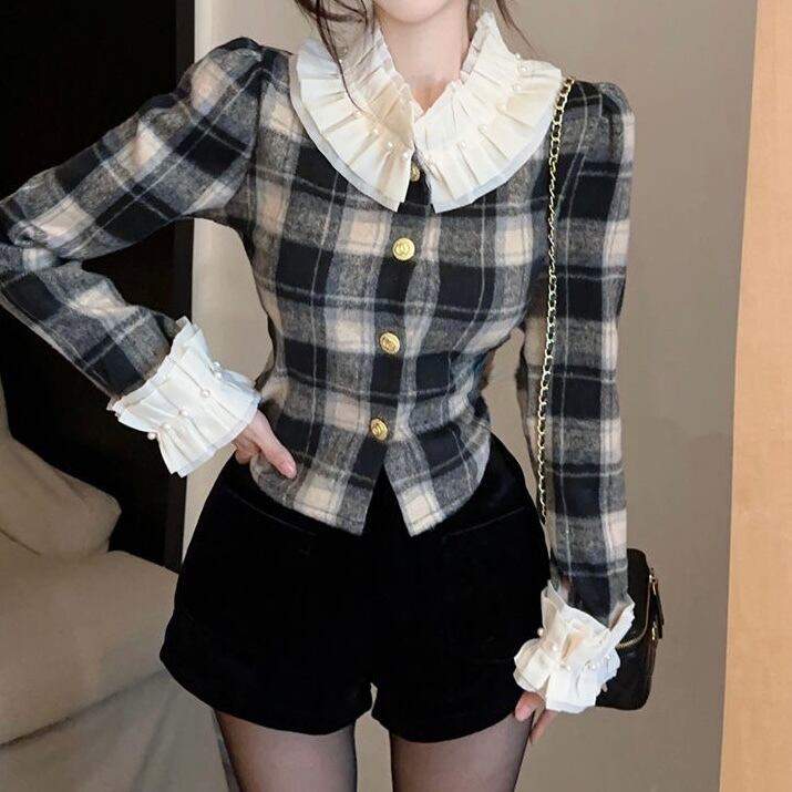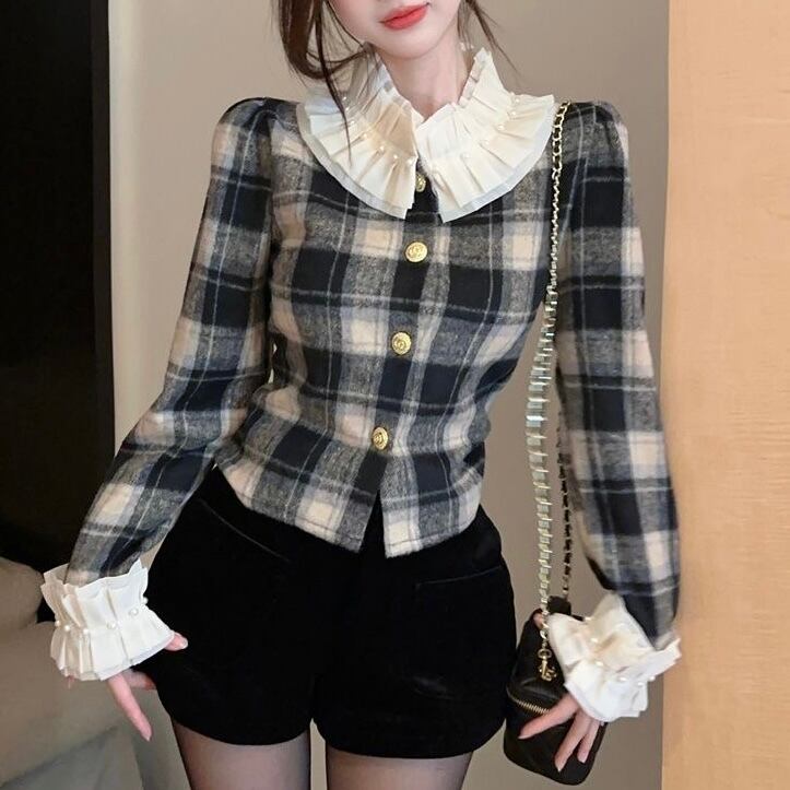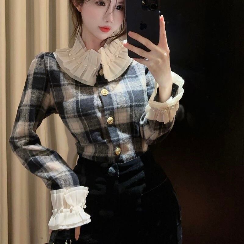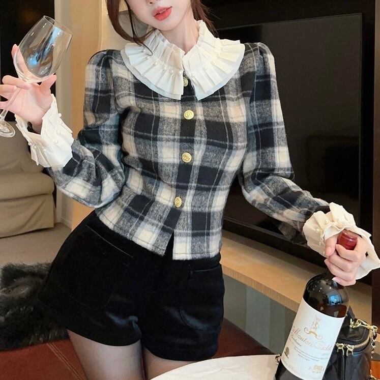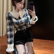 【tops】チェック柄フリルシャツトップス2色 PX11274