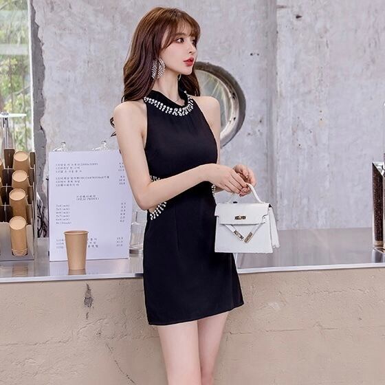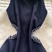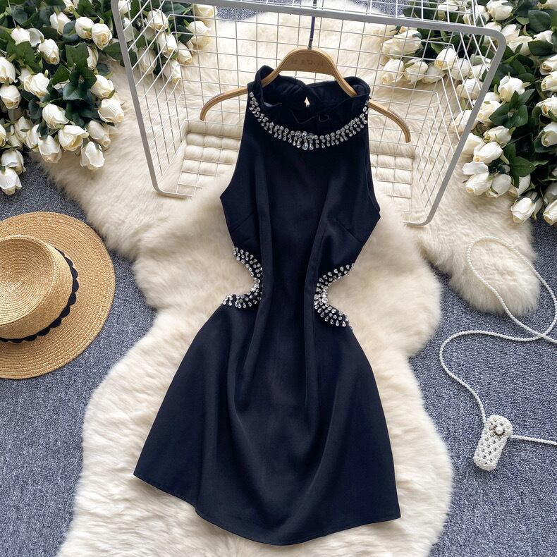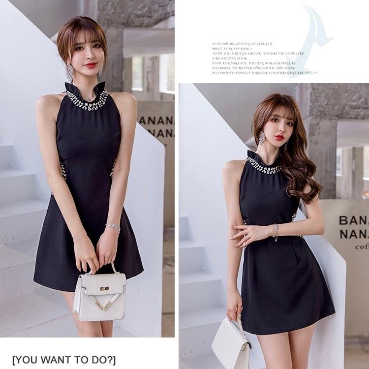 【dress】ホルダーネックビジューウエストカットワンピース FQ0054
