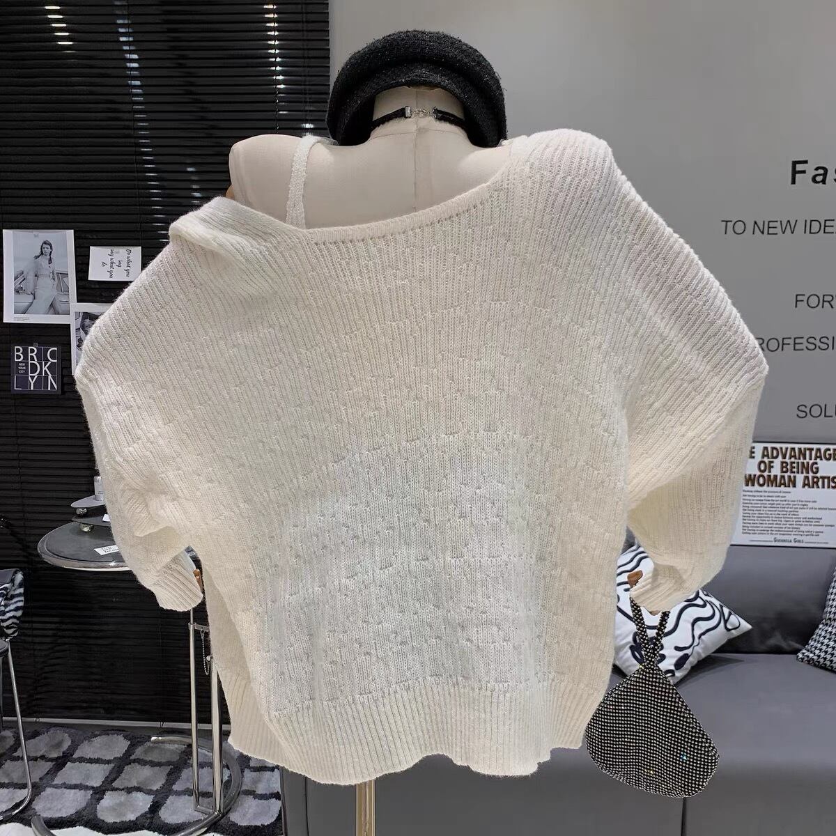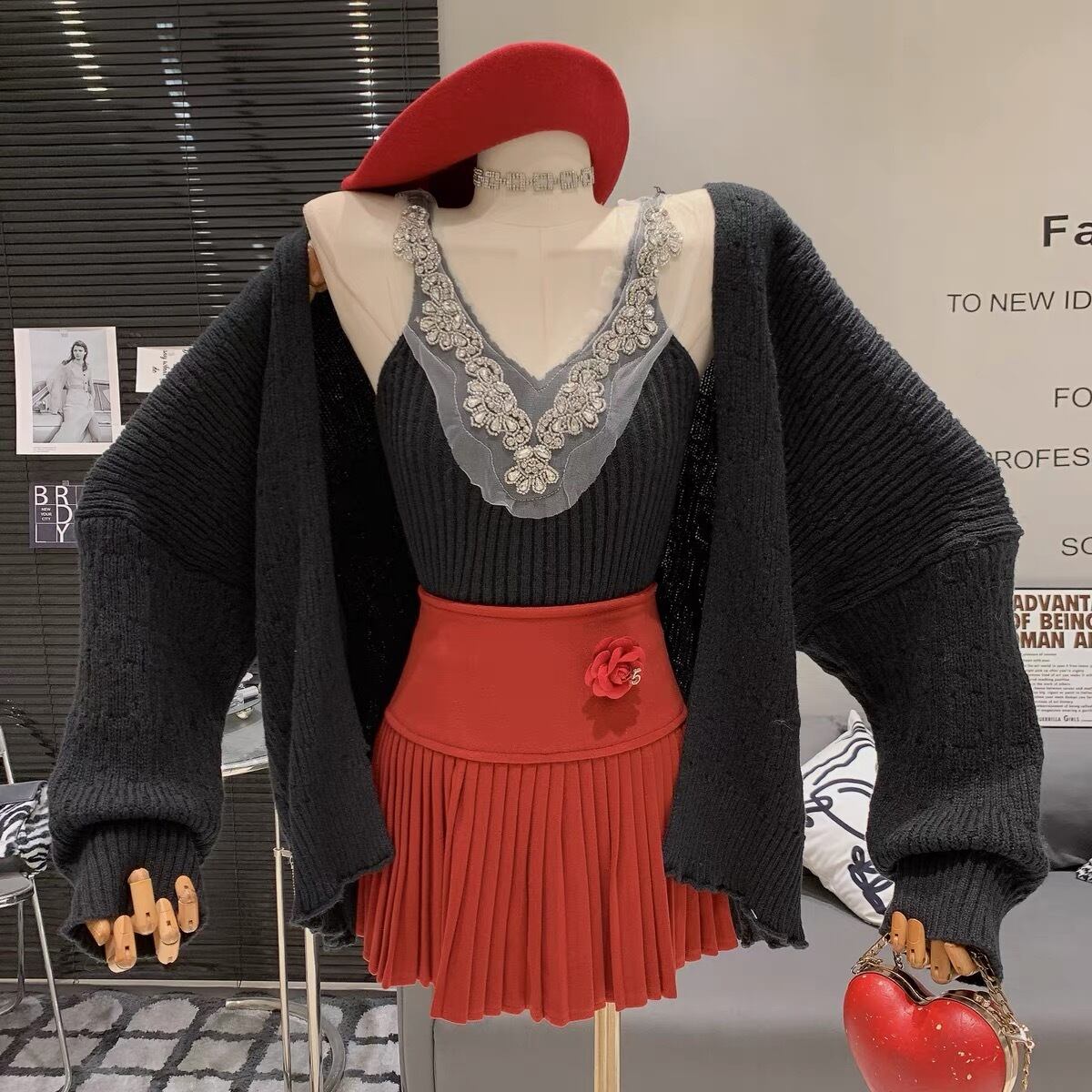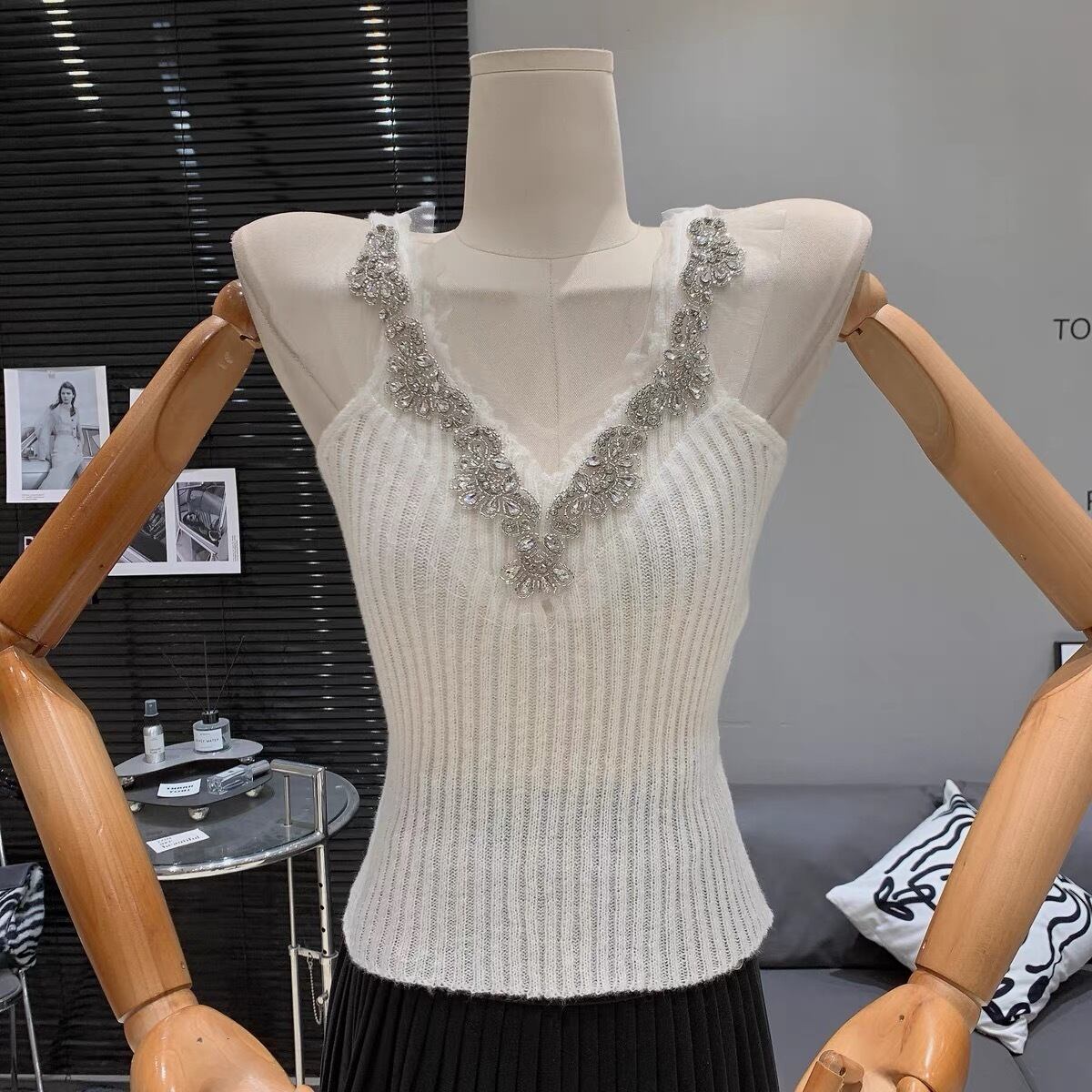 【set】ビジュー付きVネックキャミトップスxカーディガン4色 SY12021