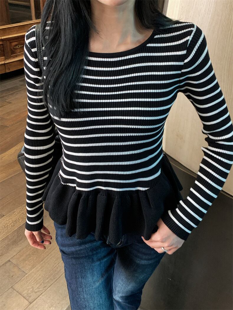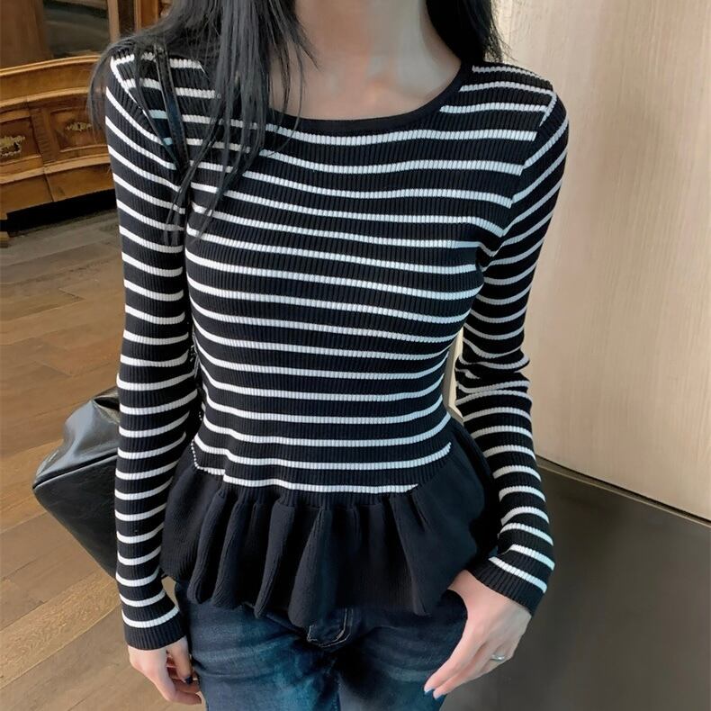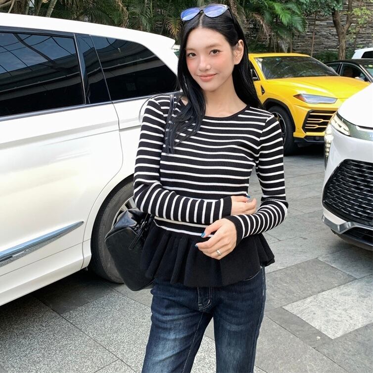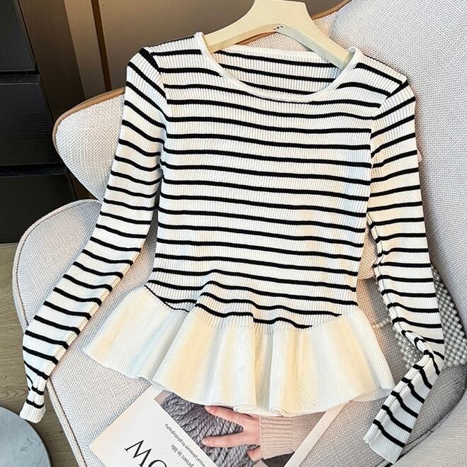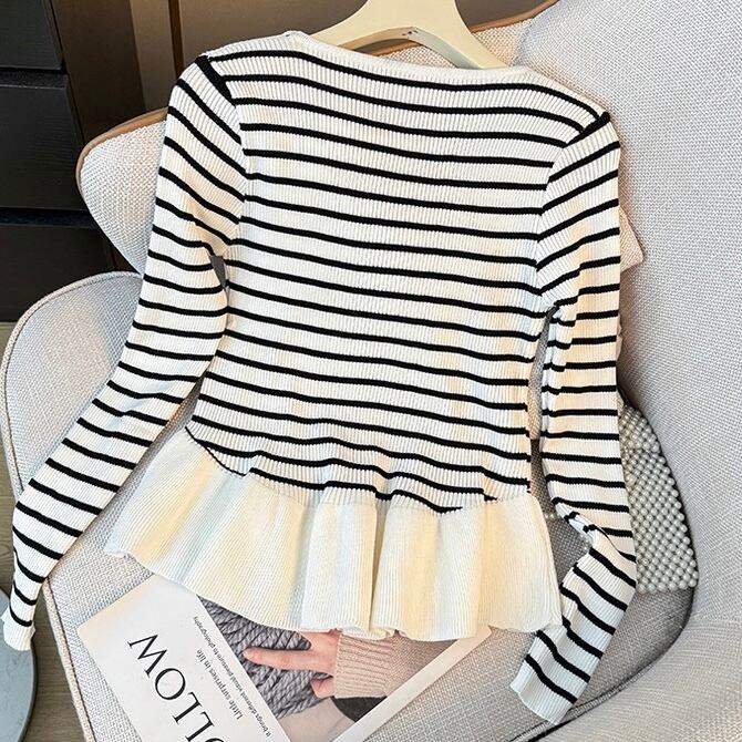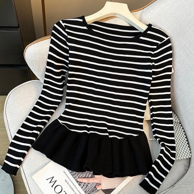 【tops】ぺプラムボーダーニットトップス2色 SY12023