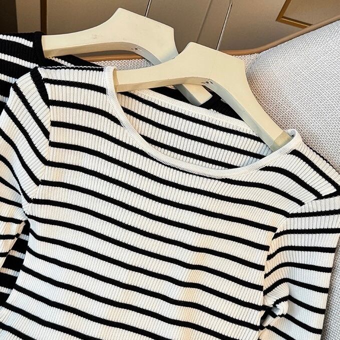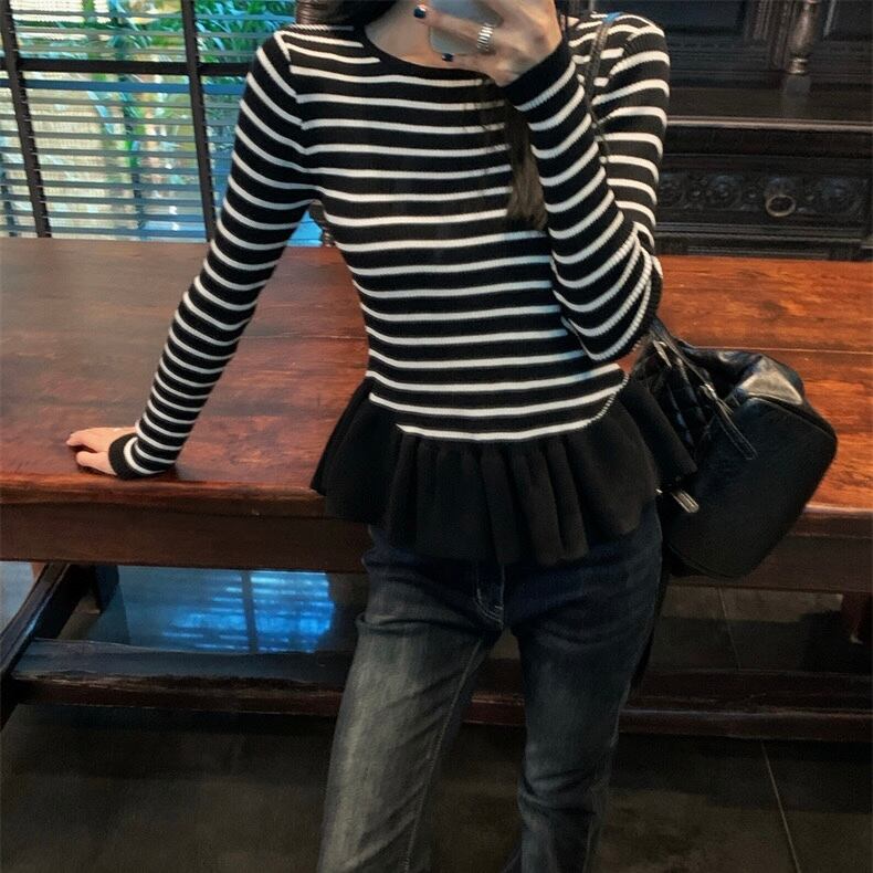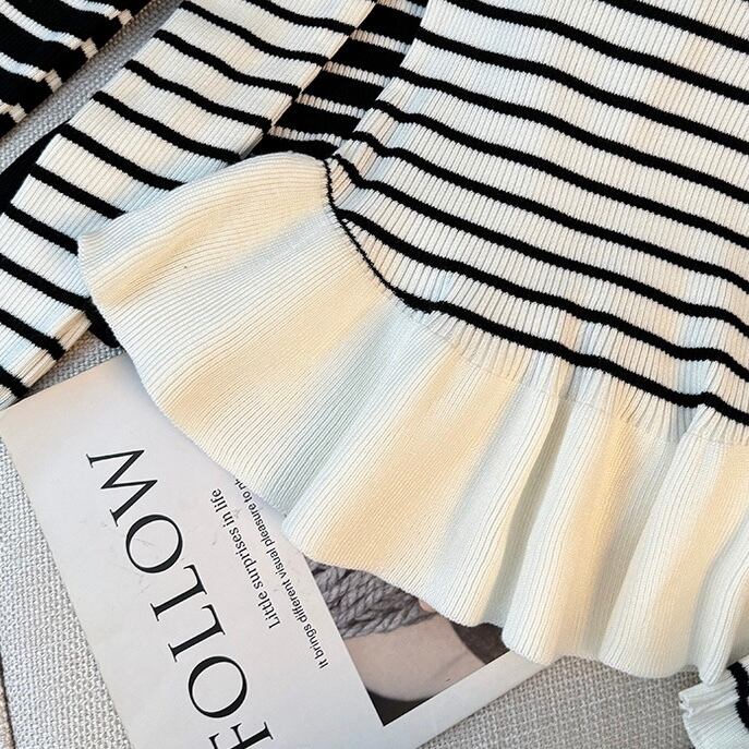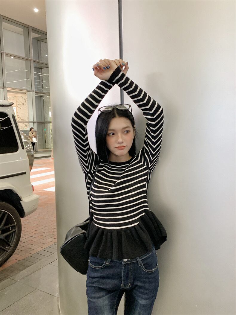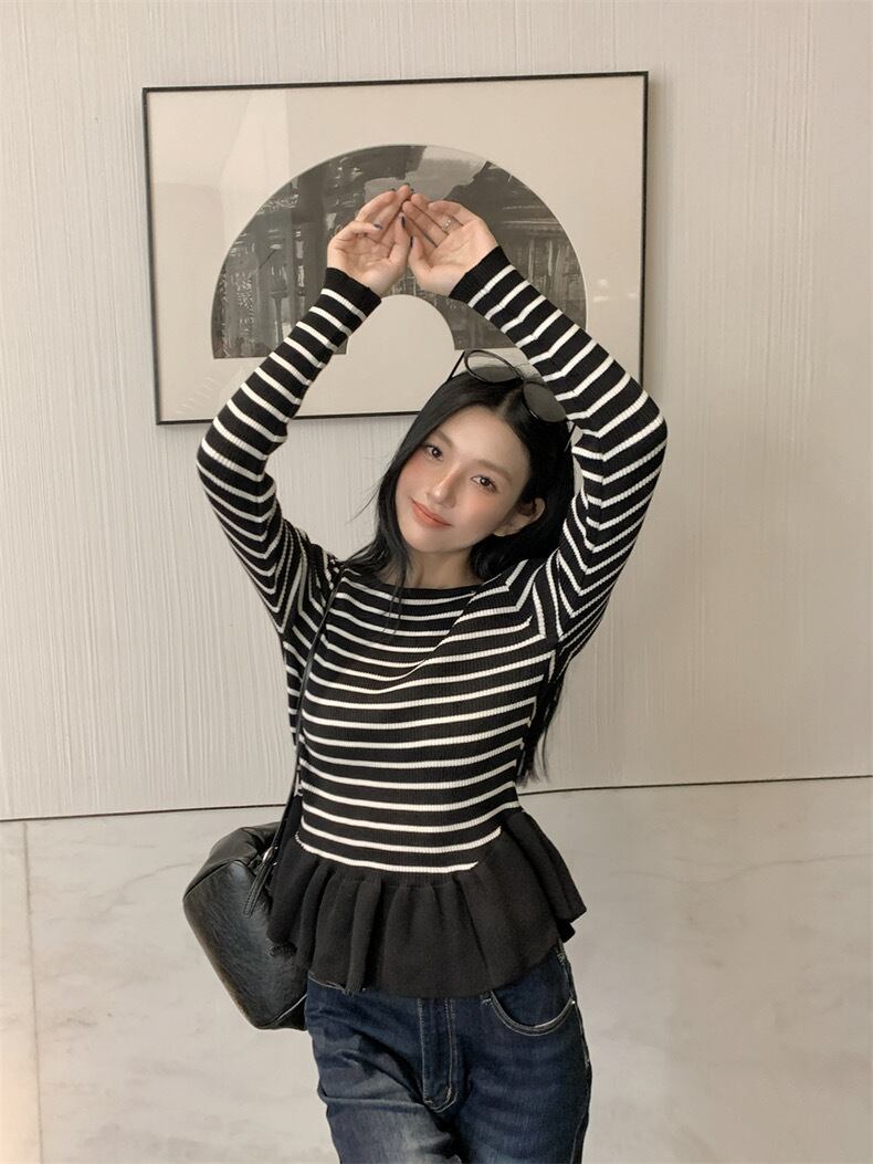 【tops】ぺプラムボーダーニットトップス2色 SY12023
