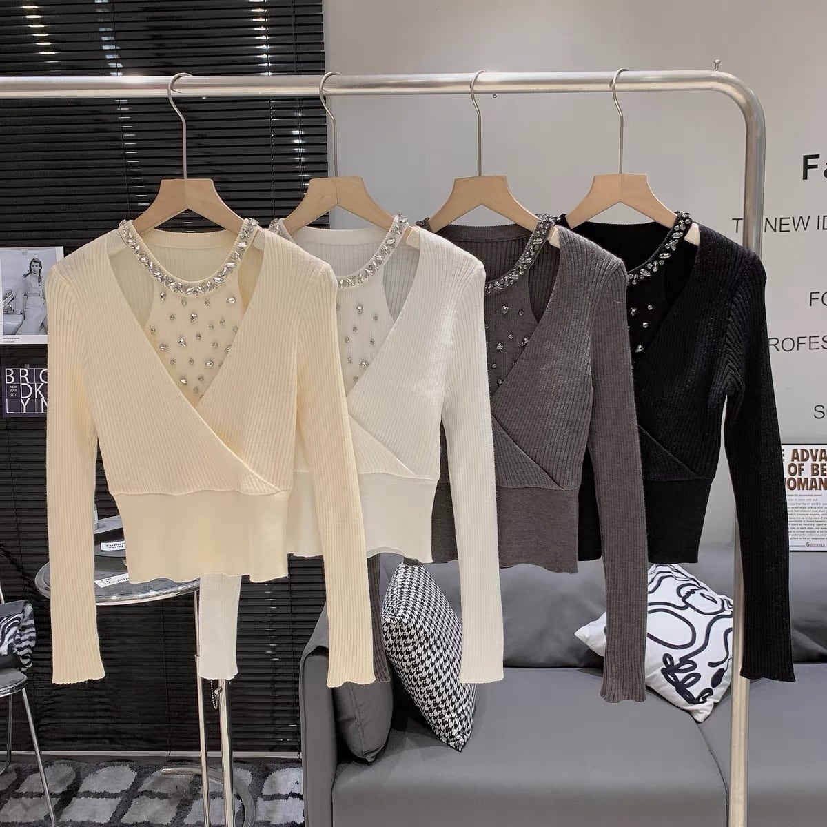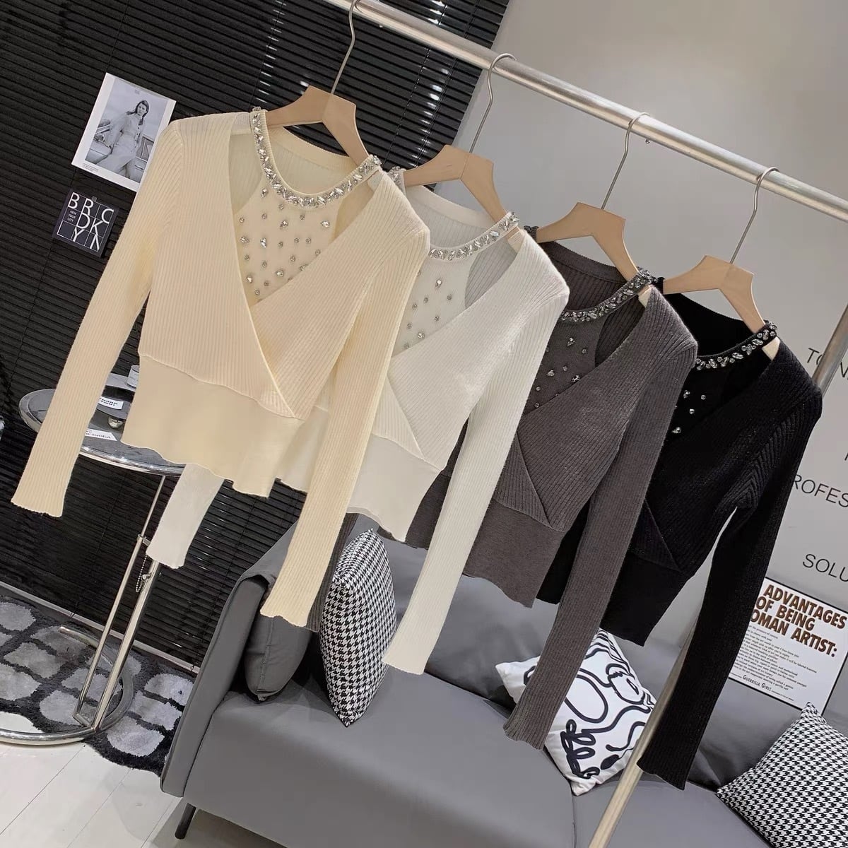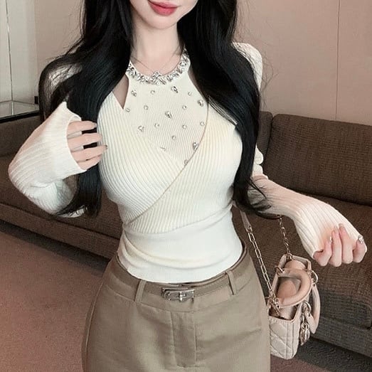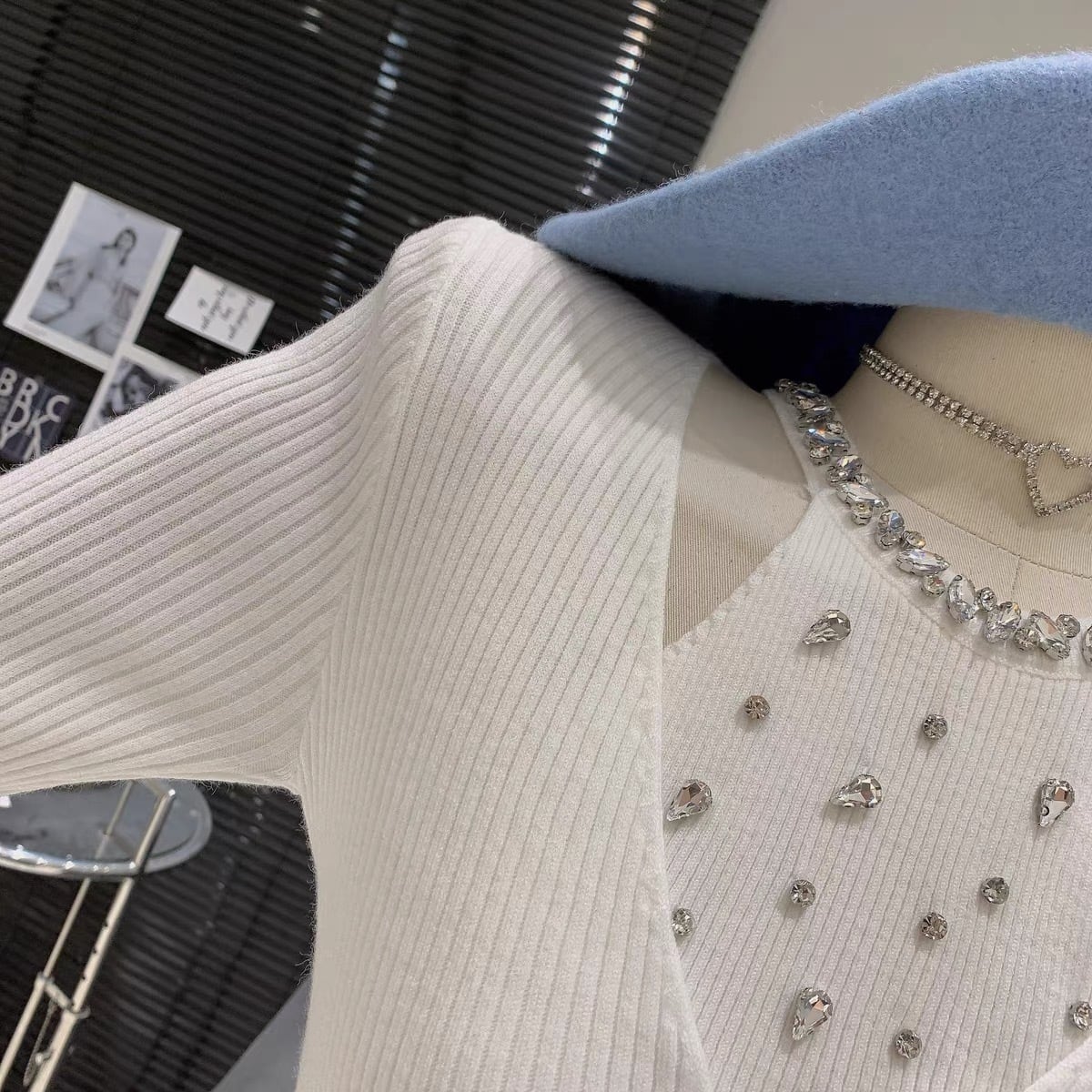 【tops】ビジュー付きレイヤード風ニットトップス4色 XT12031