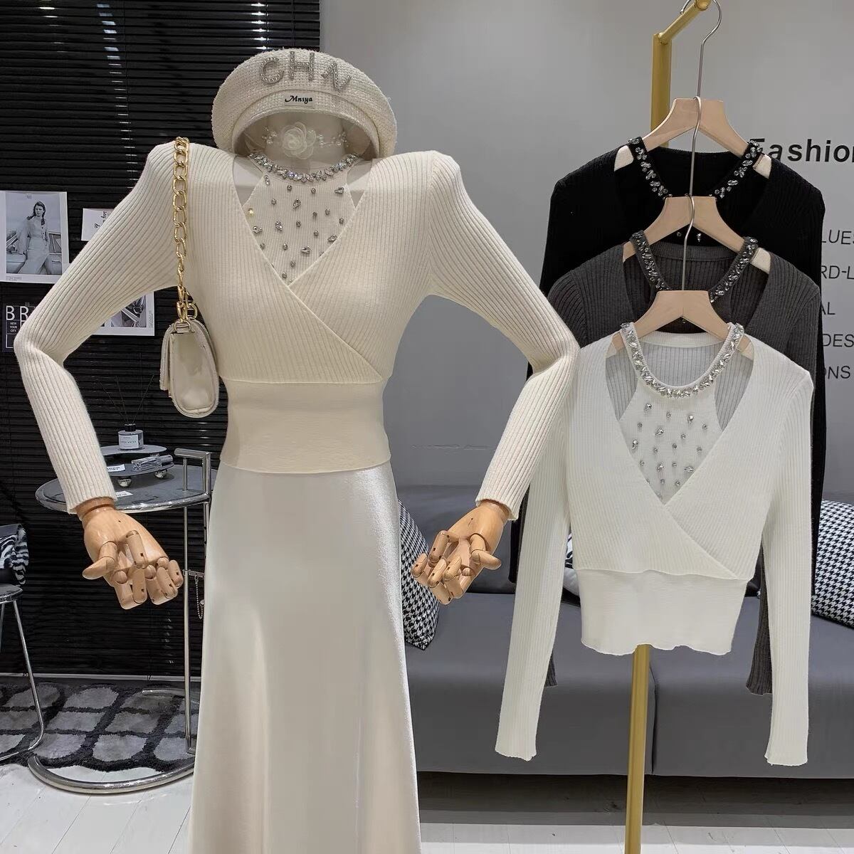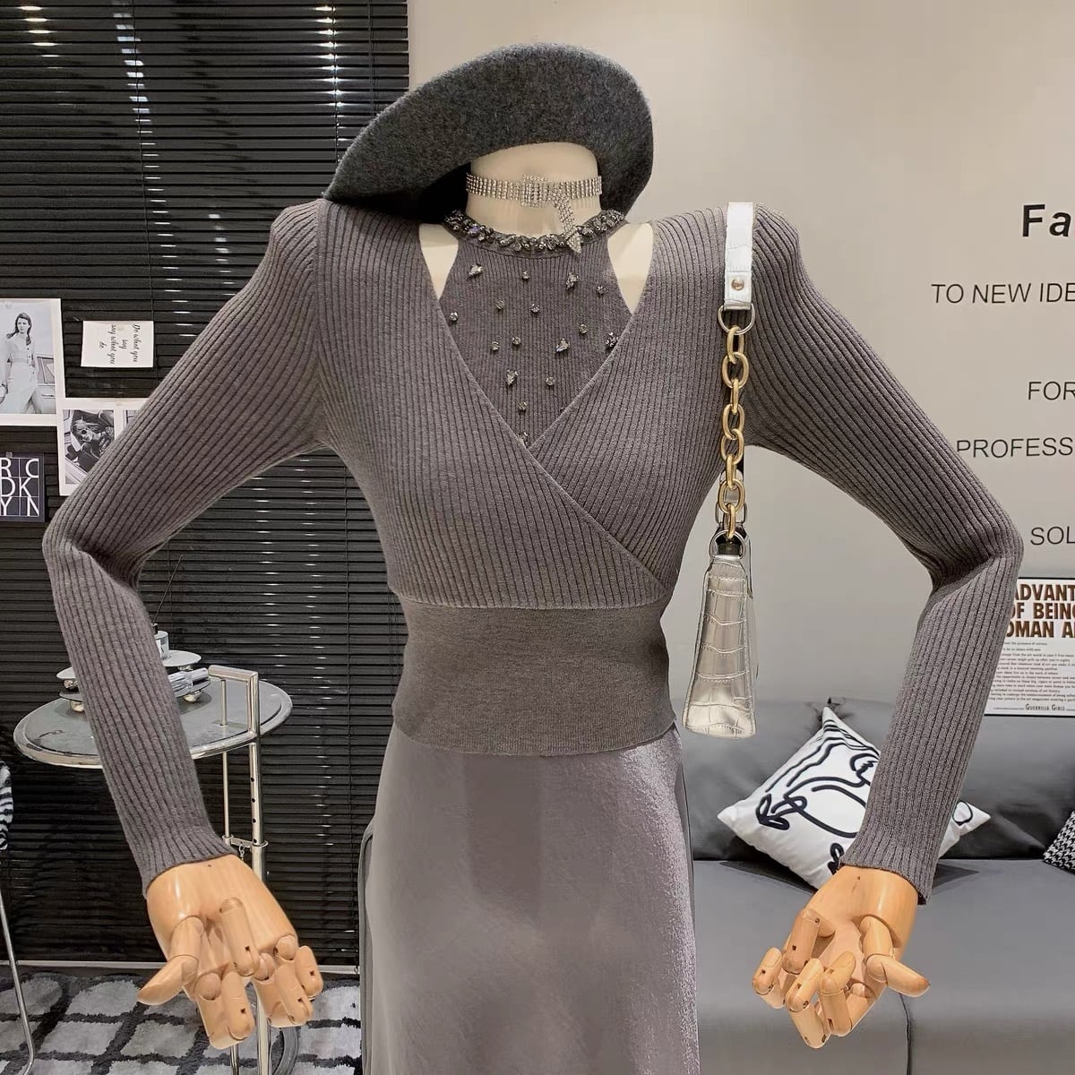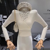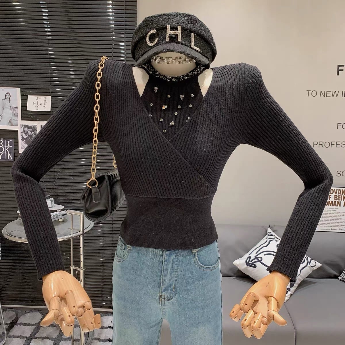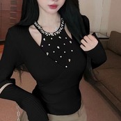 【tops】ビジュー付きレイヤード風ニットトップス4色 XT12031