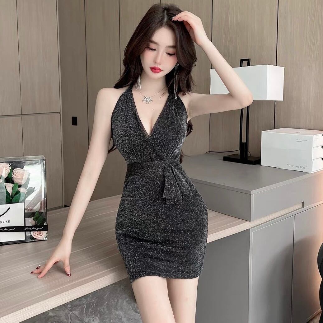 【dress】深ネックキラキラセクシーワンピース FQ0066