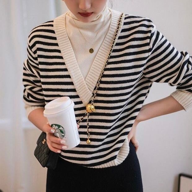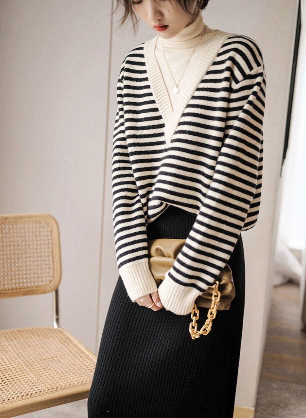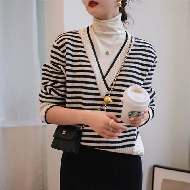 【tops】レイヤード風ボーダーニットトップス PX12040