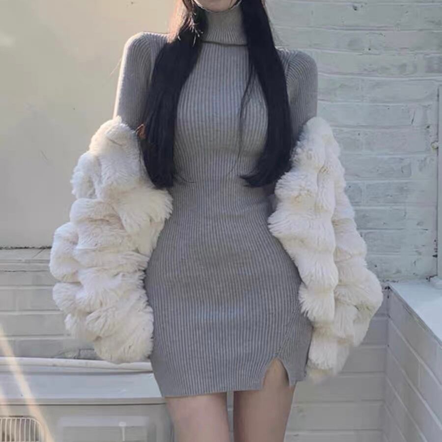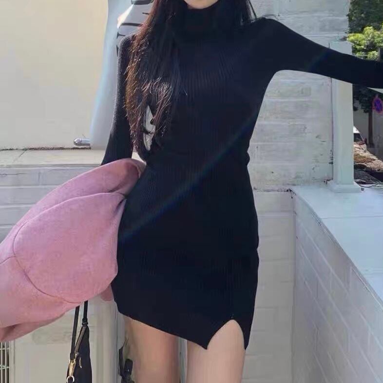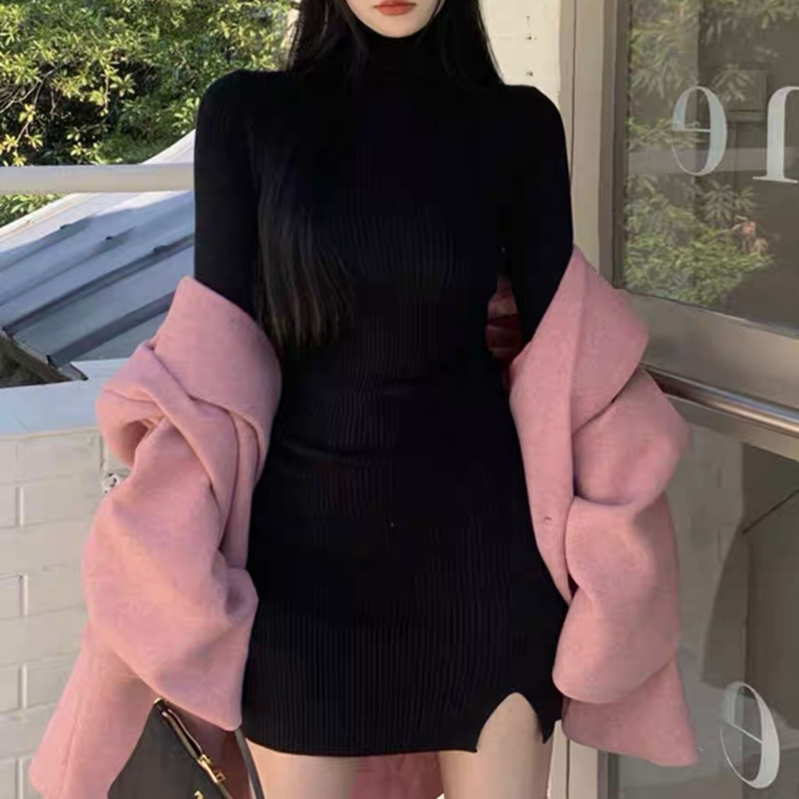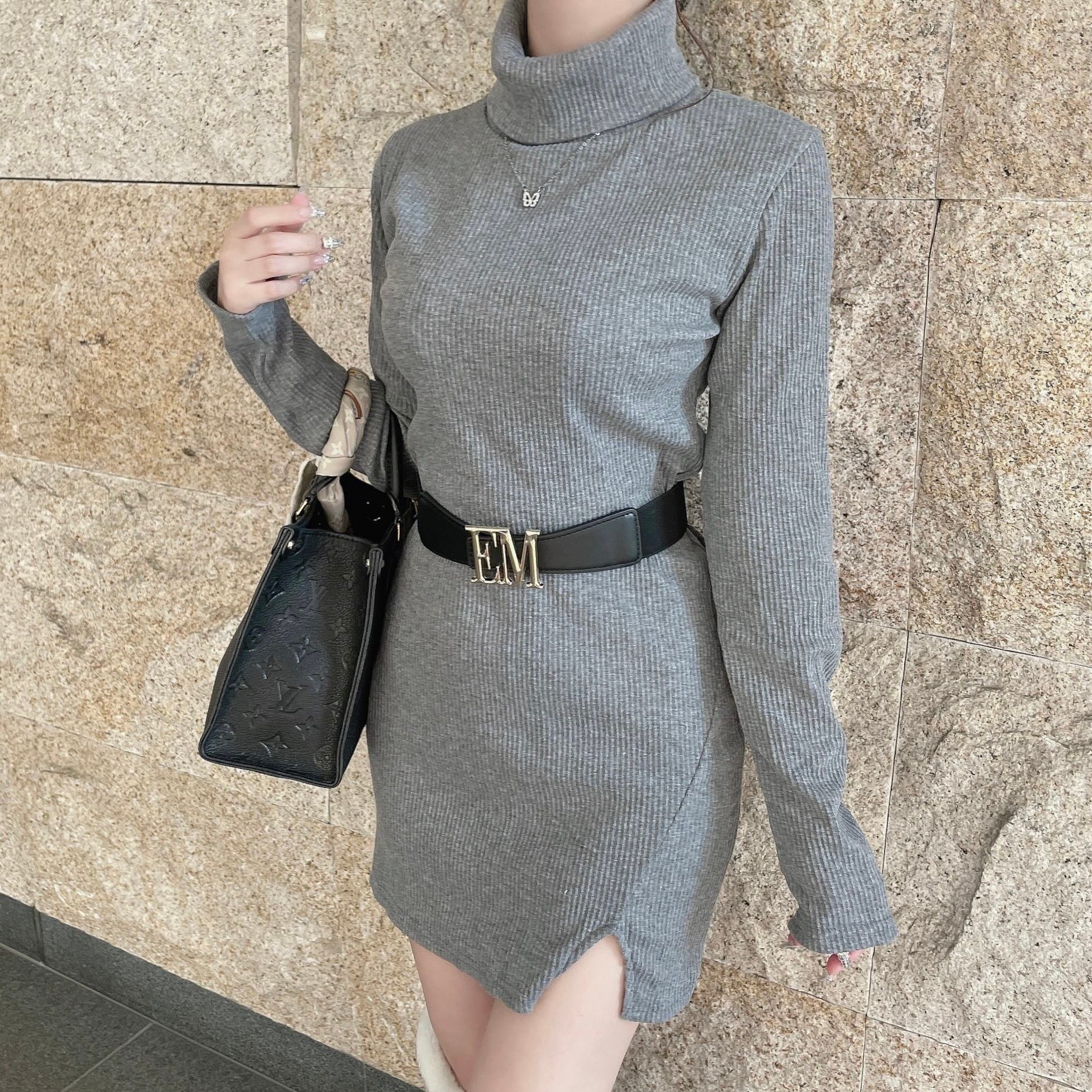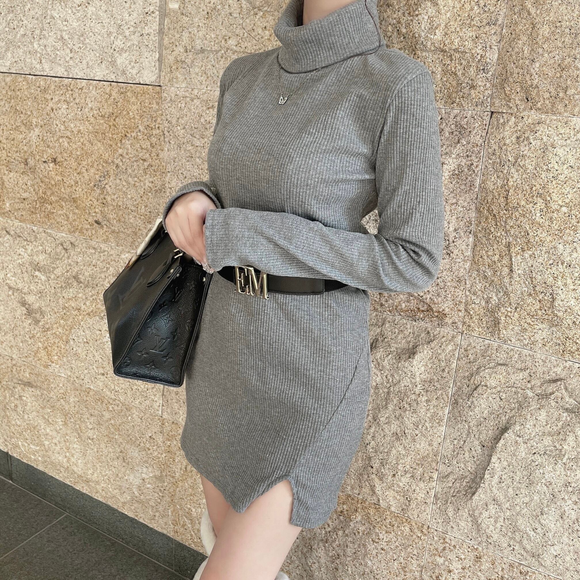 【dress】スリット入りタートルネックワンピース 2色 FQ0071