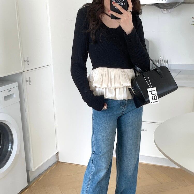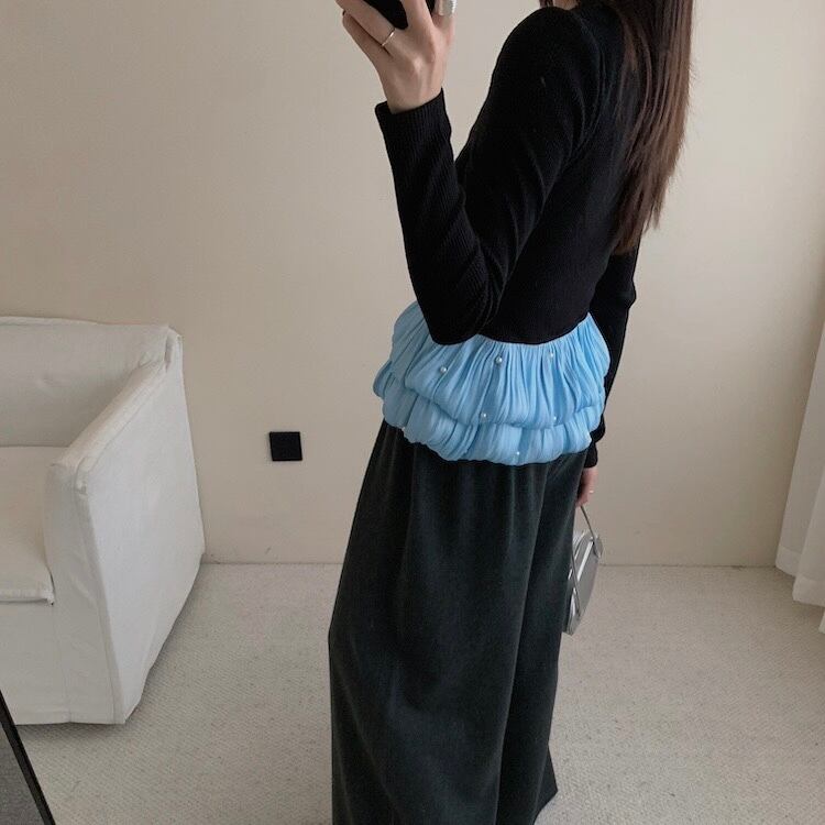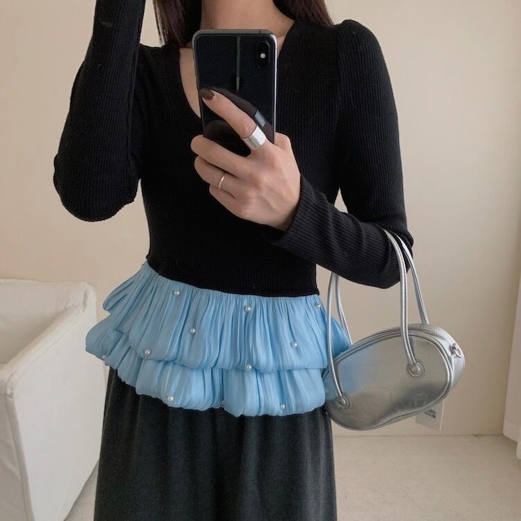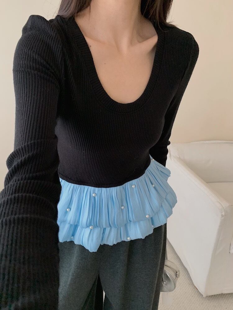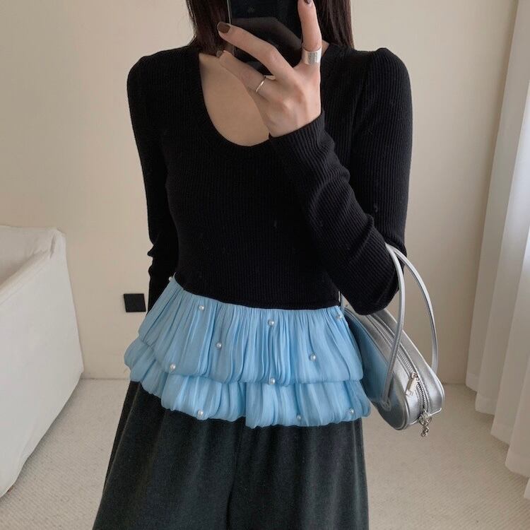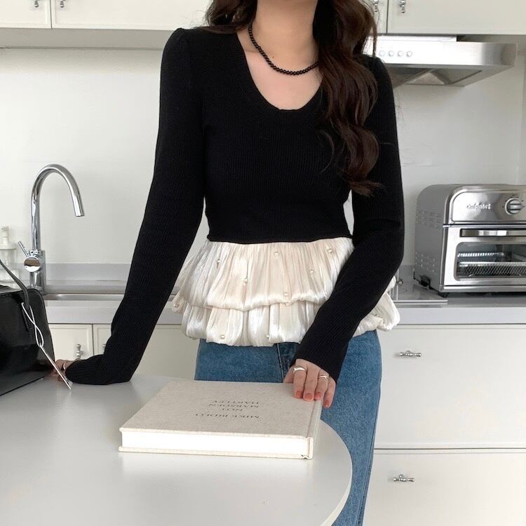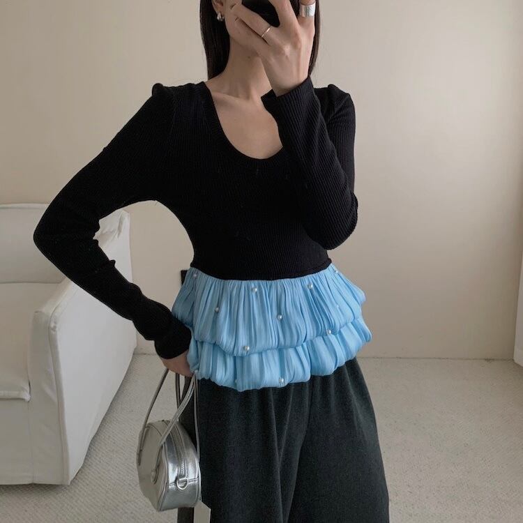 【tops】ニットドッキングフリルトップス2色 HB12055