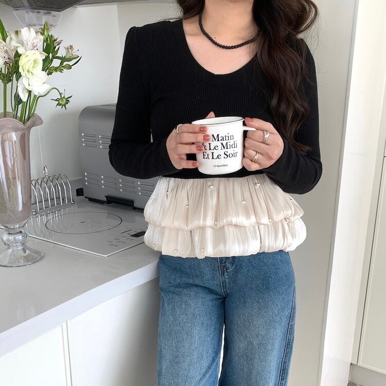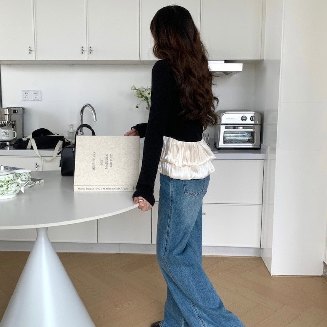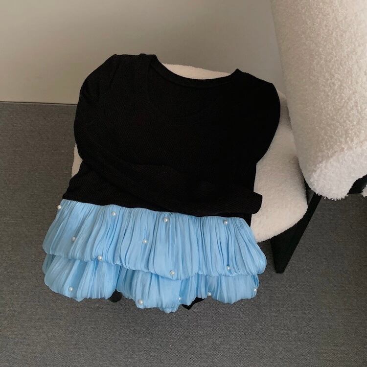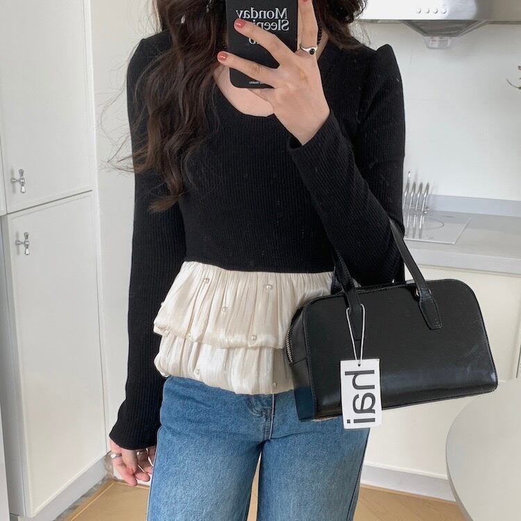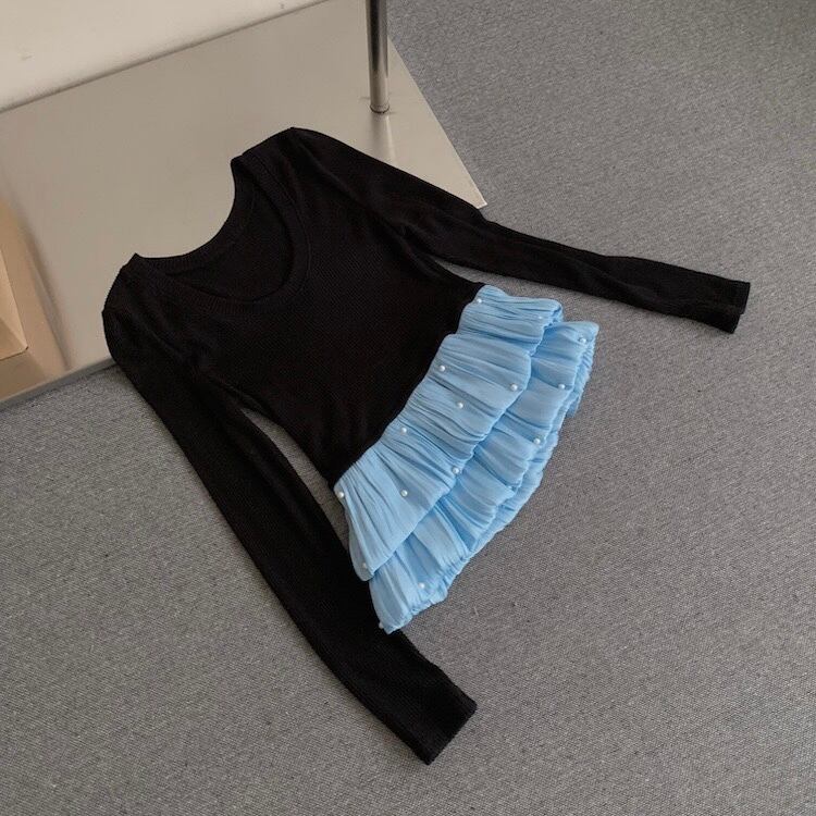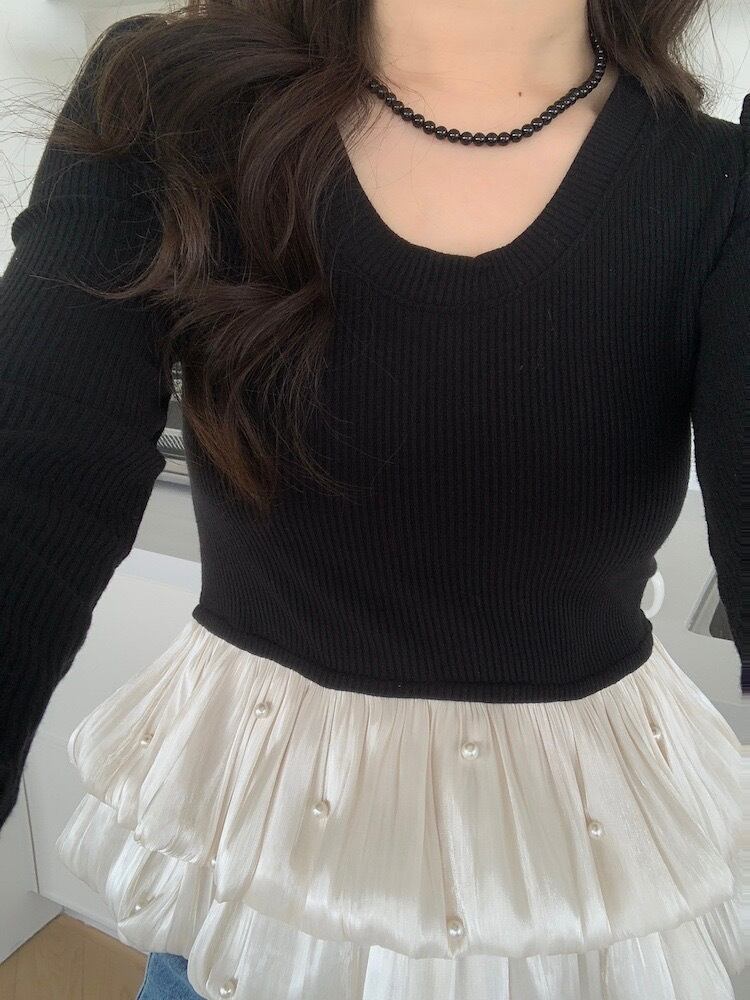 【tops】ニットドッキングフリルトップス2色 HB12055
