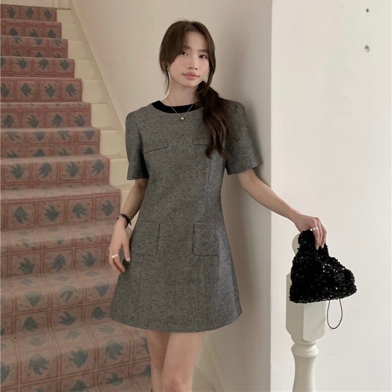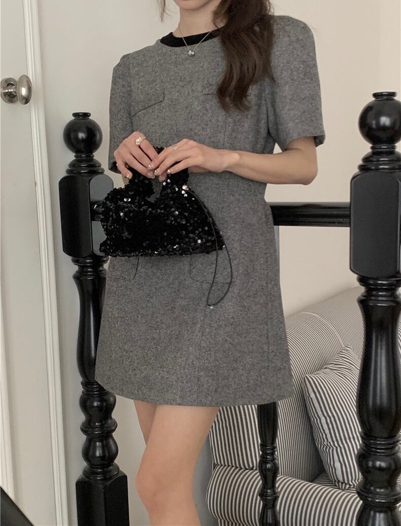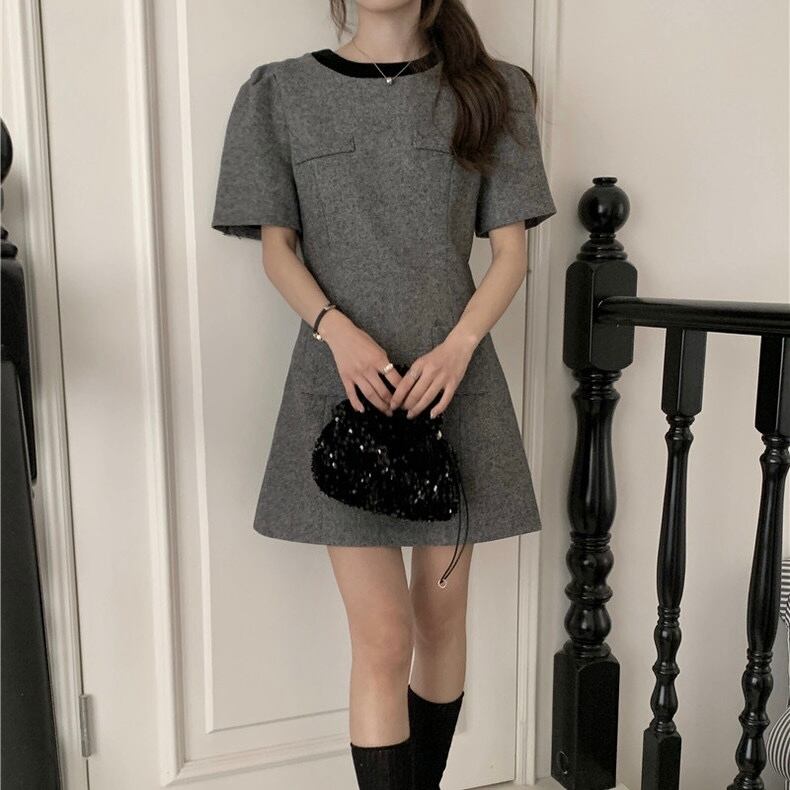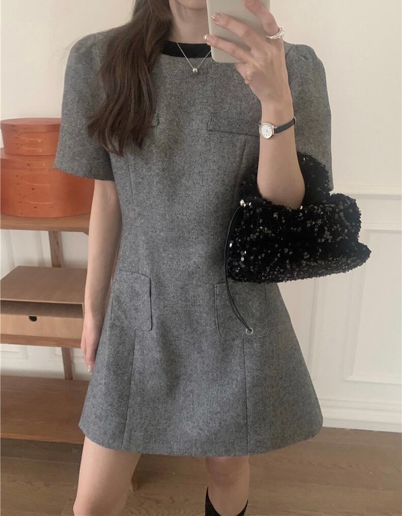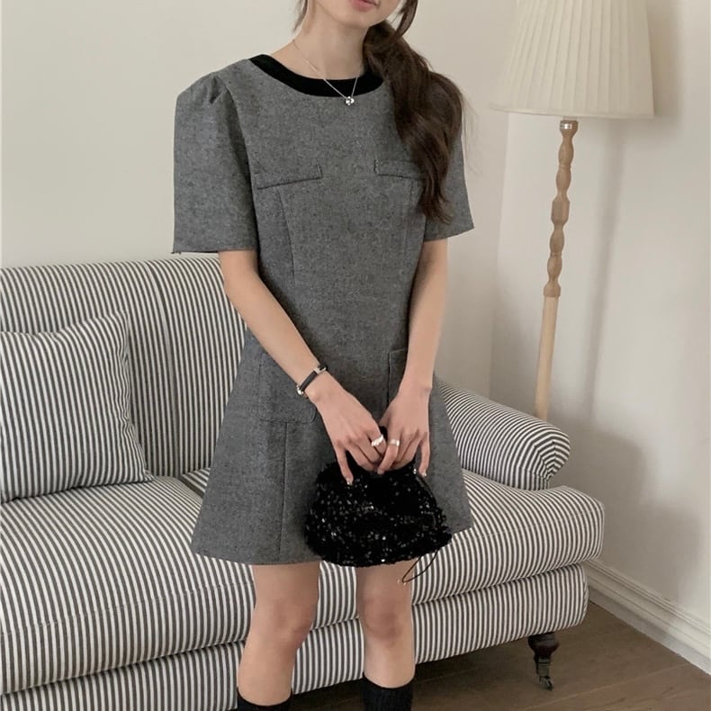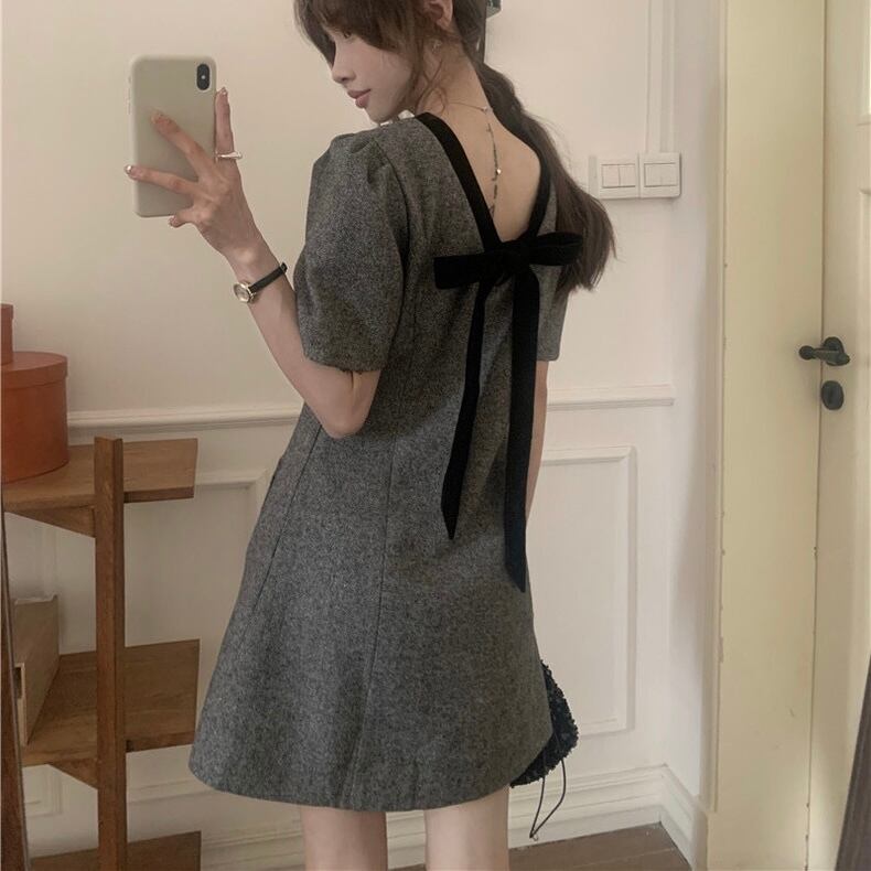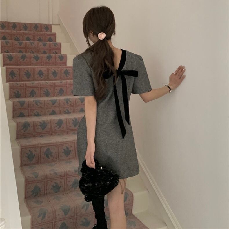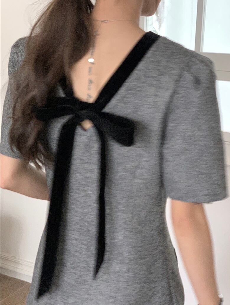 【dress】バックリボンフレンチ配色ワンピース HB12061