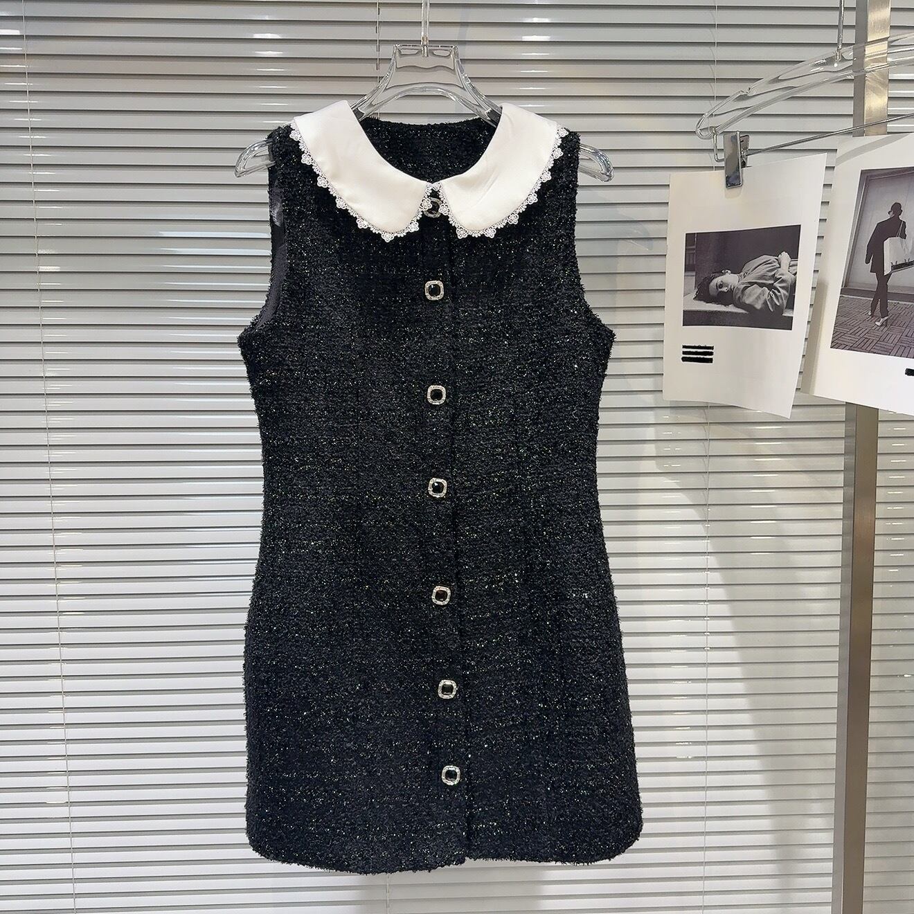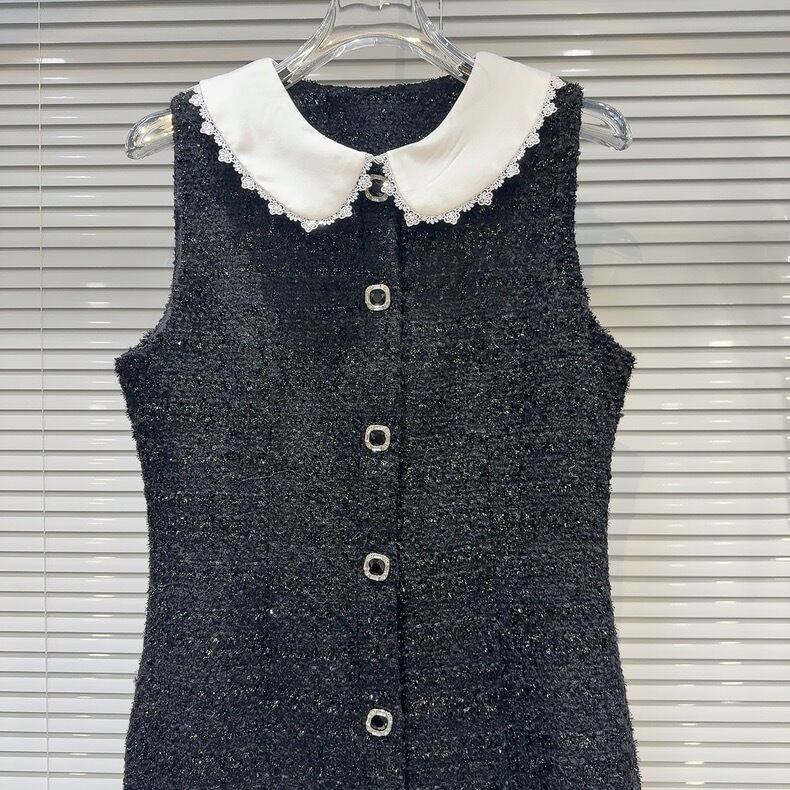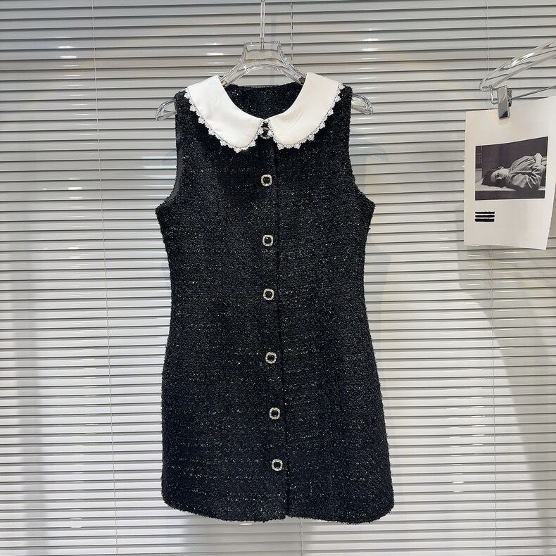 【dress】ビッグ襟フロントボタンツイードワンピース HB12062