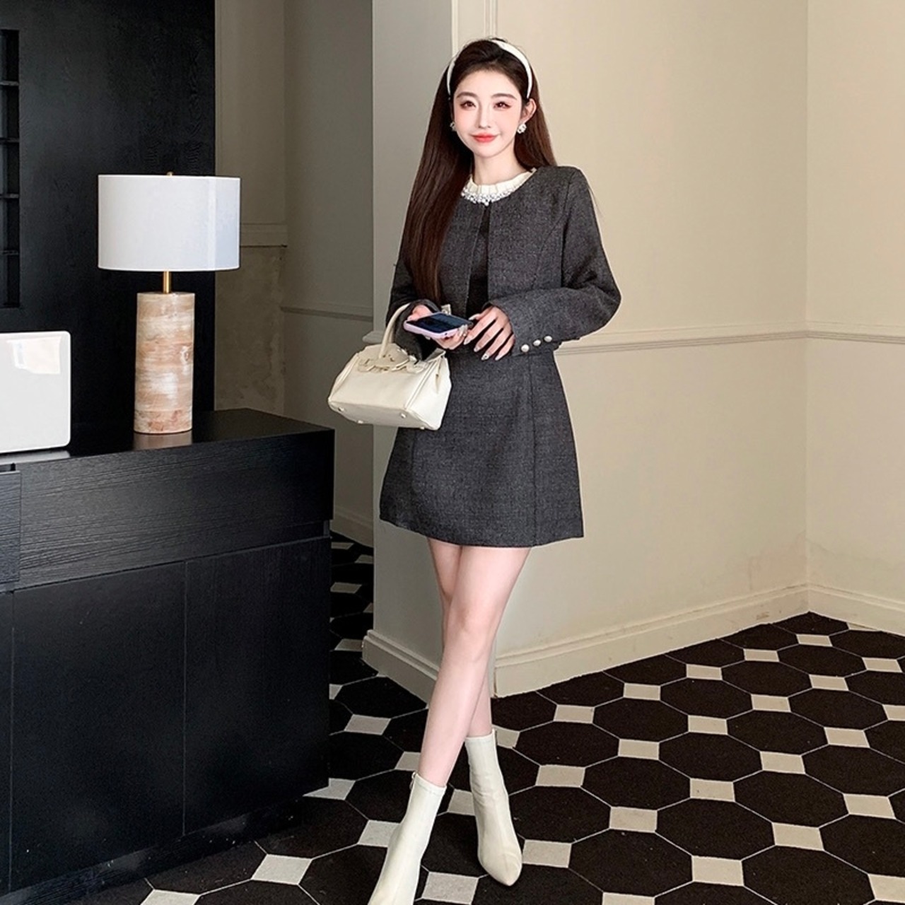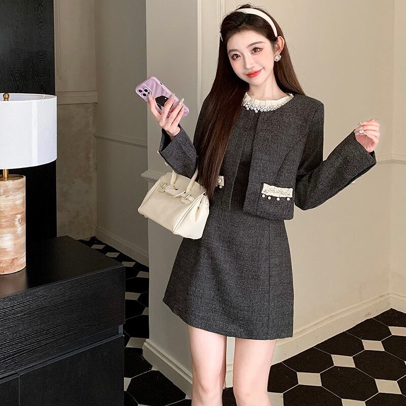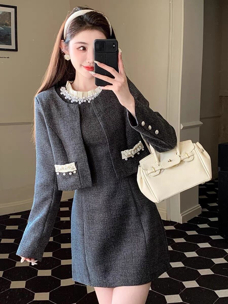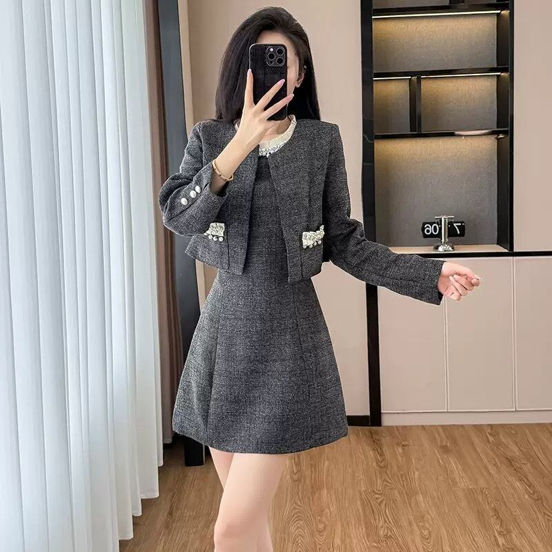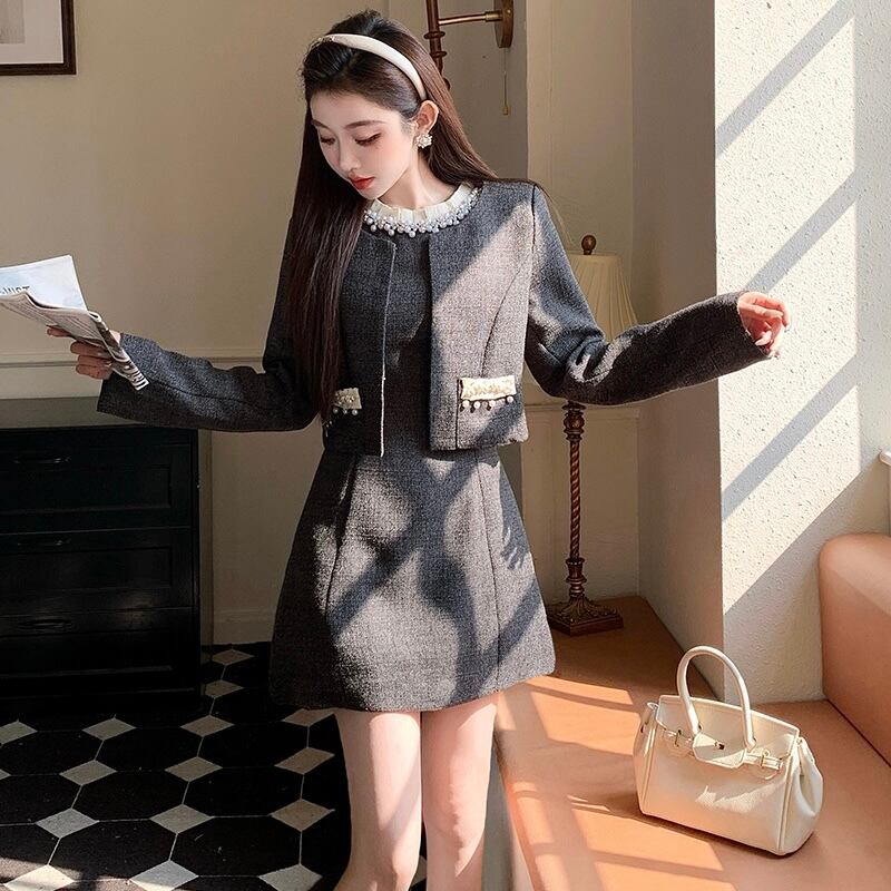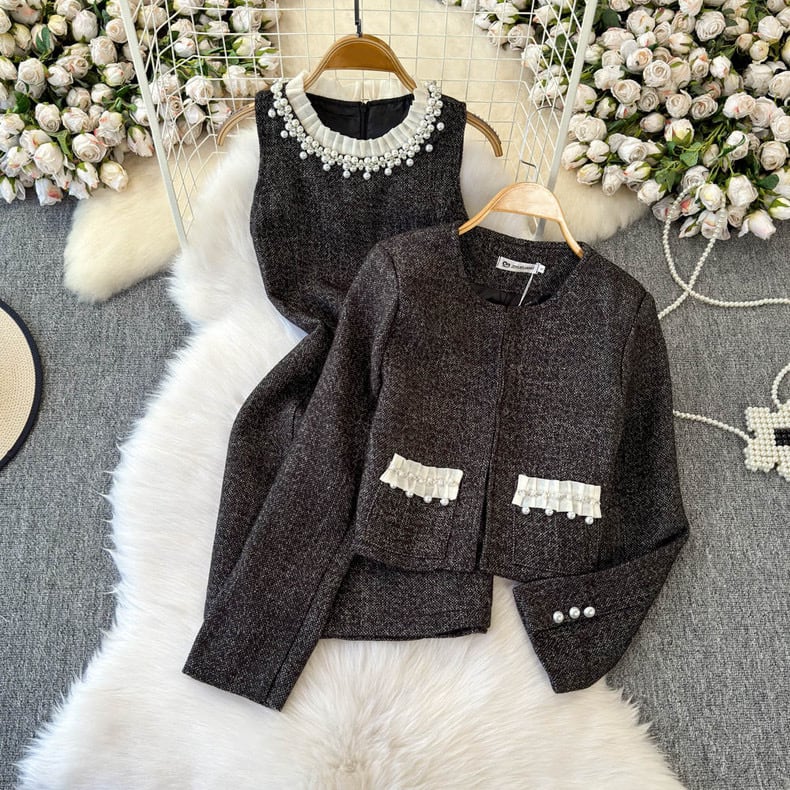 【set】ビジュー付きノースリーブワンピxジャケット HB12154
