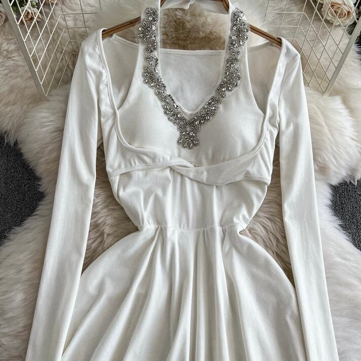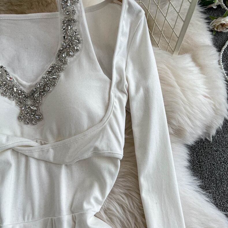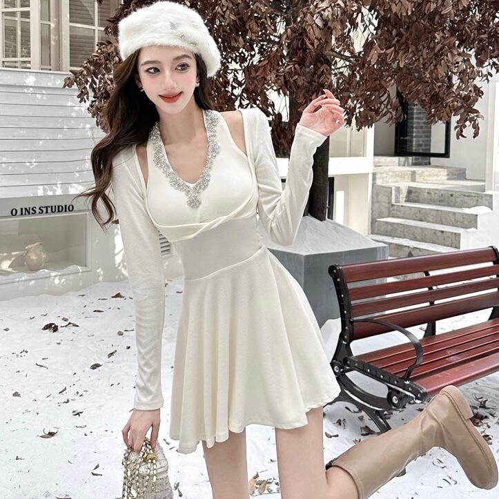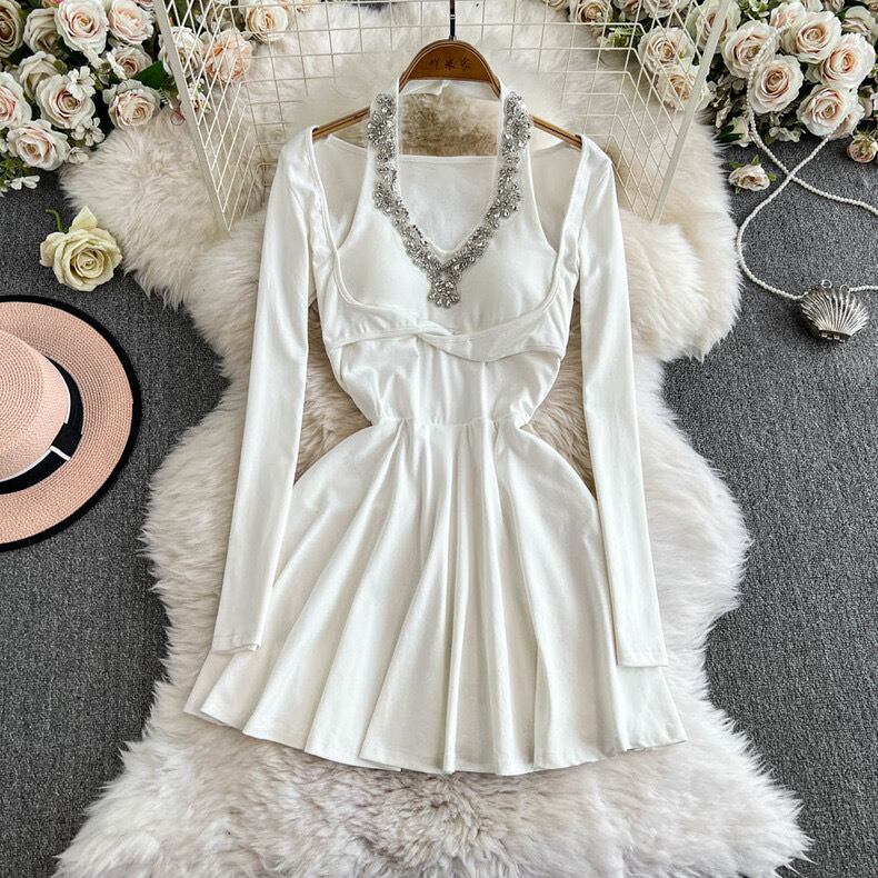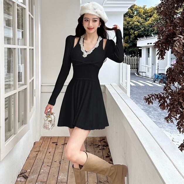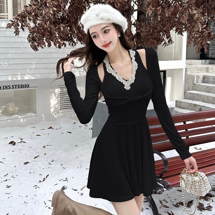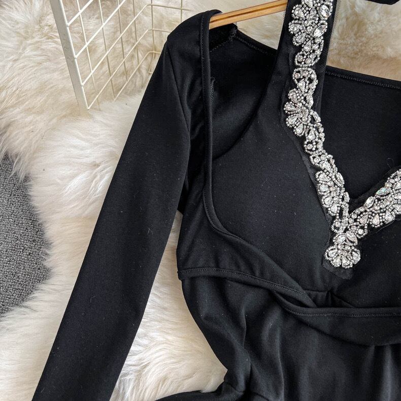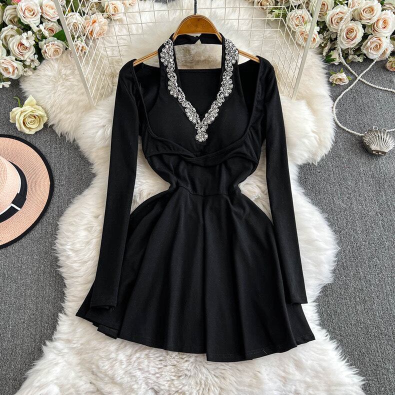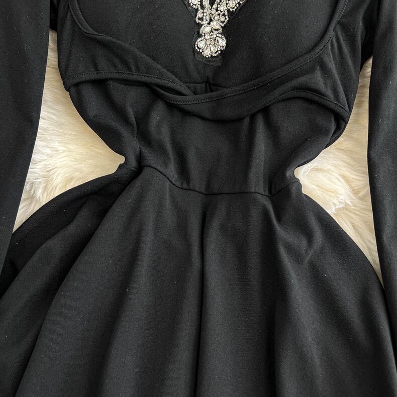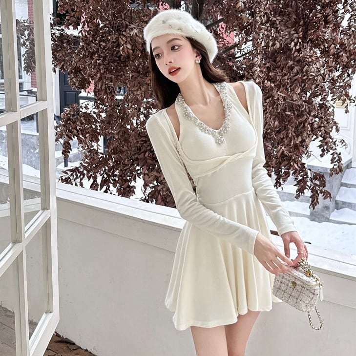 【dress】純欲ビジュー付きミニドレス2色 HB12162