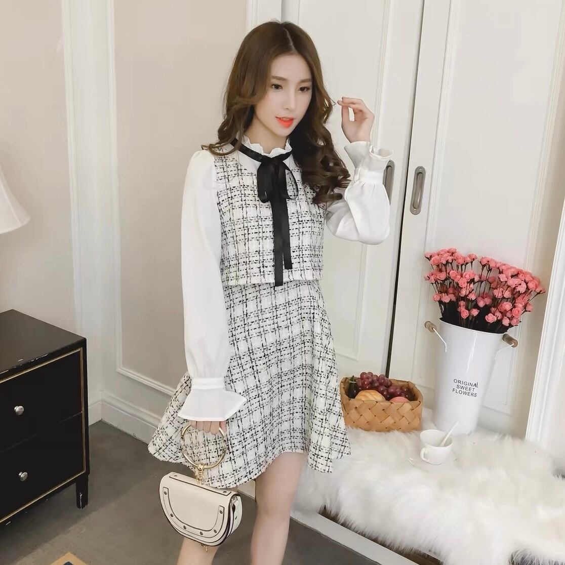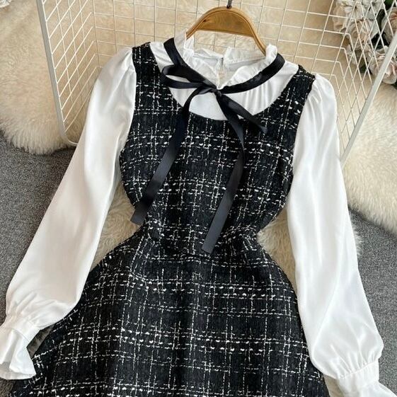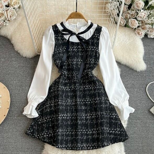 【dress】レイヤード風リボンワンピース2色 OP12213