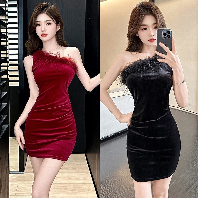 【dress】ファーショルダーベルベットワンピース2色 HX12241