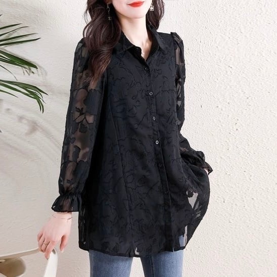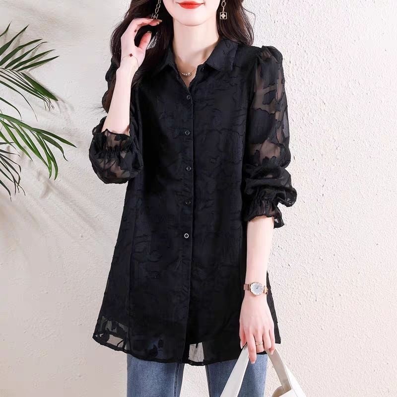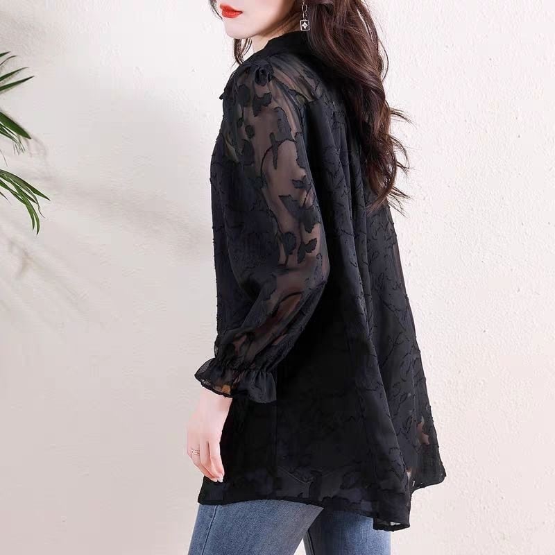 【tops】ゆったりフリル袖レースシャツトップス HX12248