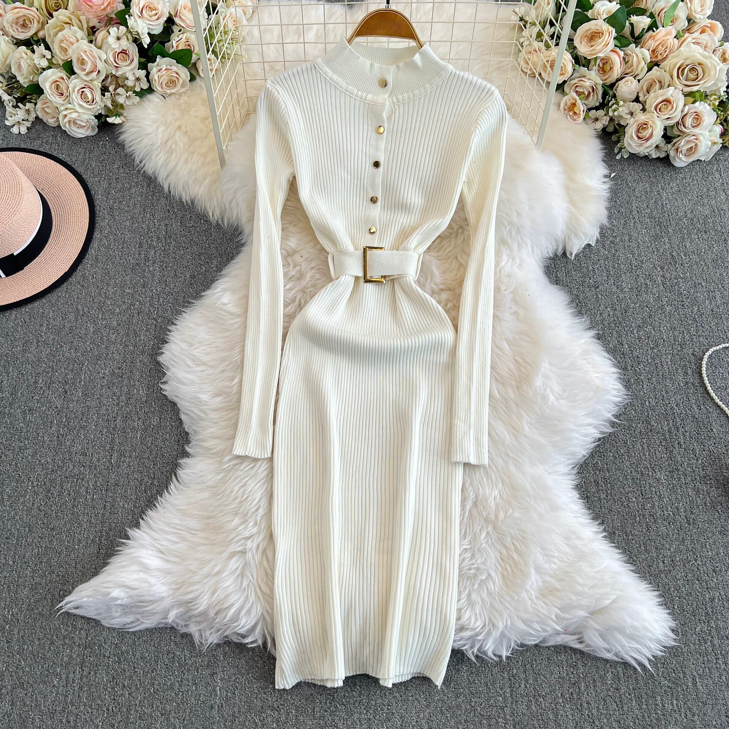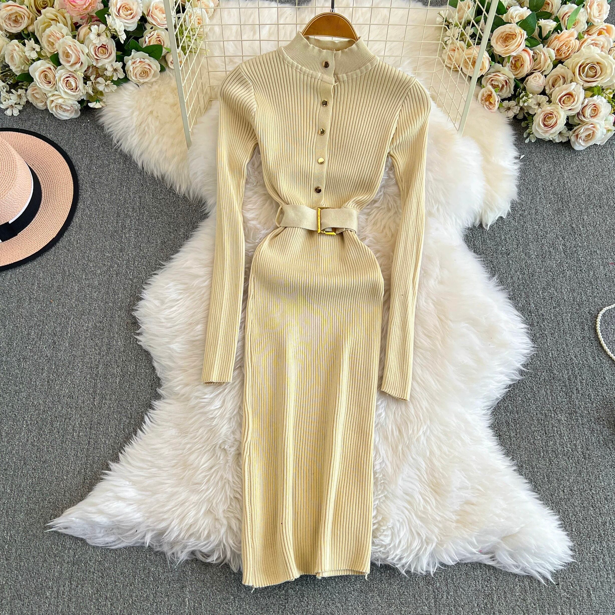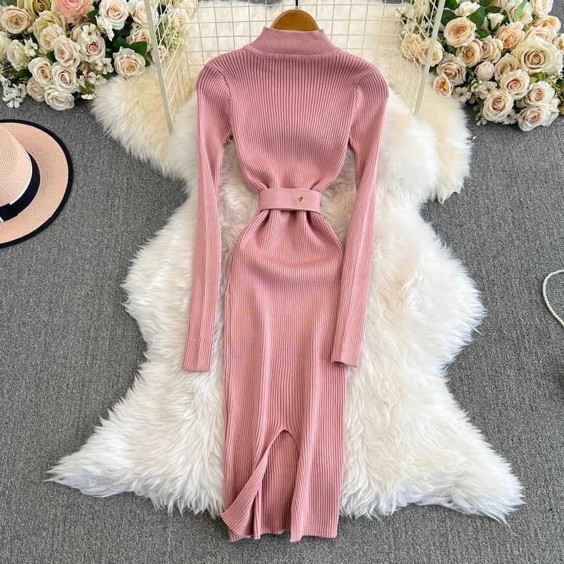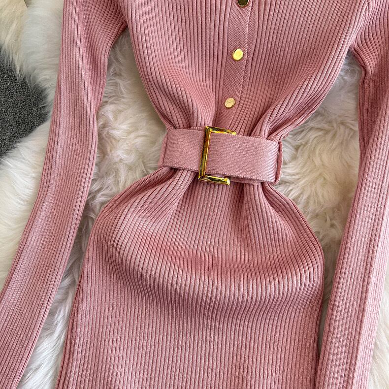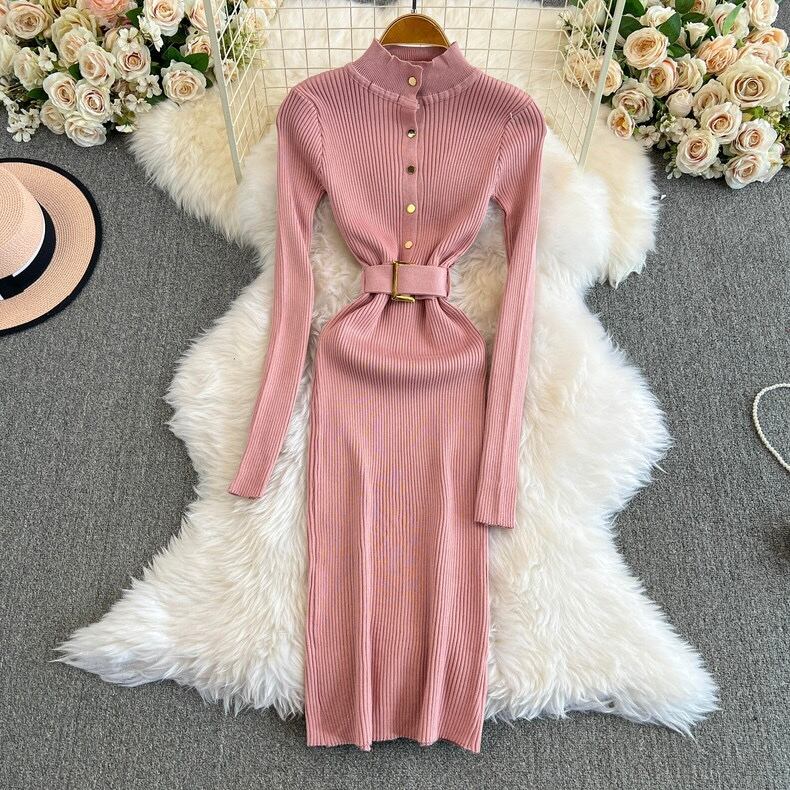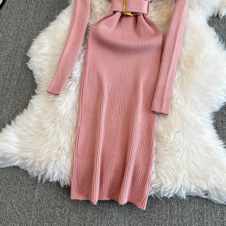 【dress】ベルト付きニットワンピース8色 HX12247