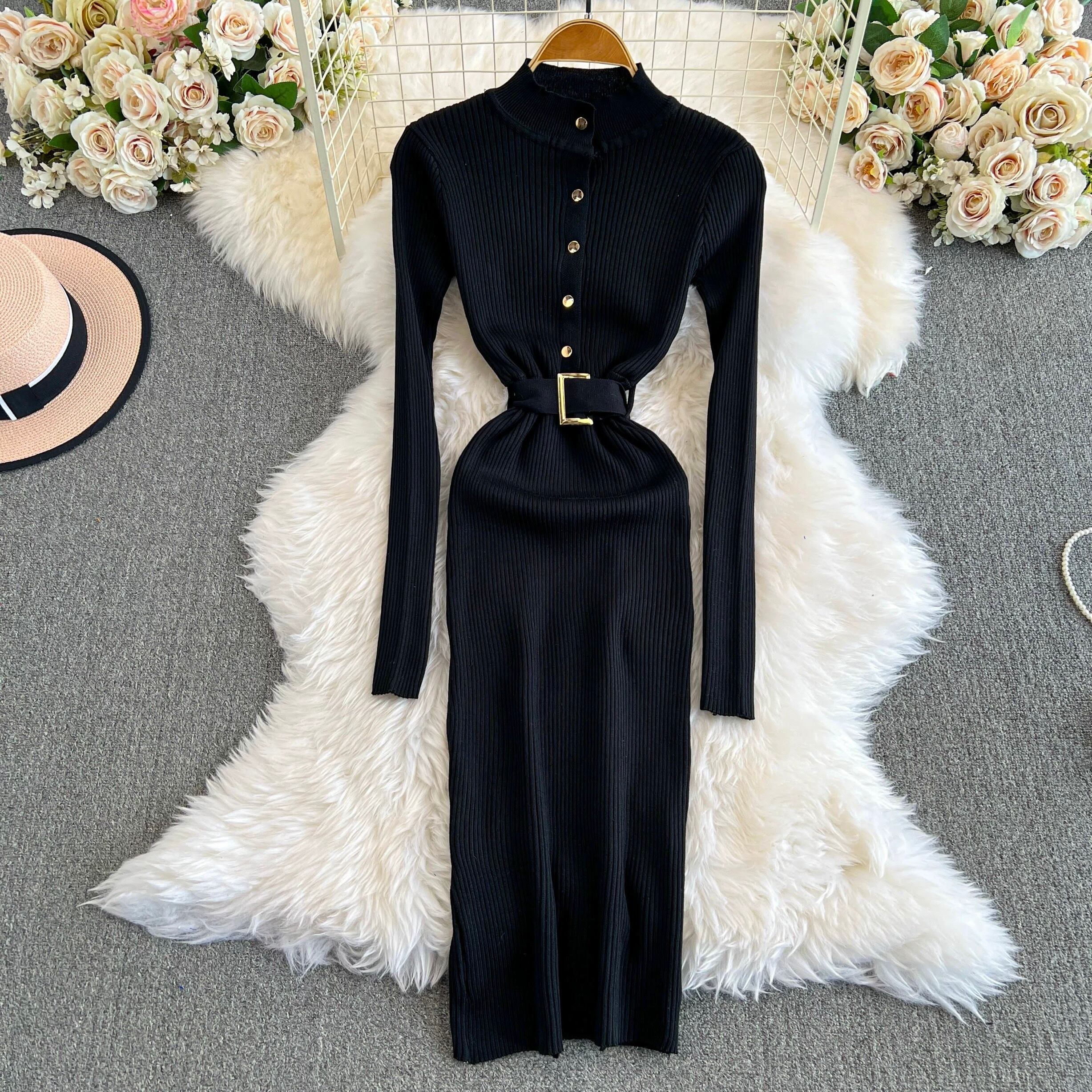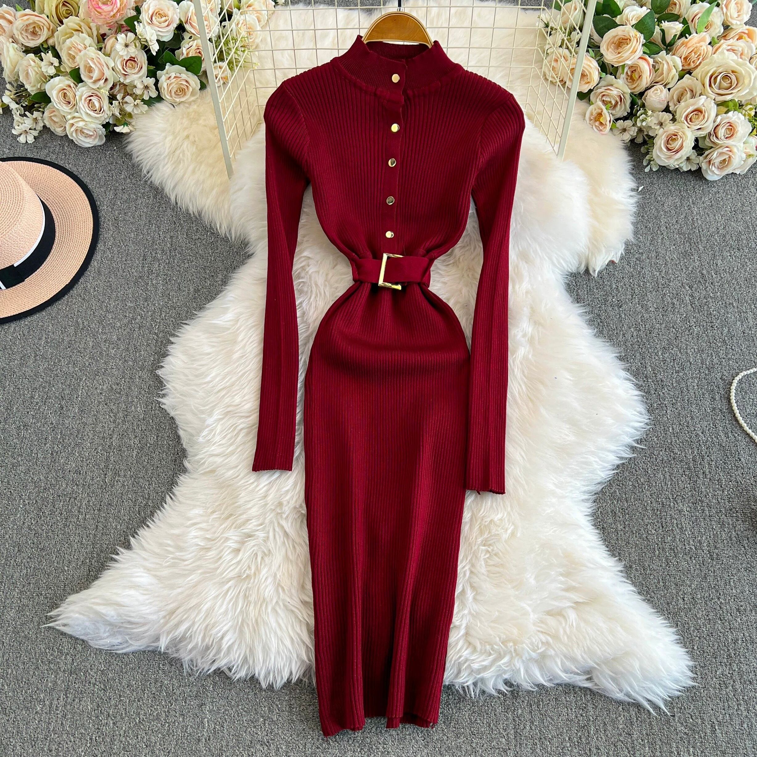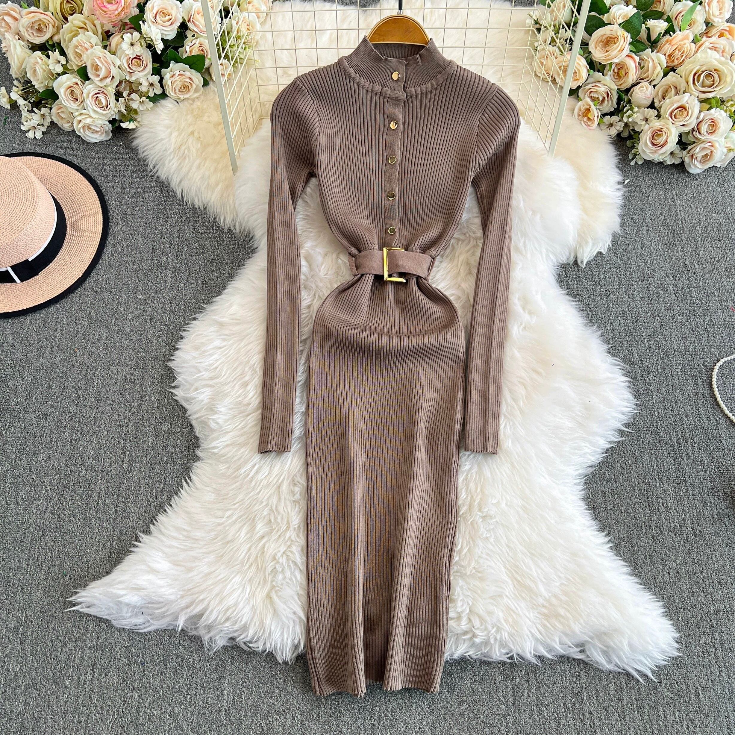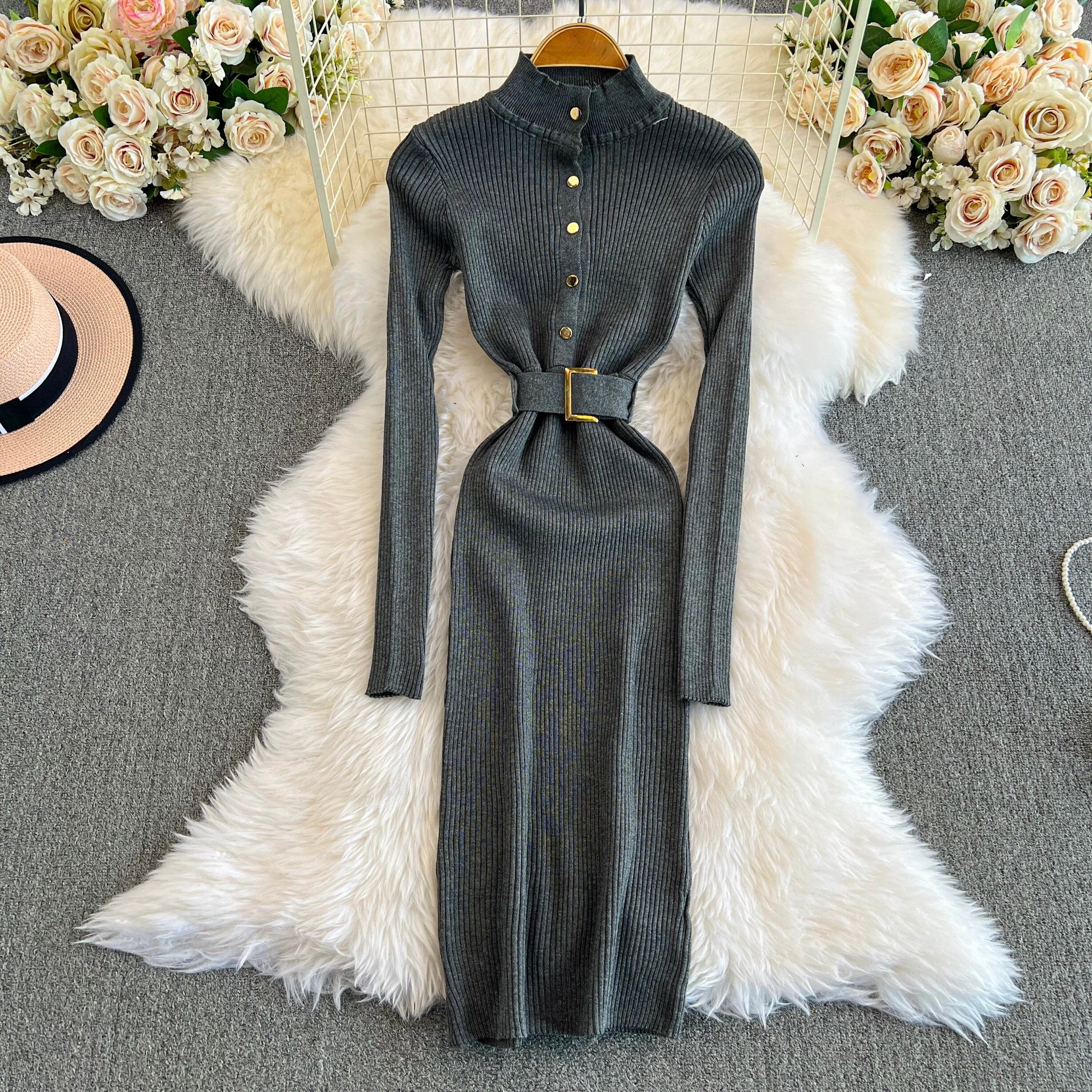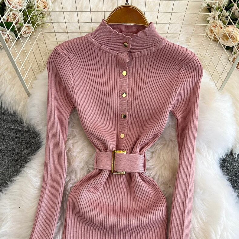 【dress】ベルト付きニットワンピース8色 HX12247