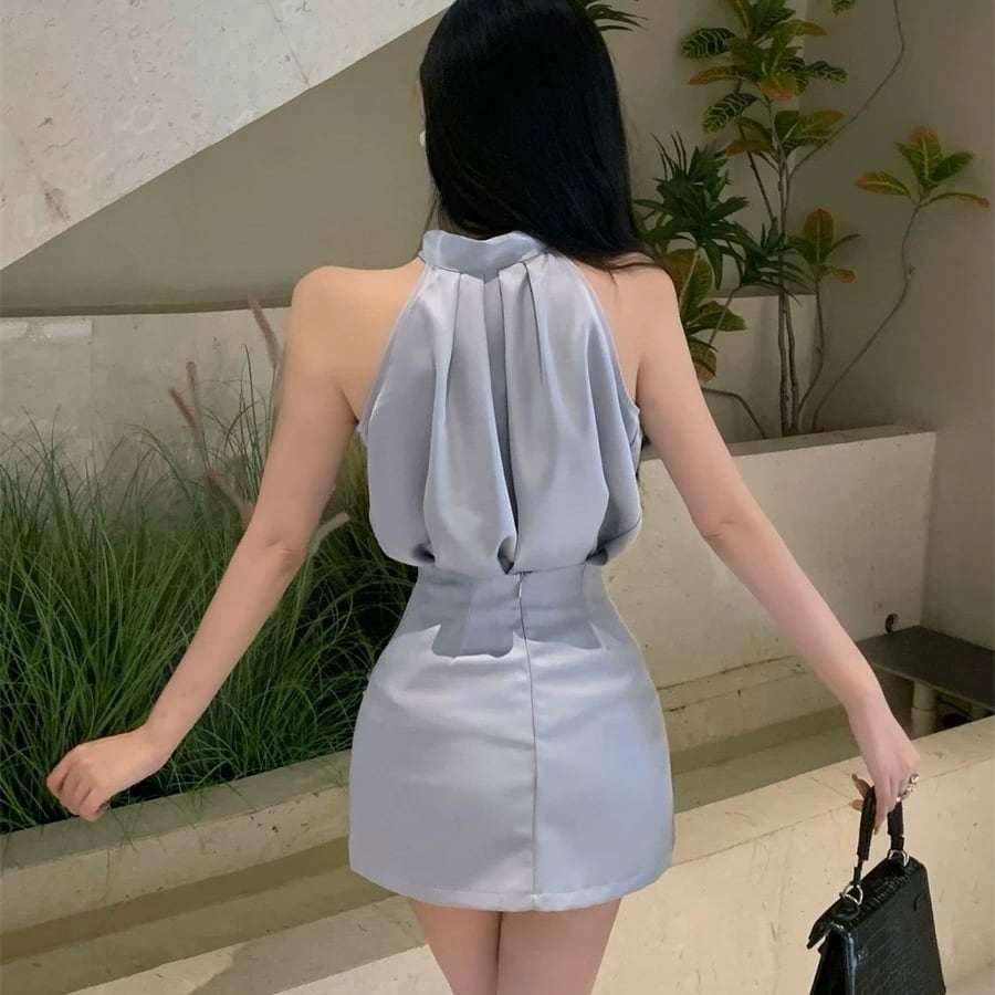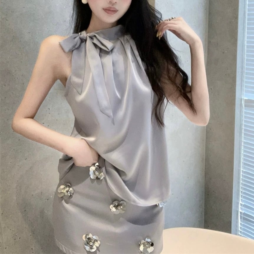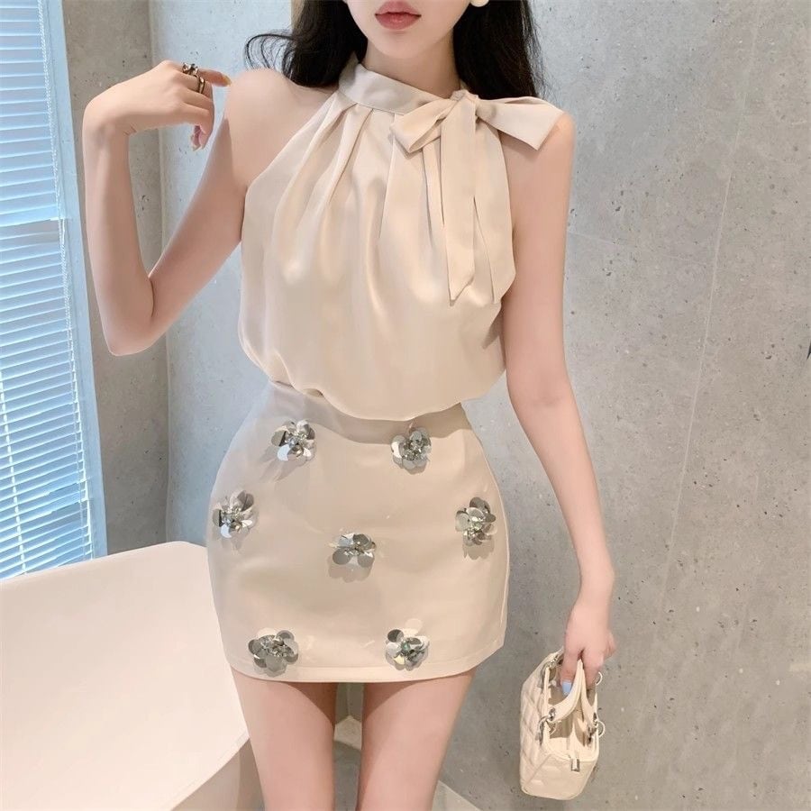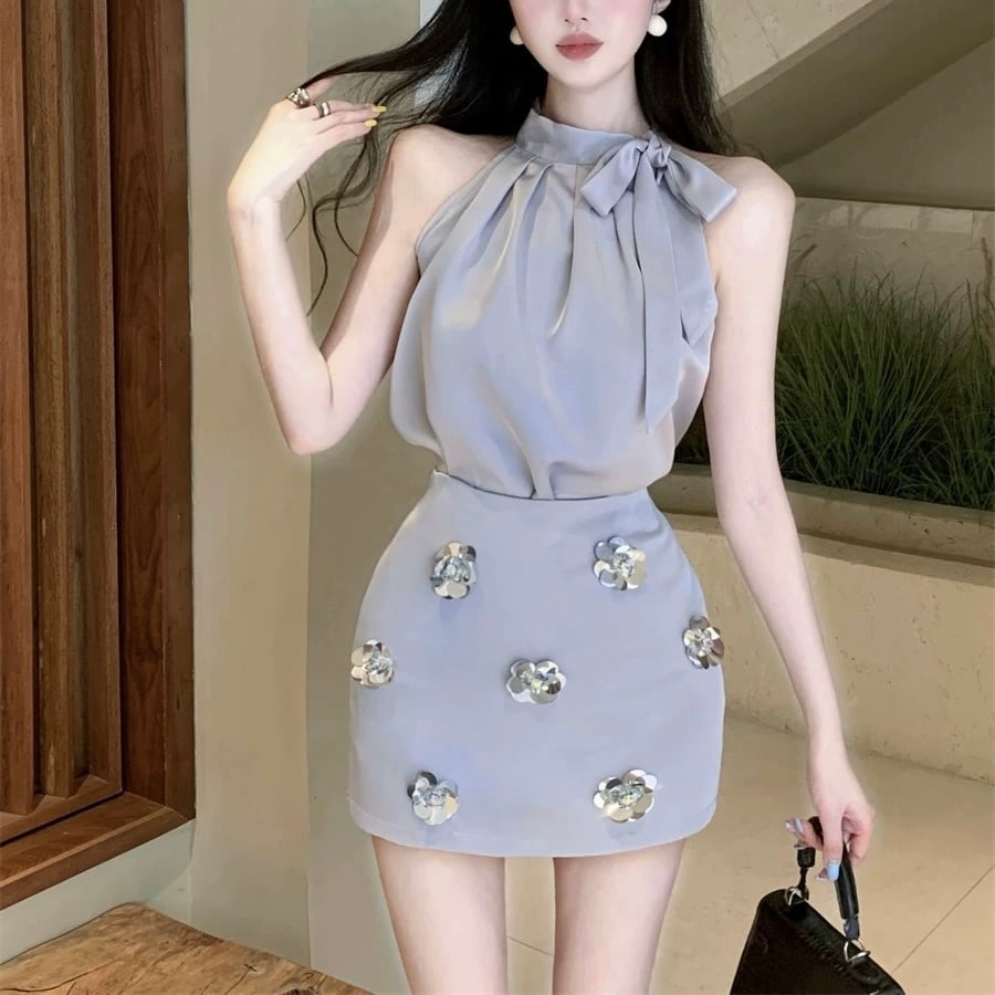 【set】ホルターネックトップスxフラワースカート2色 HX12261