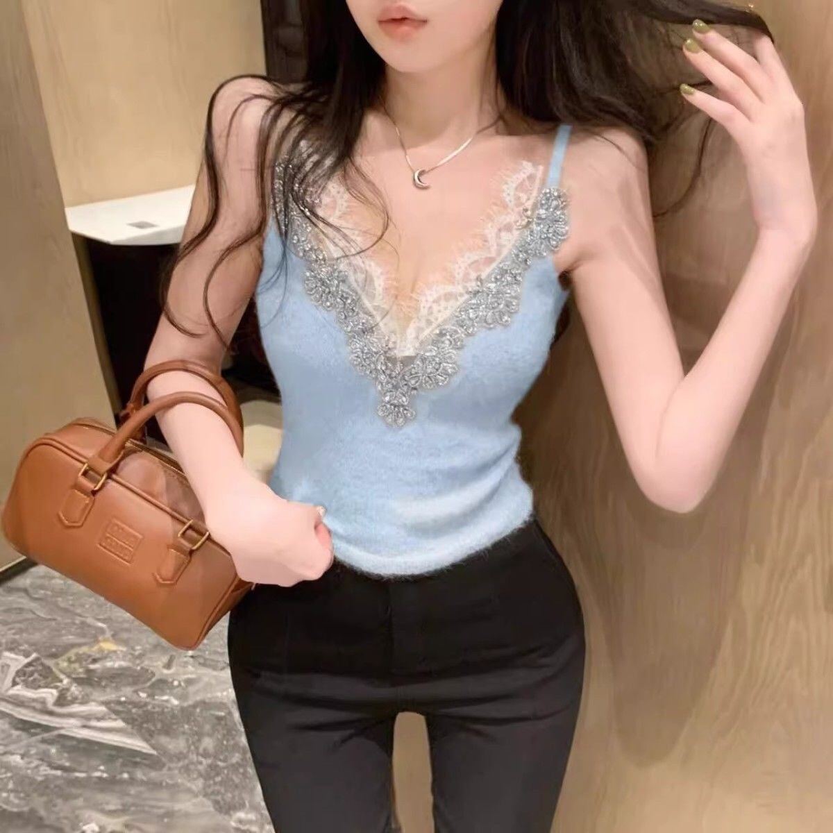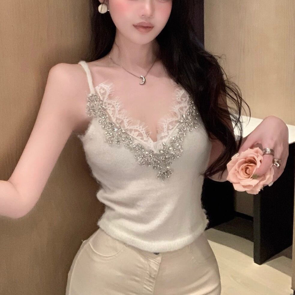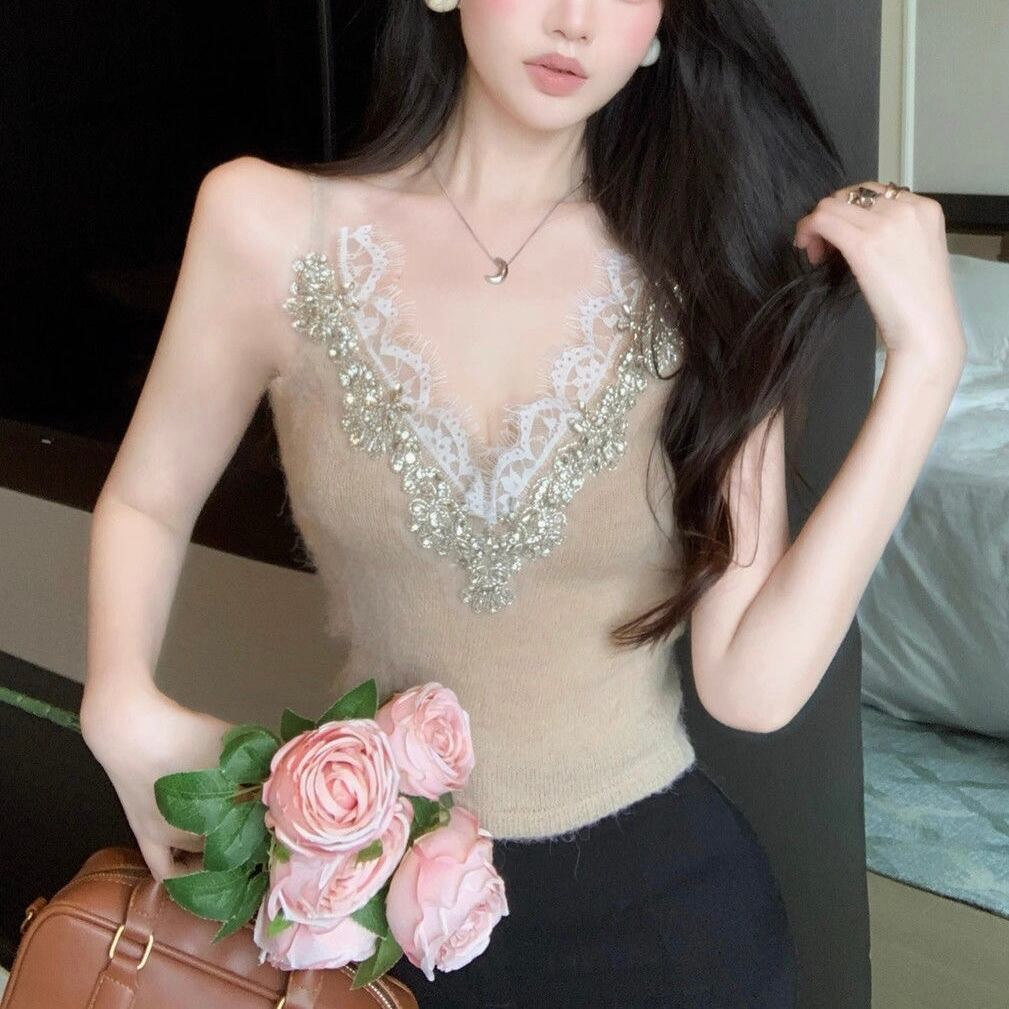 【tops】レースVネックビジューキャミソール3色 HX12263