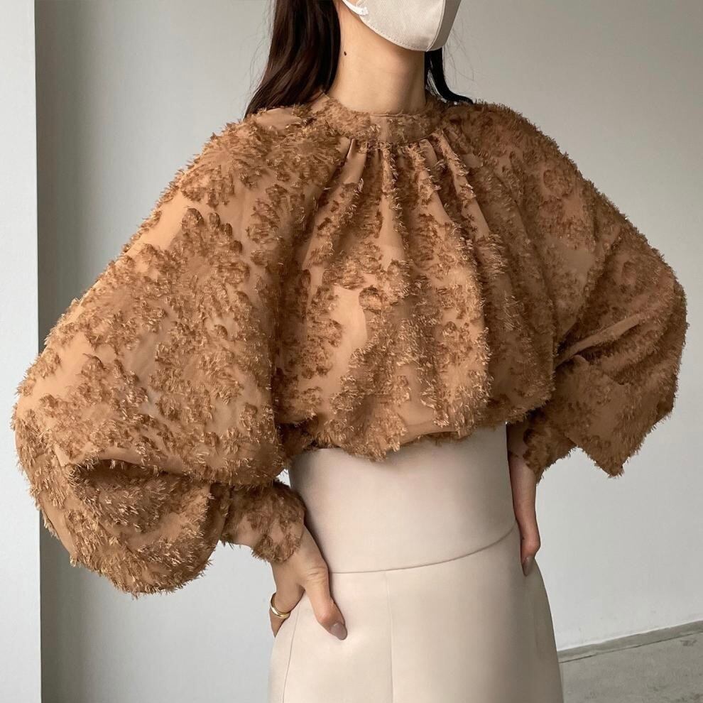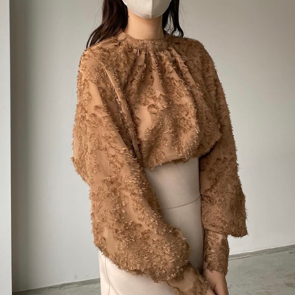 【tops】ラウンドネック韓国系ブラウストップス3色 HX12266