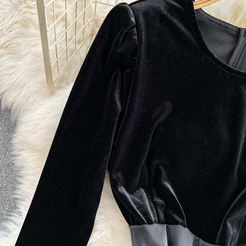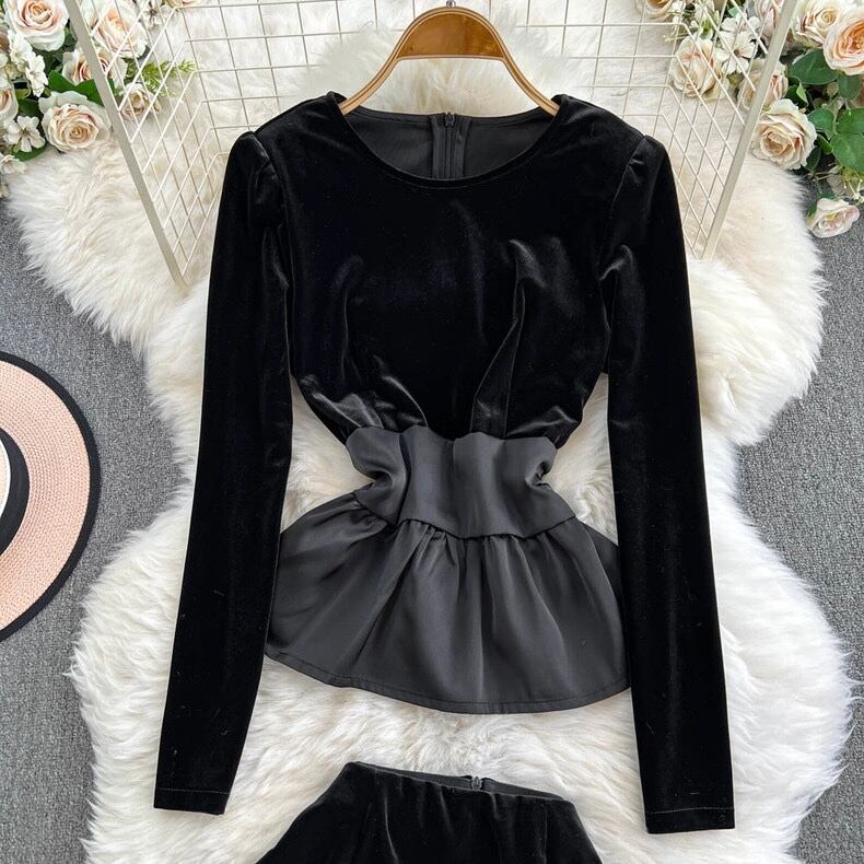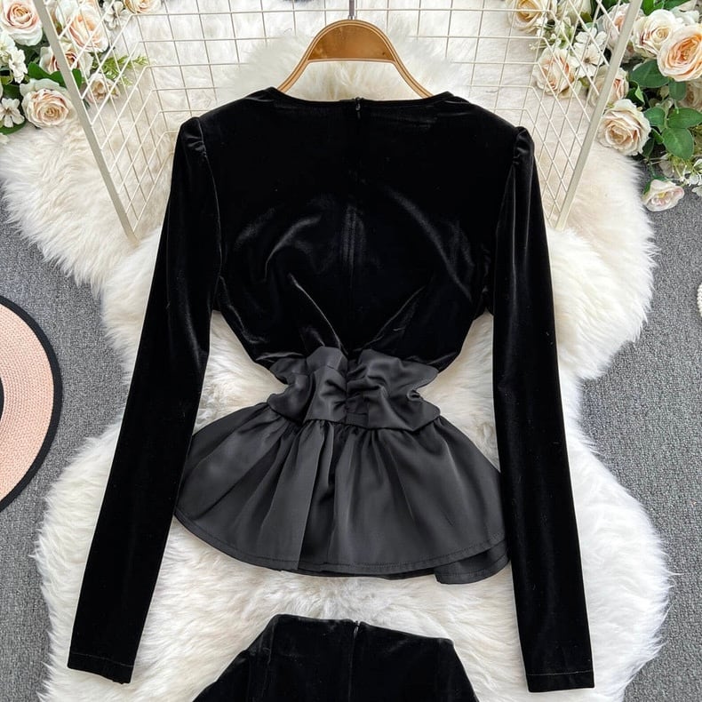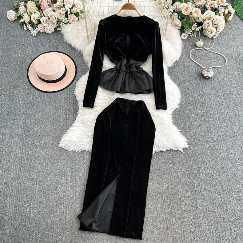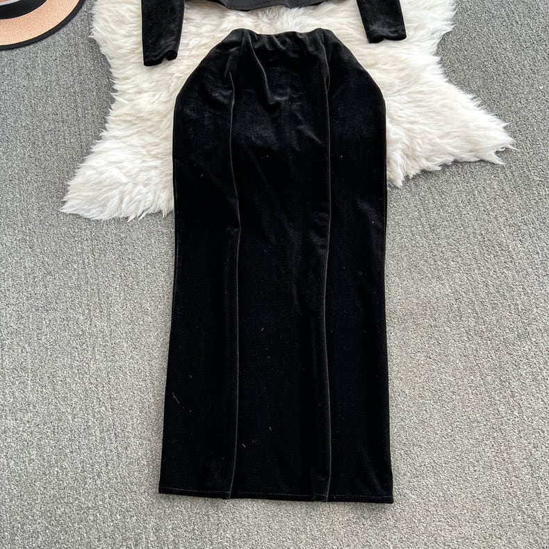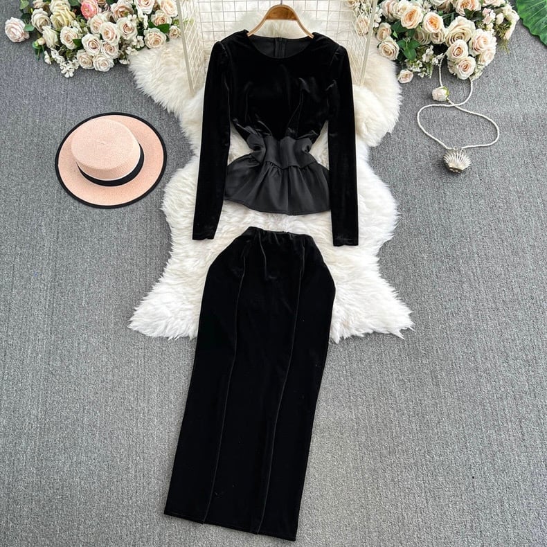【set】S〜2XLベルベットトップスxスカート SY12262