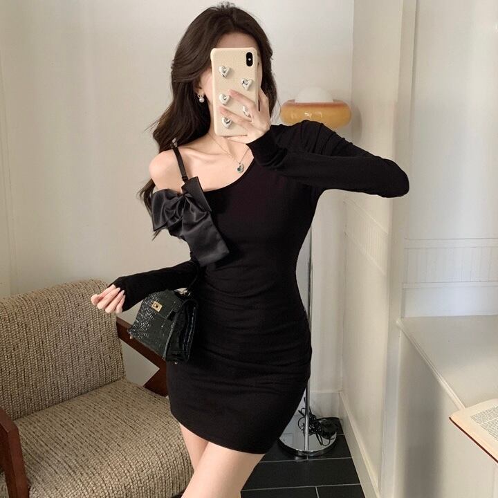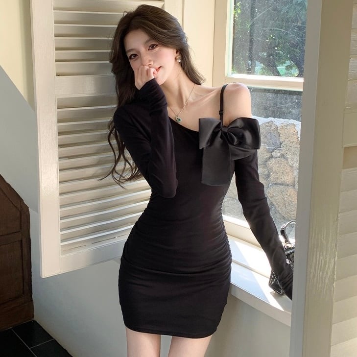 【dress】ショルダーリボンミニワンピース OR0004