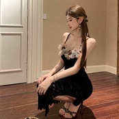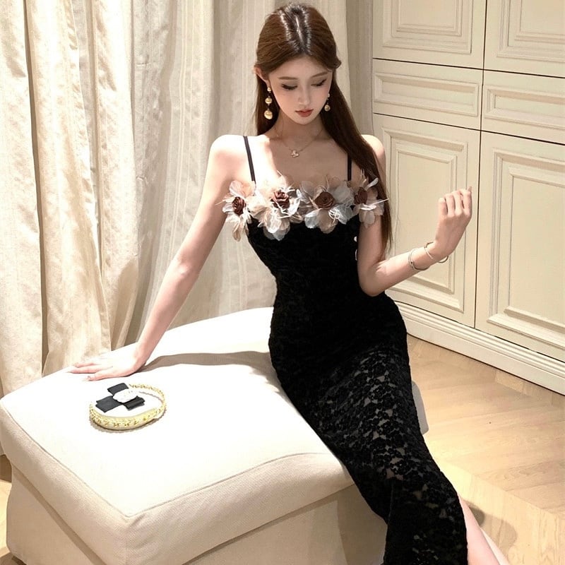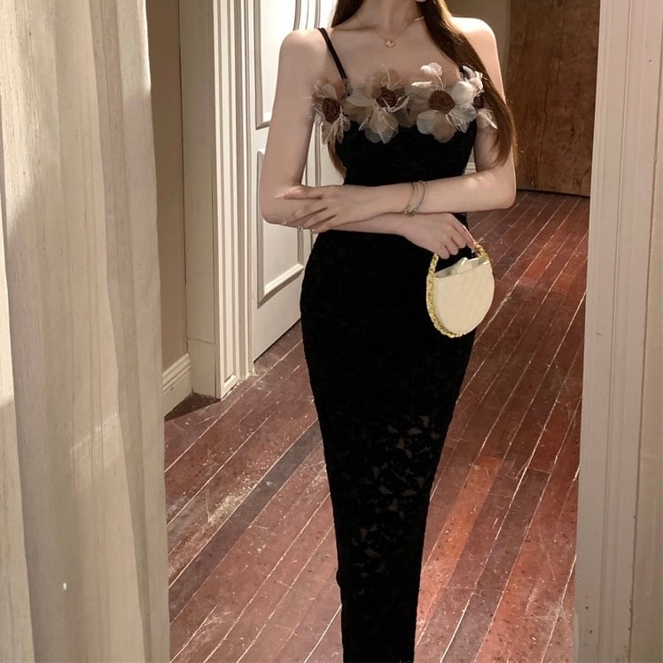 【dress】スリット入りフラワーキャミワンピース OR0006