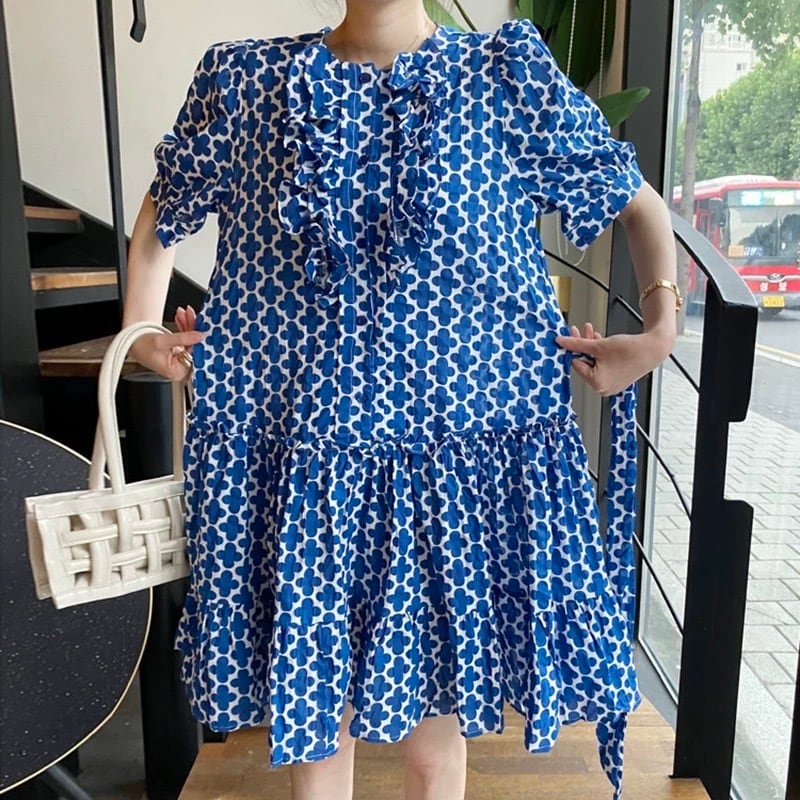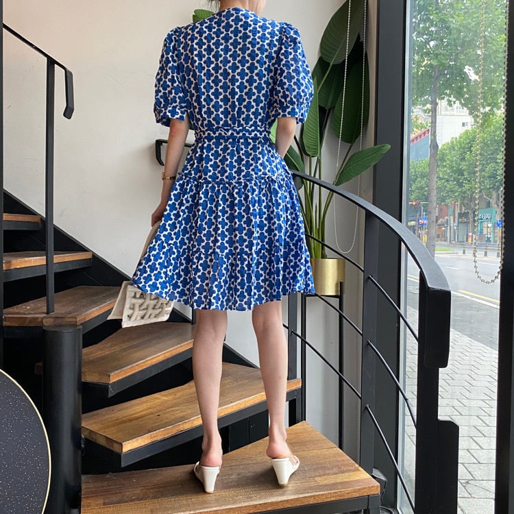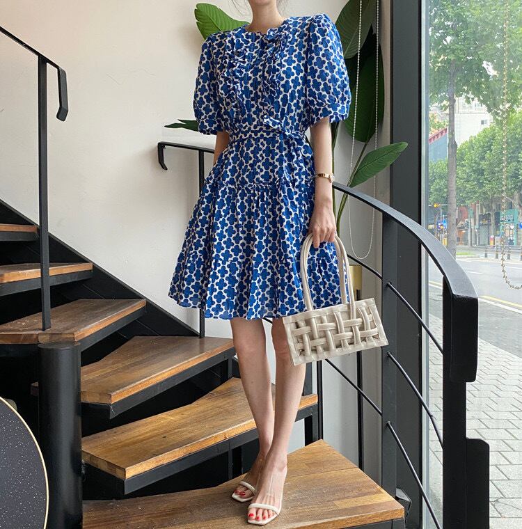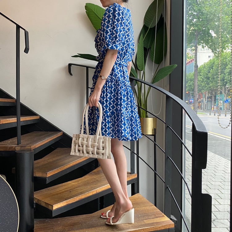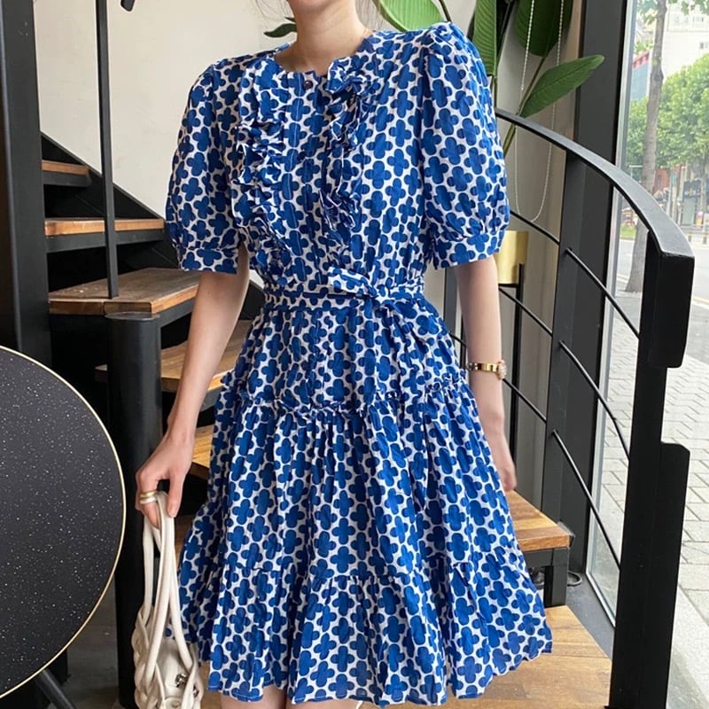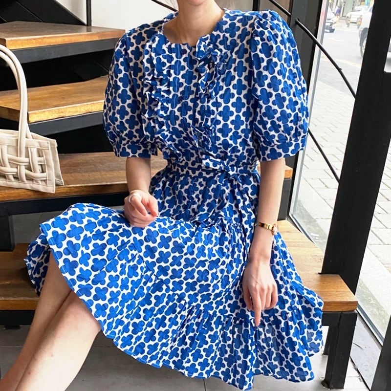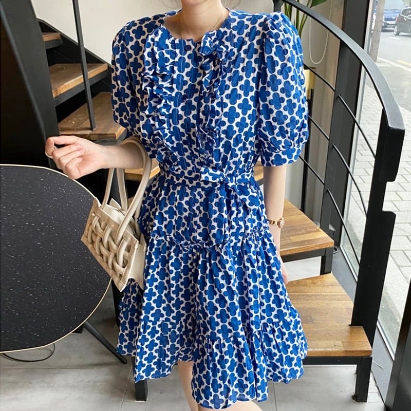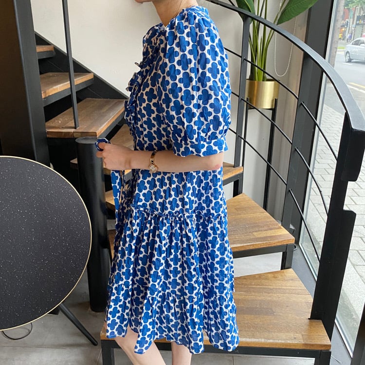 【dress】リボンベルト付きフラワープリントワンピース OR0012