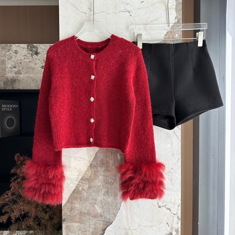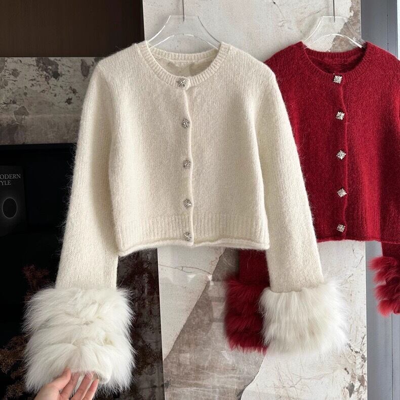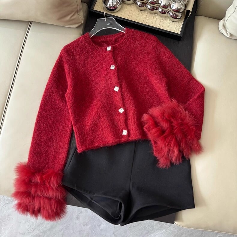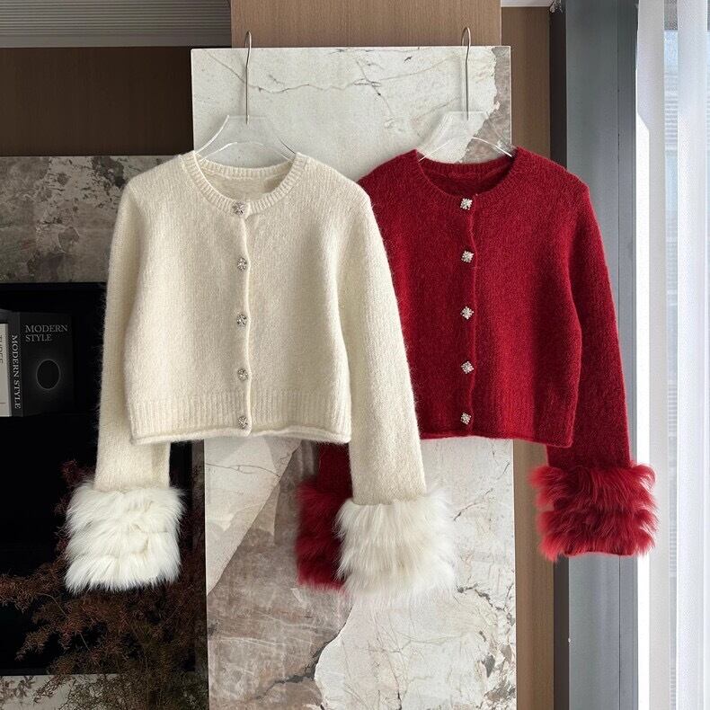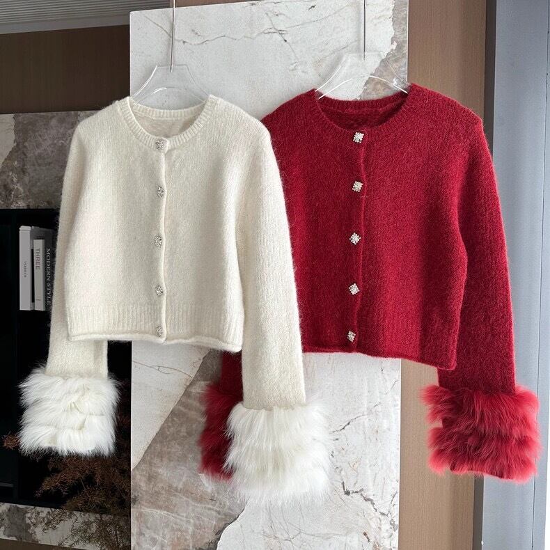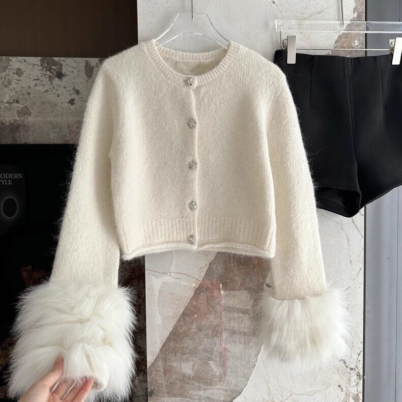 【outer】袖ファーニットカーディガントップス2色 OR0033