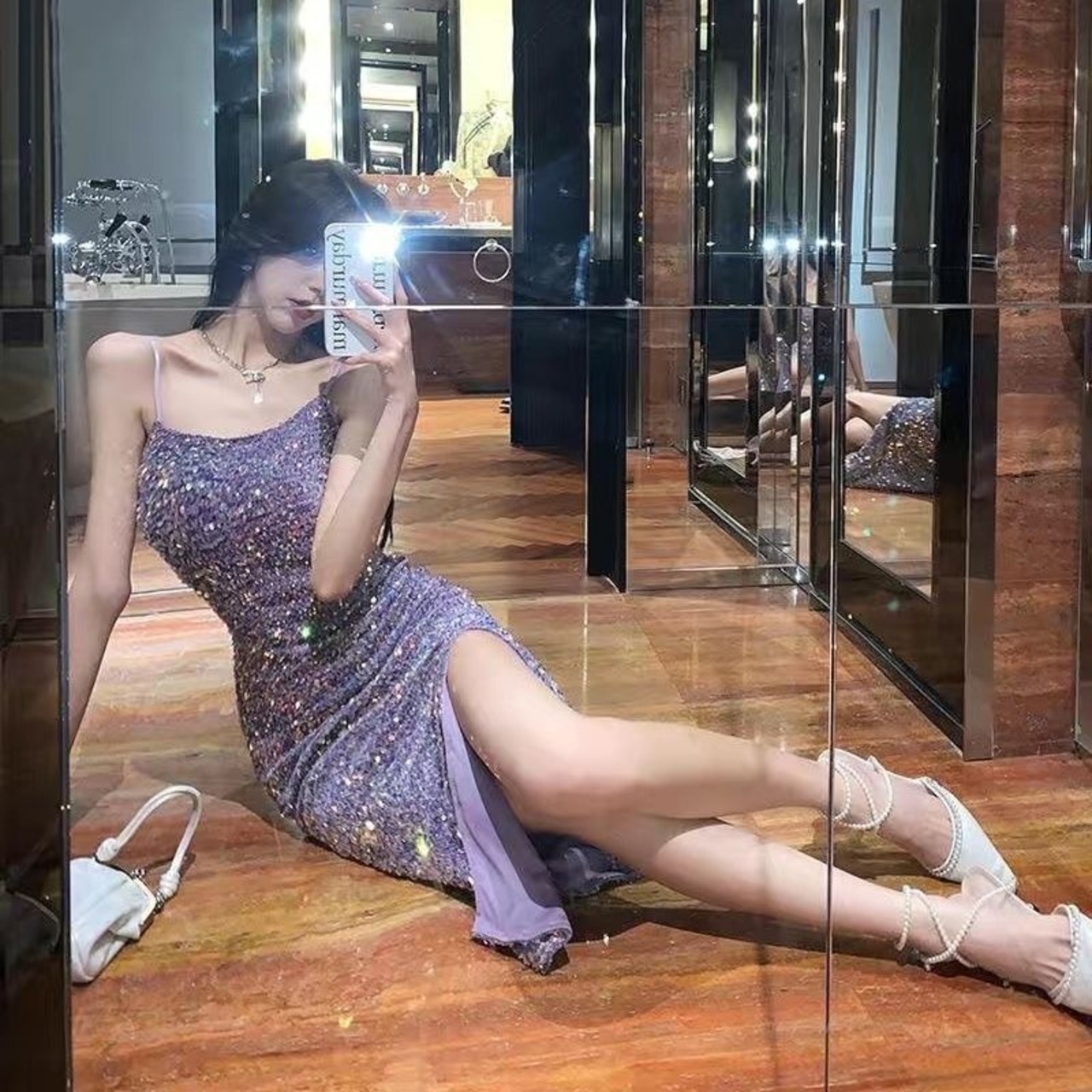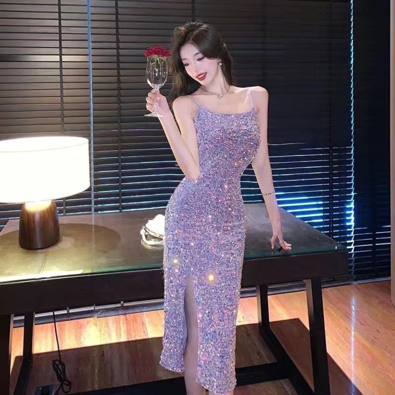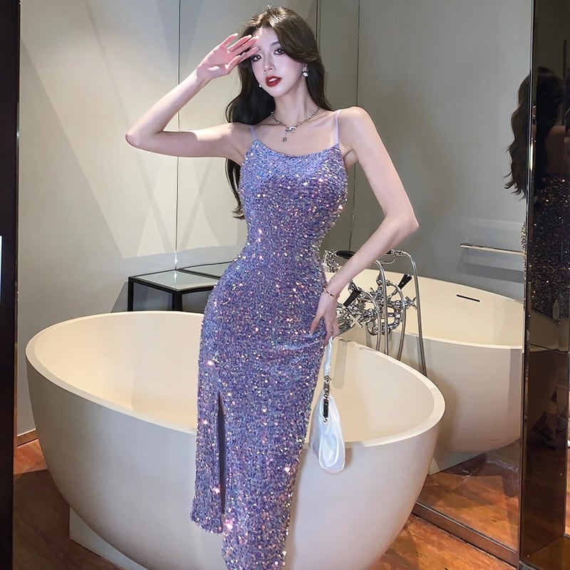 【dress】スリット入りキラキラキャミワンピースドレス OR0037